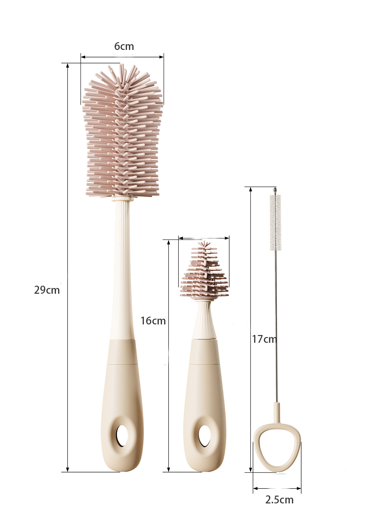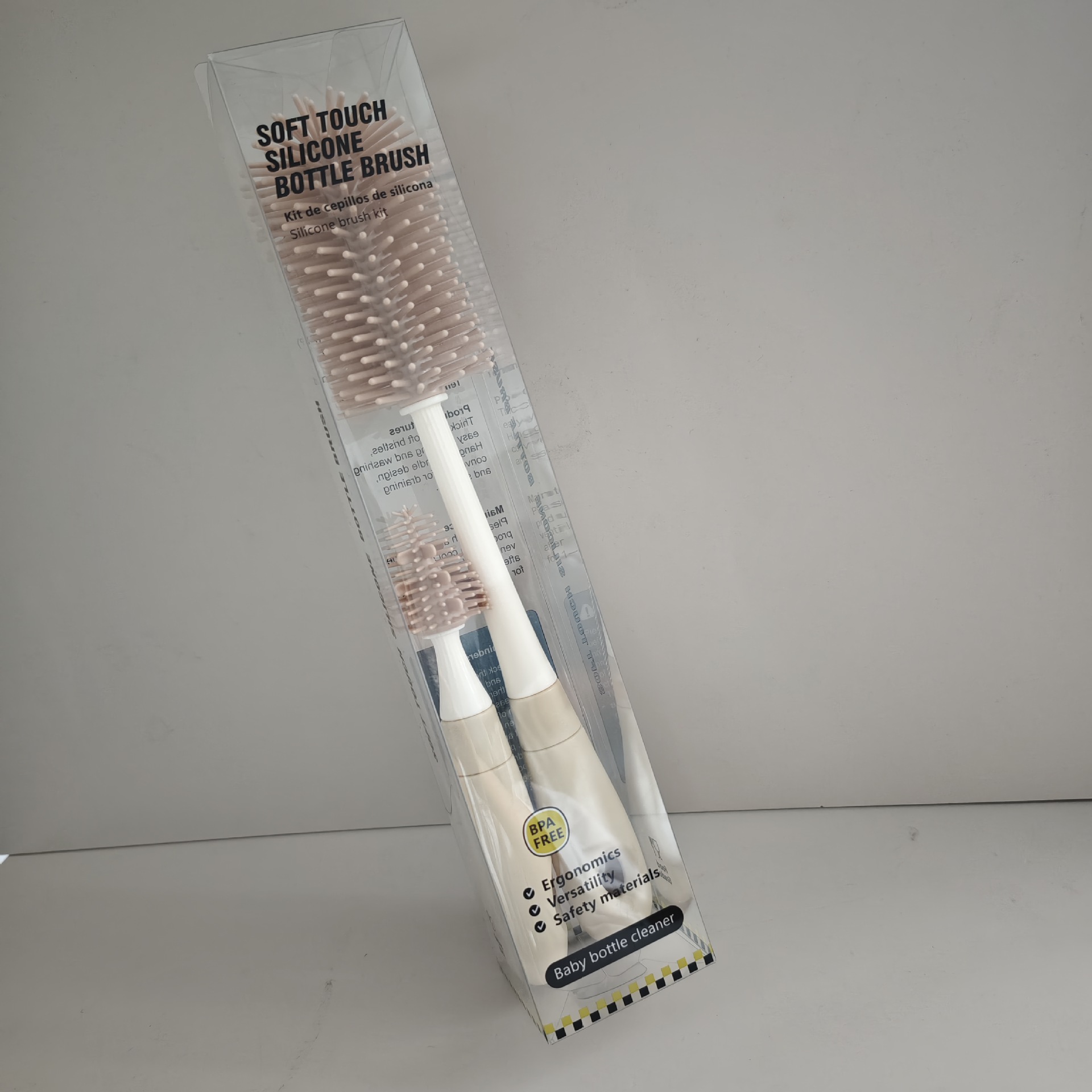Светло-коричневый цвет (кисть для бутылочек + кисть для соски + щетка для соломы); Голубой (щетка для бутылочек + щетка для соски + щетка для соломинки); Серый (щетка для бутылочек + щетка для соски + щетка для соломы); Розовый (щетка для бутылок + щетка для соски + соломенная щетка)