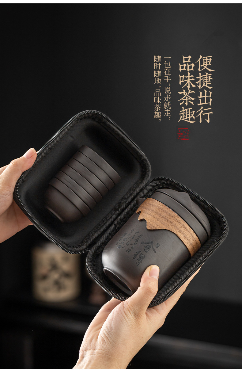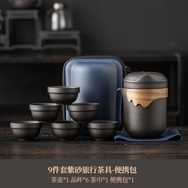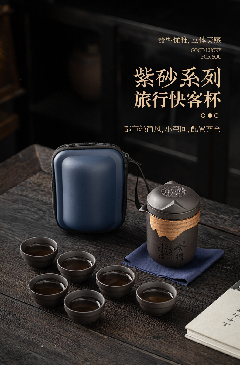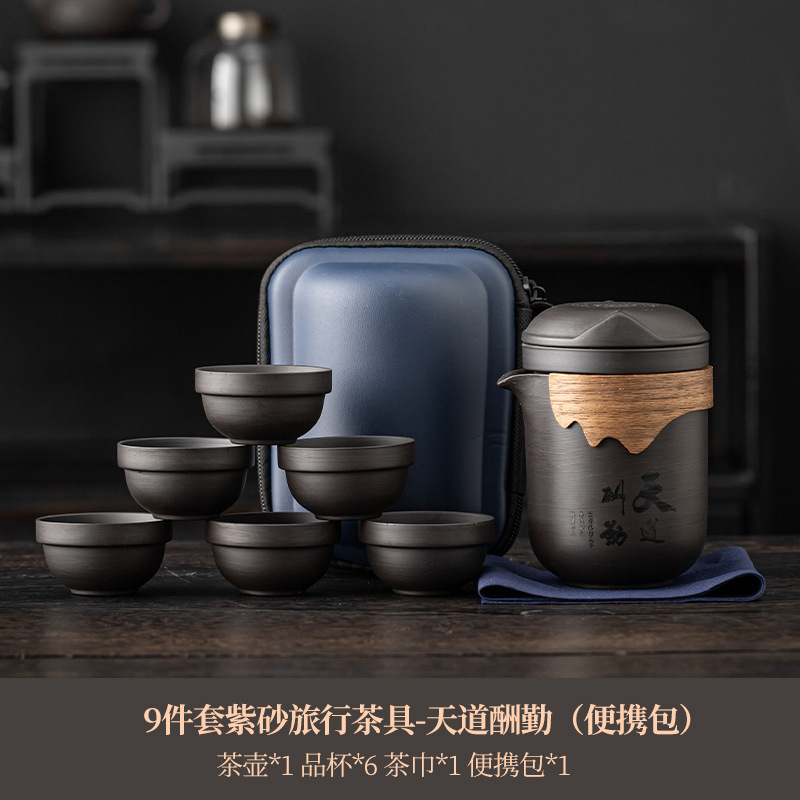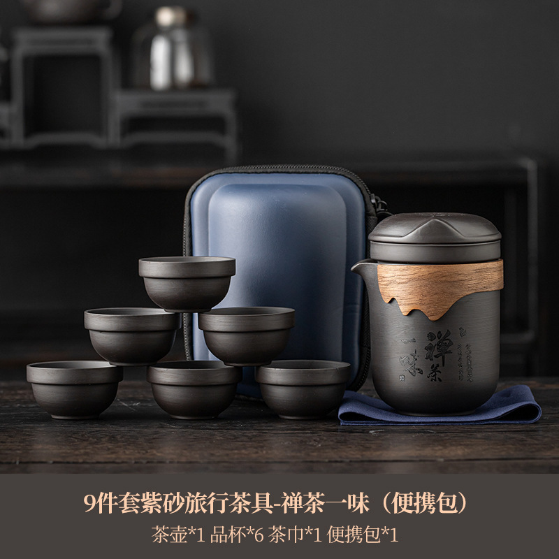 Однотонный фиолетовый песочный дорожный чайный сервиз; Дорожный чайный сервиз из фиолетового песка со вкусом дзен; готовый фиолетовый песочный дорожный чайный сервиз; Tiandao Молодежный фиолетовый песочный дорожный чайный сервиз; Фиолетовый песок, один горшок, четыре чашки, дорожный чайный сервиз