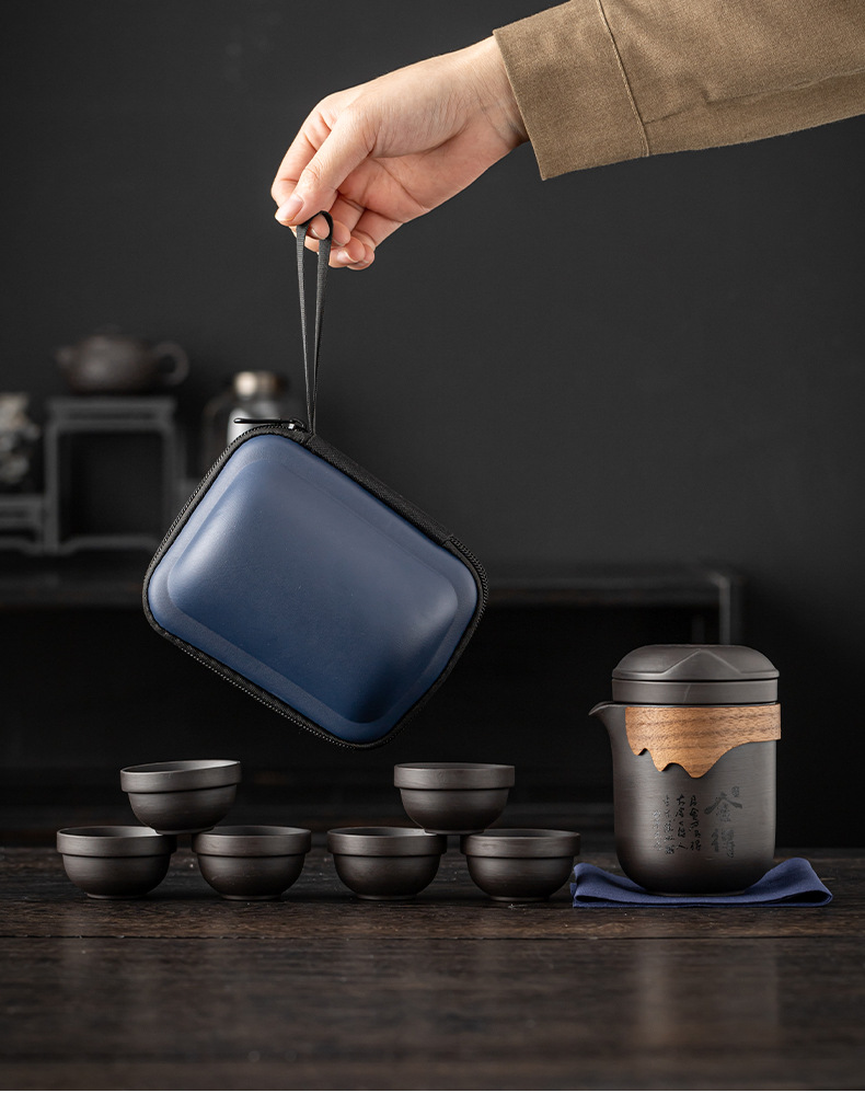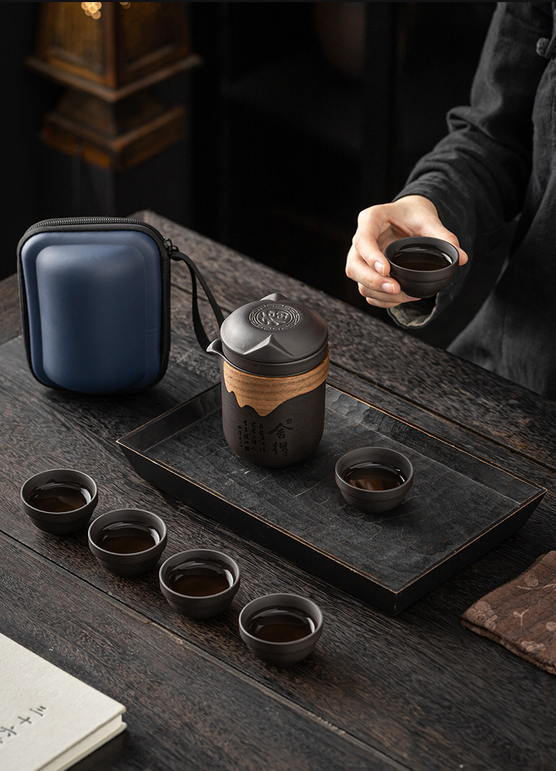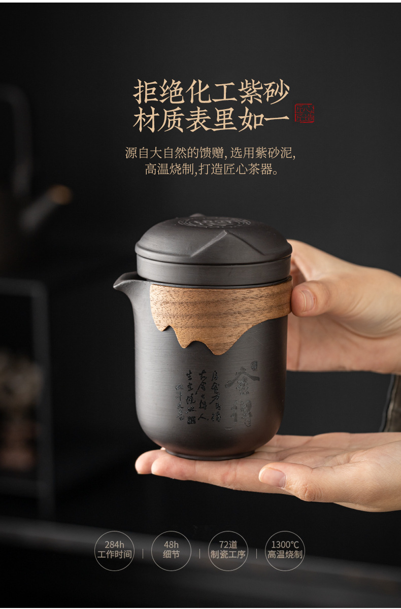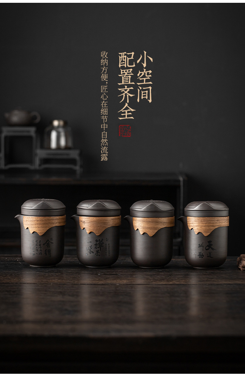 Однотонный фиолетовый песочный дорожный чайный сервиз; Дорожный чайный сервиз из фиолетового песка со вкусом дзен; готовый фиолетовый песочный дорожный чайный сервиз; Tiandao Молодежный фиолетовый песочный дорожный чайный сервиз; Фиолетовый песок, один горшок, четыре чашки, дорожный чайный сервиз