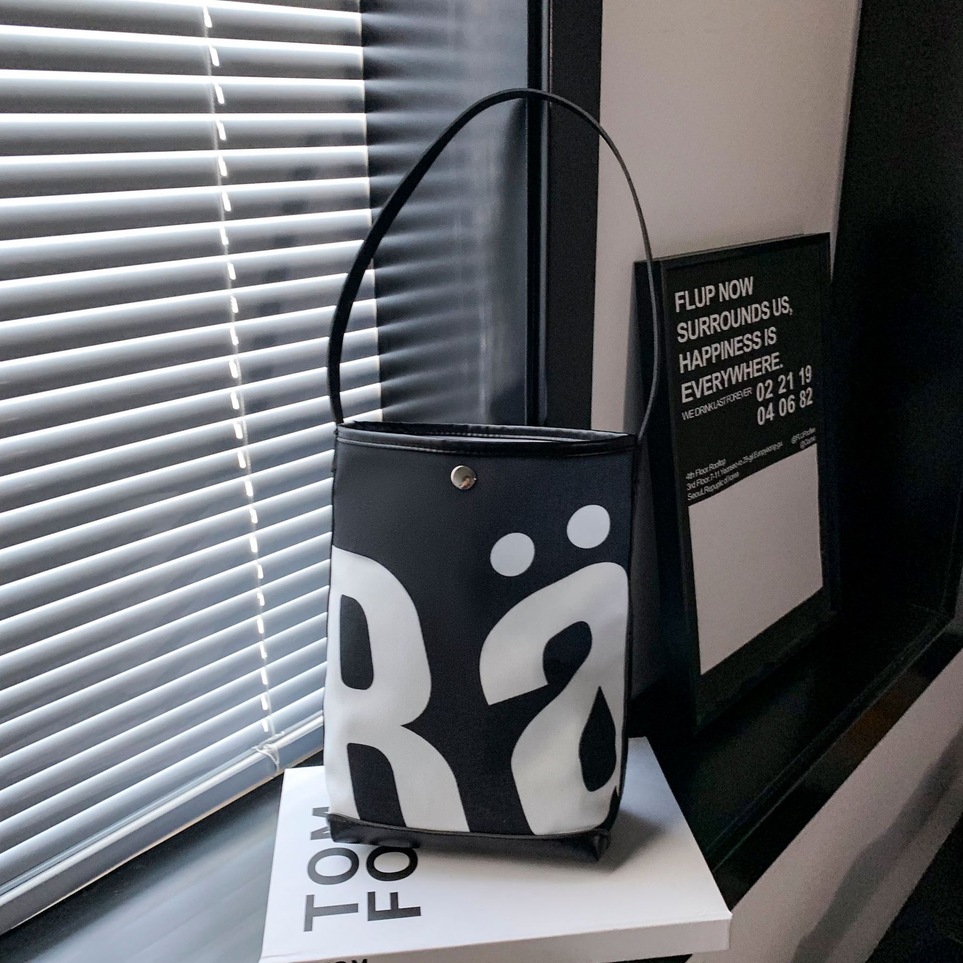 Новая тайская нишевая сумка-ведро 2025 года для женщин, модная вместительная сумка через плечо с буквенным принтом, сумка-багет для ношения под мышкой
