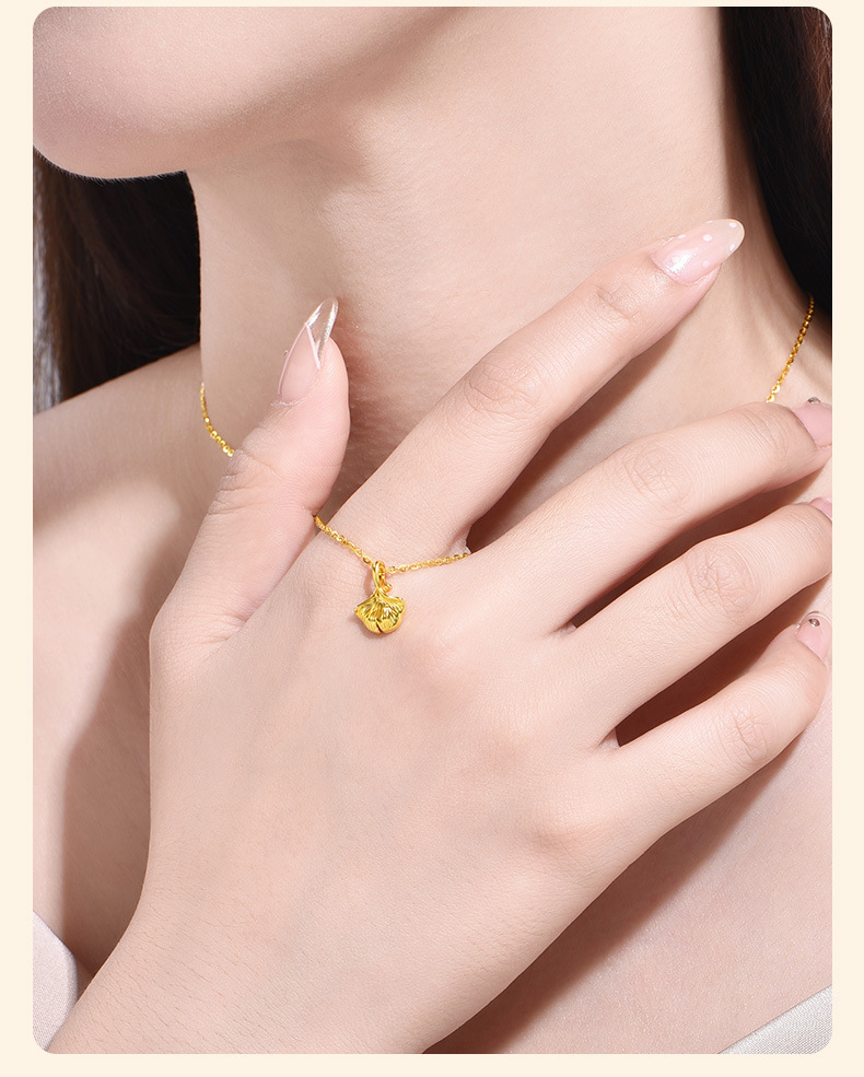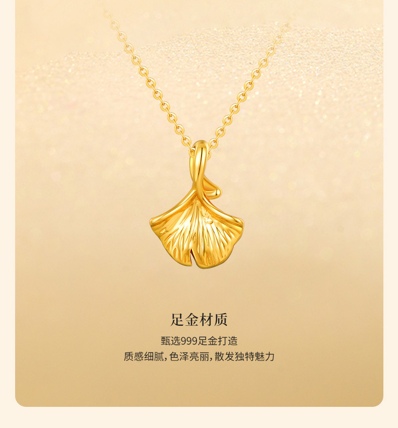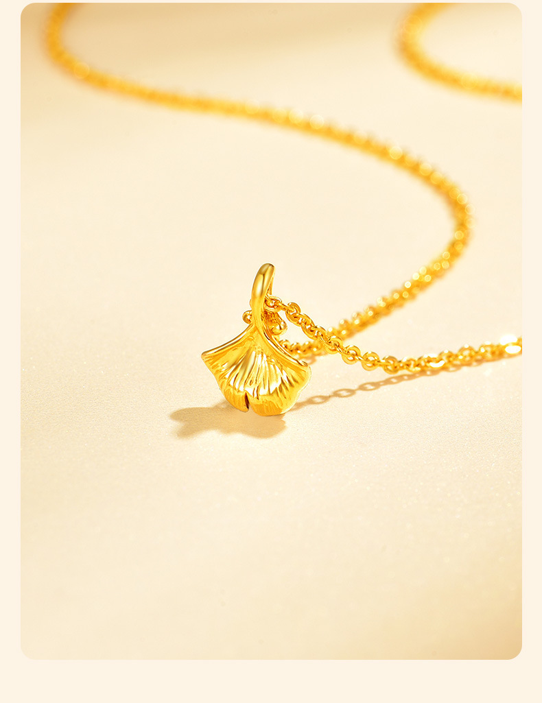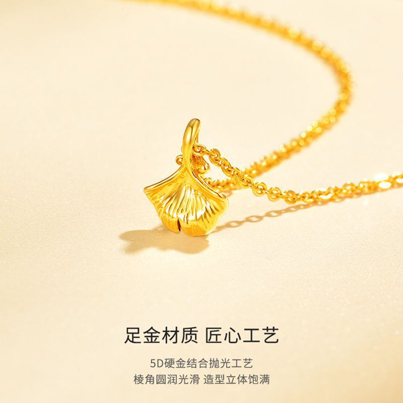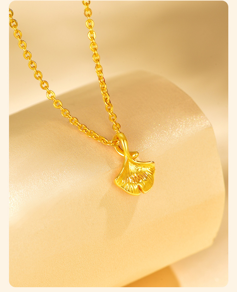 Оптовая продажа золотого кулона из чистого золота 999 пробы, «Три жизни с абрикосом», ювелирные изделия из 3D твердого золота, женское ожерелье на ключице с листьями гинкго.