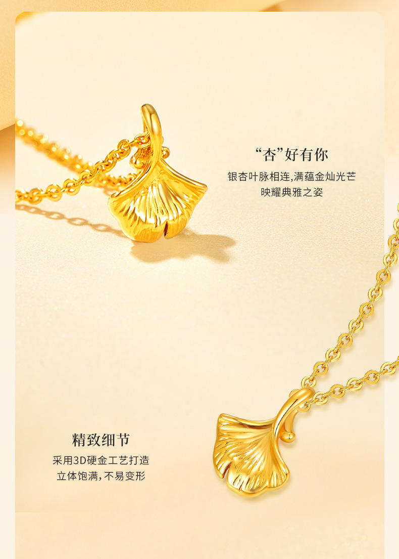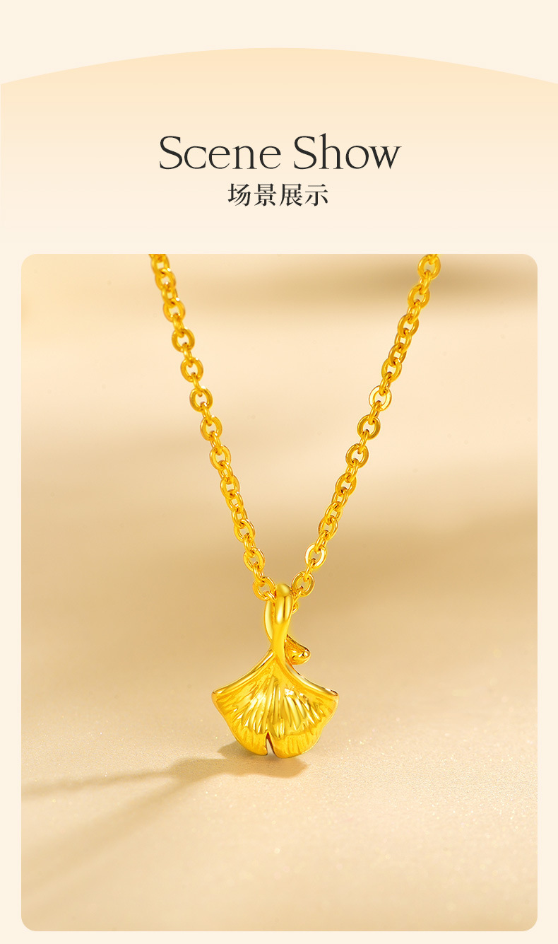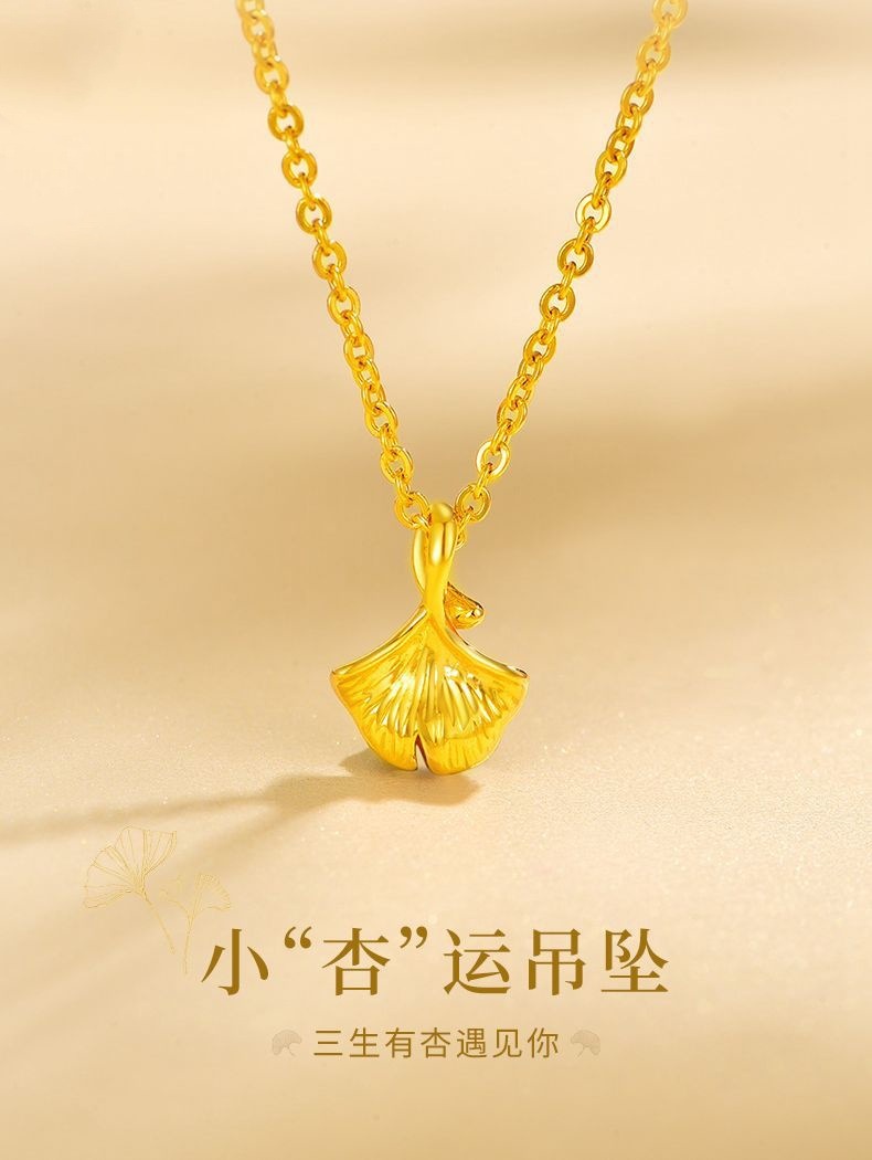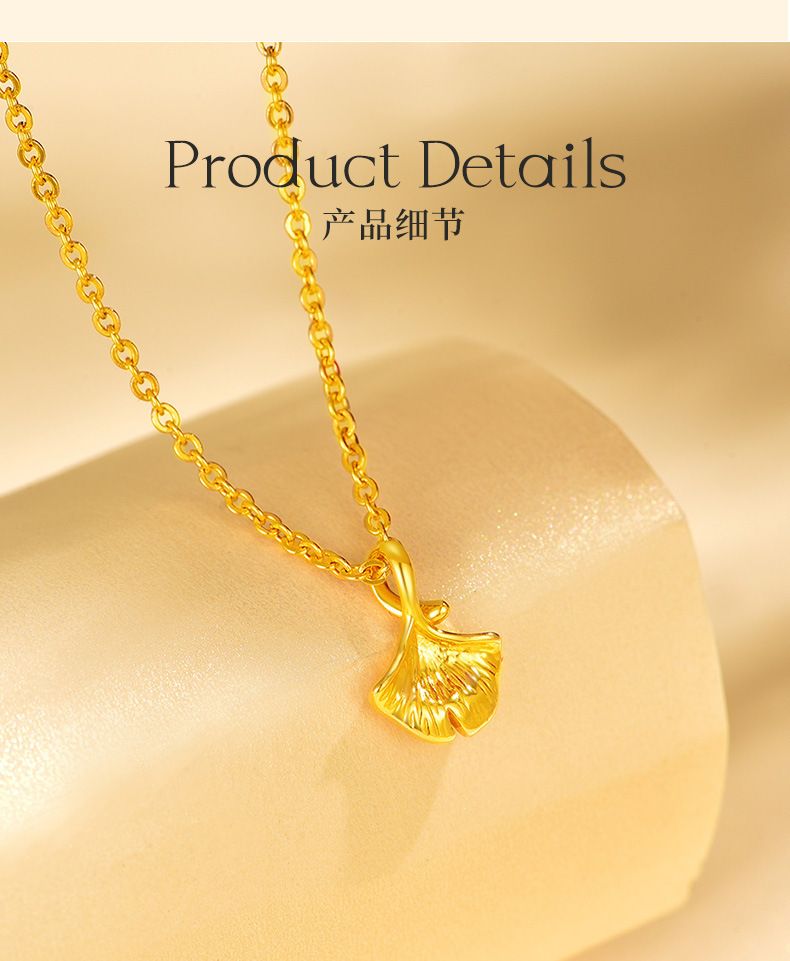 Оптовая продажа золотого кулона из чистого золота 999 пробы, «Три жизни с абрикосом», ювелирные изделия из 3D твердого золота, женское ожерелье на ключице с листьями гинкго.