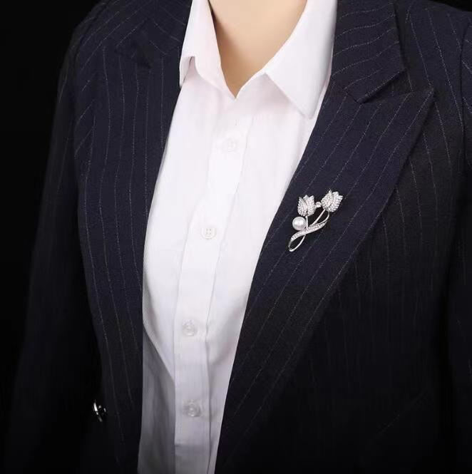 Двуглавый тюльпан брошь с цветочным вырезом корсая осеннее зимнее пальто куртка булавка костюм 2024 новый прилив