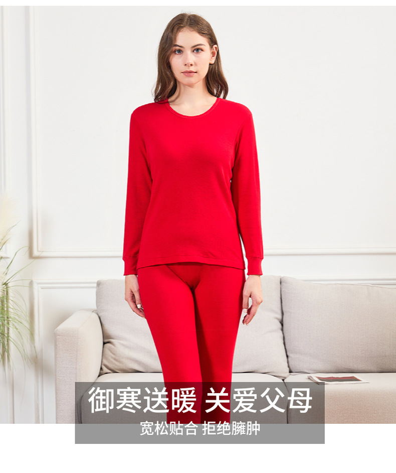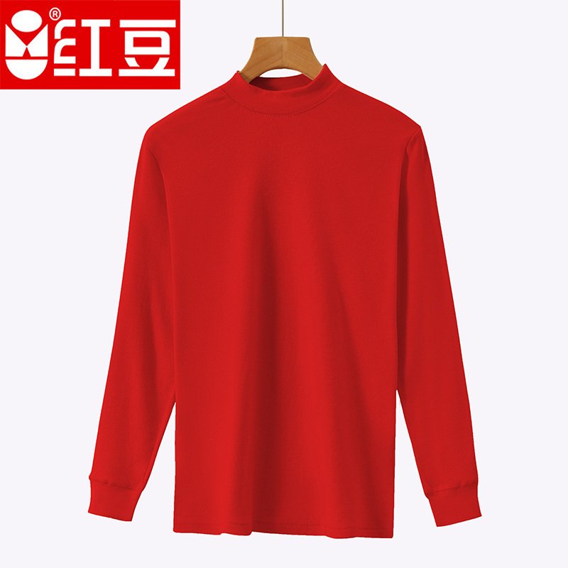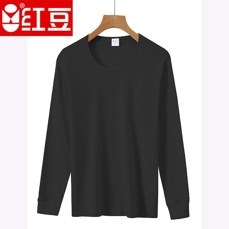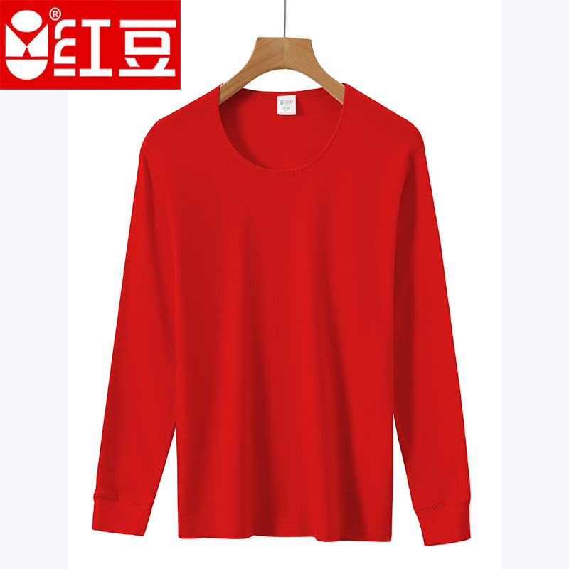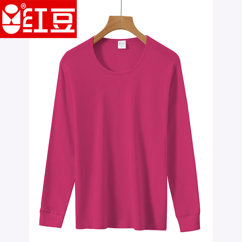 Хлопковое нижнее белье Red Bean, осенний топ из чистого хлопка, цельный свитер больших размеров для мамы, полностью хлопковый трикотаж, круглый вырез, длинный рукав, тонкий фасон.