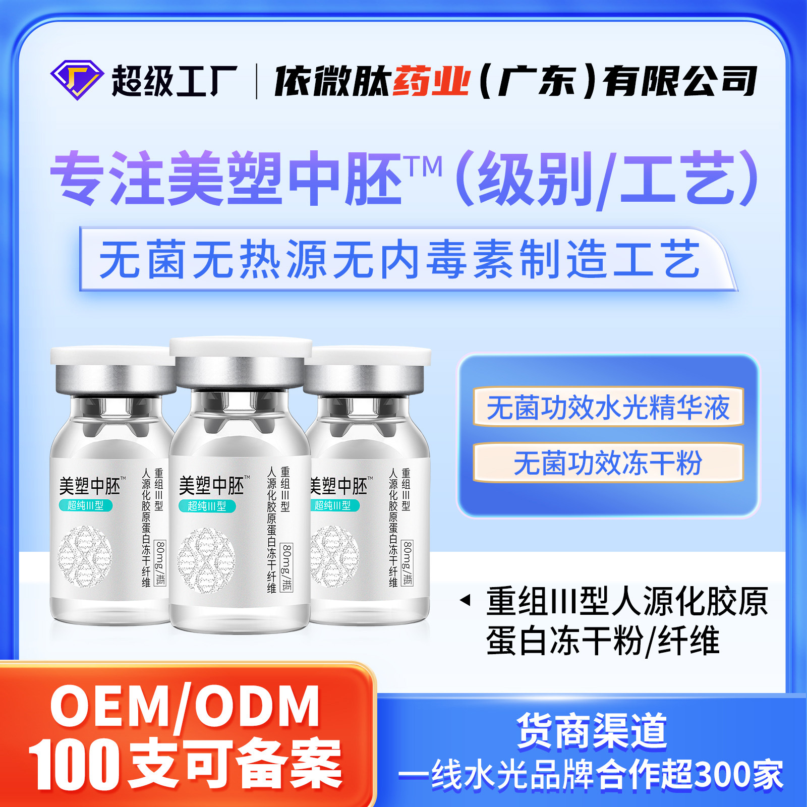 OEM-настраиваемые три типа коллагенового лиофилизированного наполнителя для лечения акне, подтягивания тонких линий, контурной пластики, глубокого проникновения оригинального раствора.