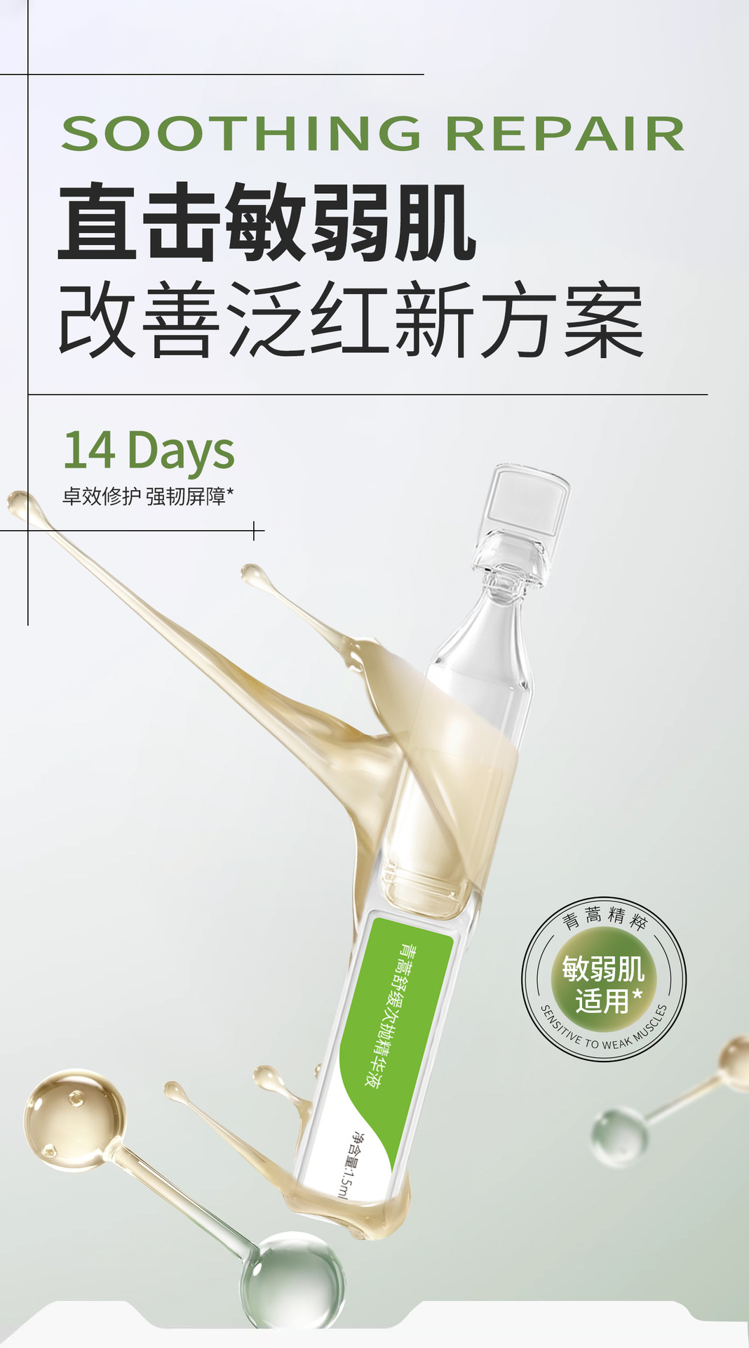 Успокаивающая эссенция второго импульса Artemisia annua OEM уменьшает покраснения, успокаивает, восстанавливает и увлажняет. Производство эссенции второго импульса на заказ.