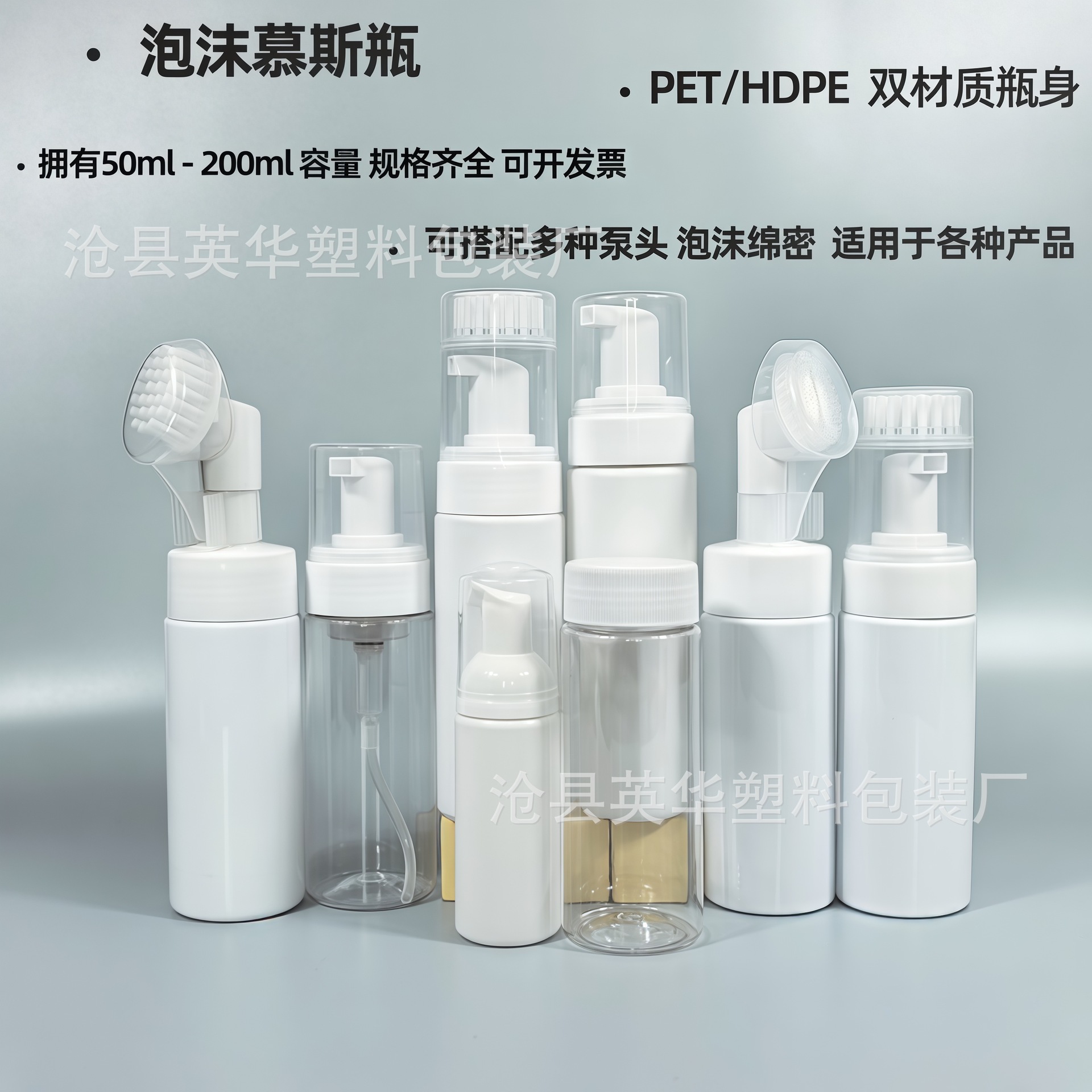 Флакон для пенного мусса 50/100 мл, силиконовая щетка, флакон для очищающего средства 150/200 мл, флакон для очищающего средства для лица