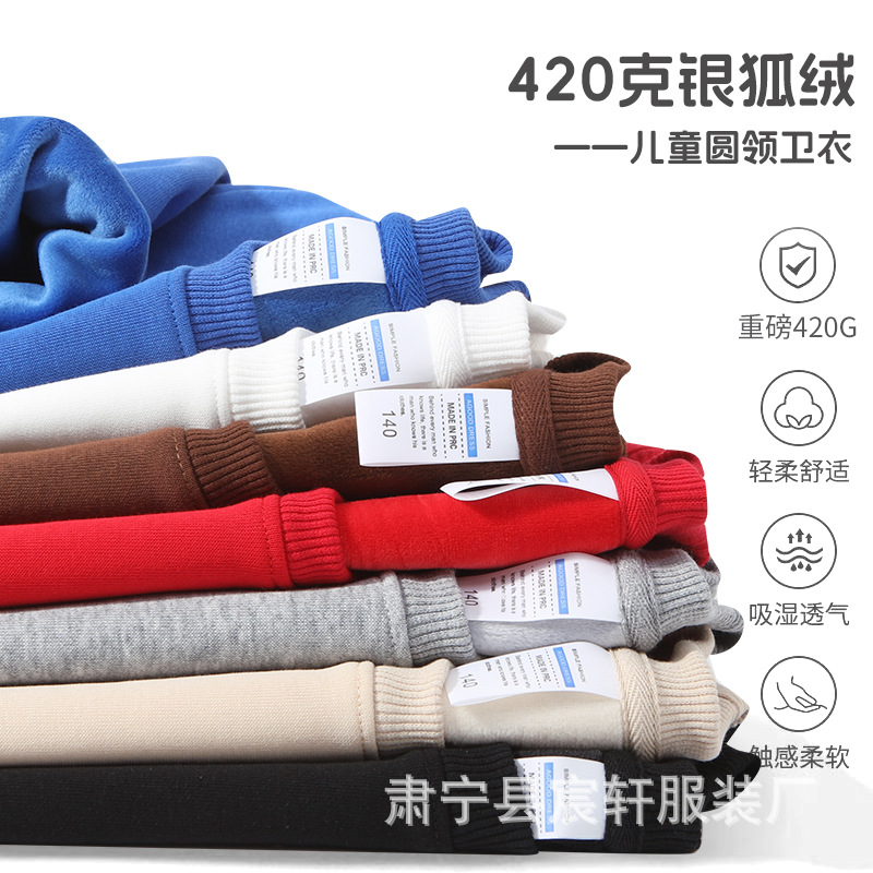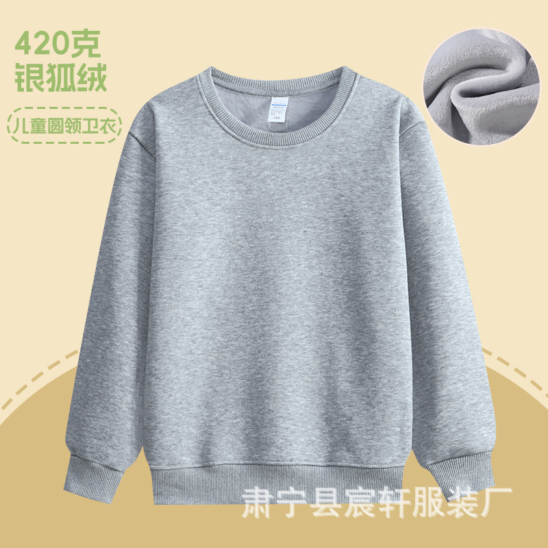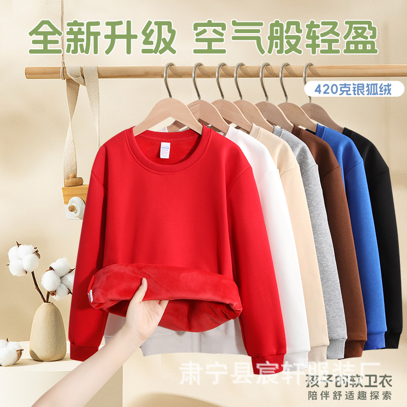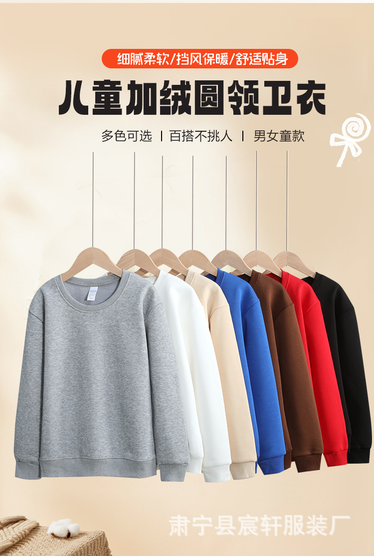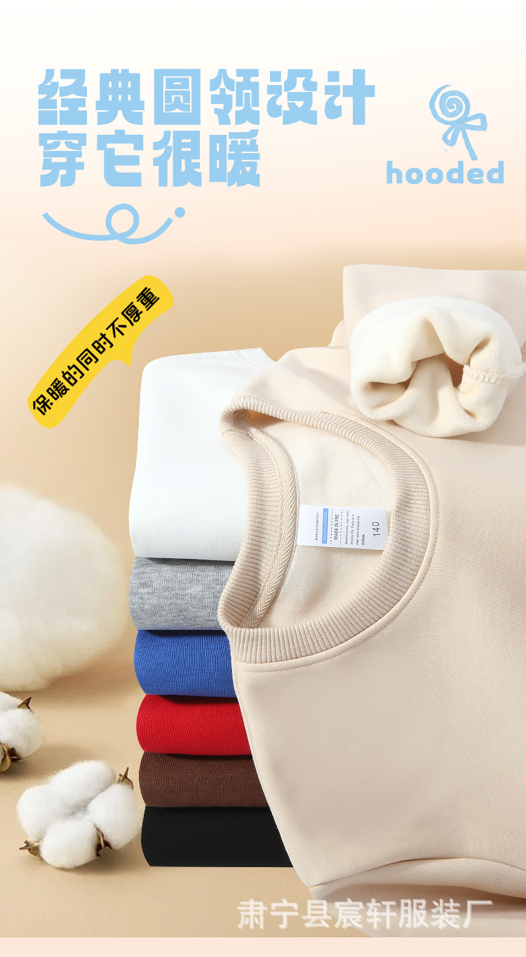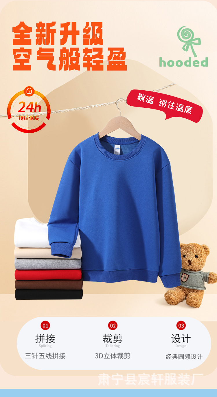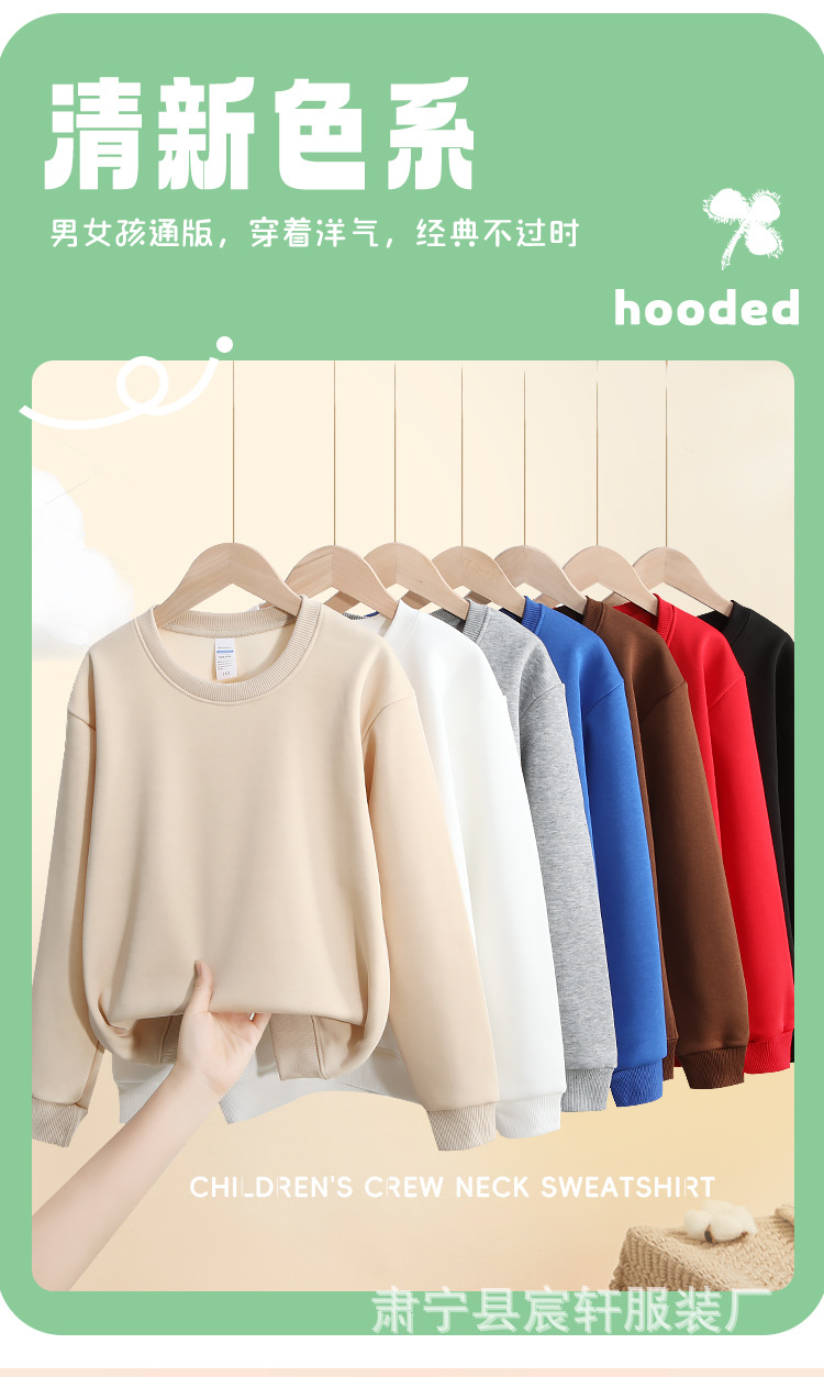 Осень и зима 2025 новый детский длинный рукав с хлопковым круглым воротником свитера плюс бархат детская одежда оптом сплошной цвет классной одежды с логотипом