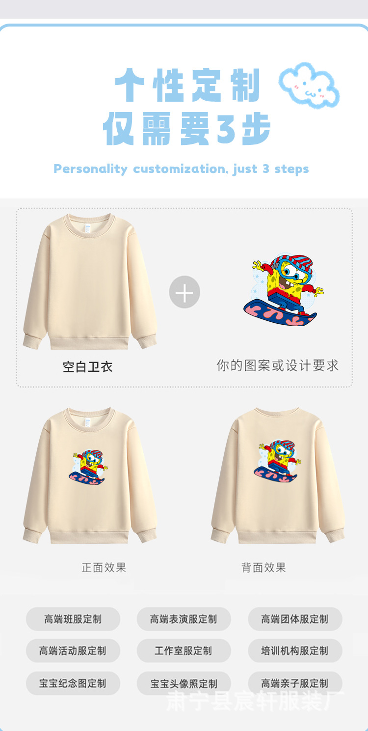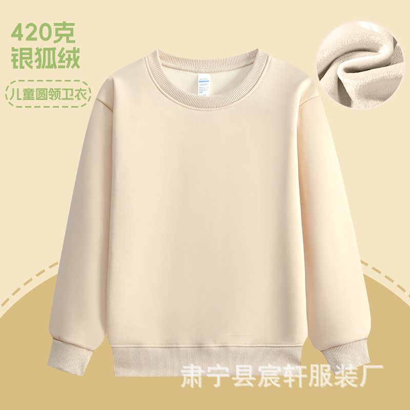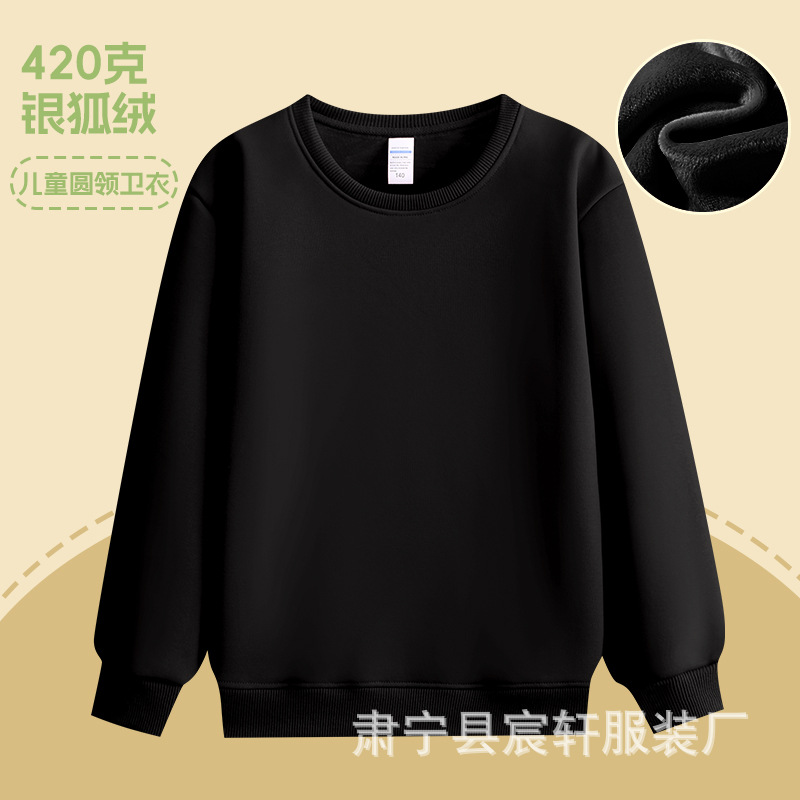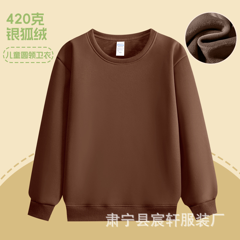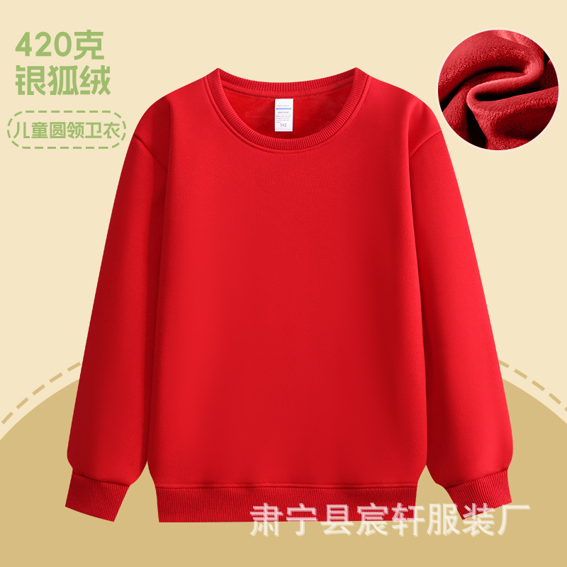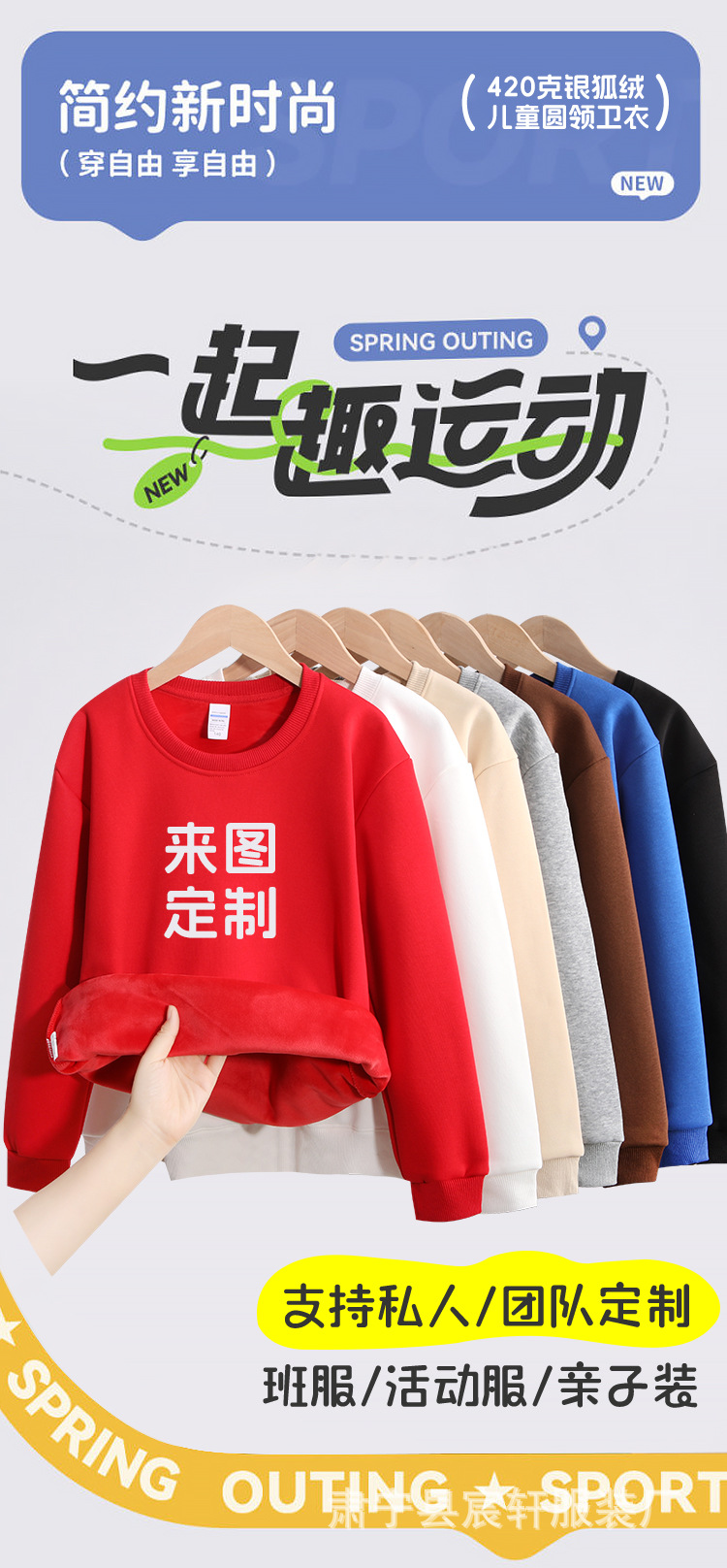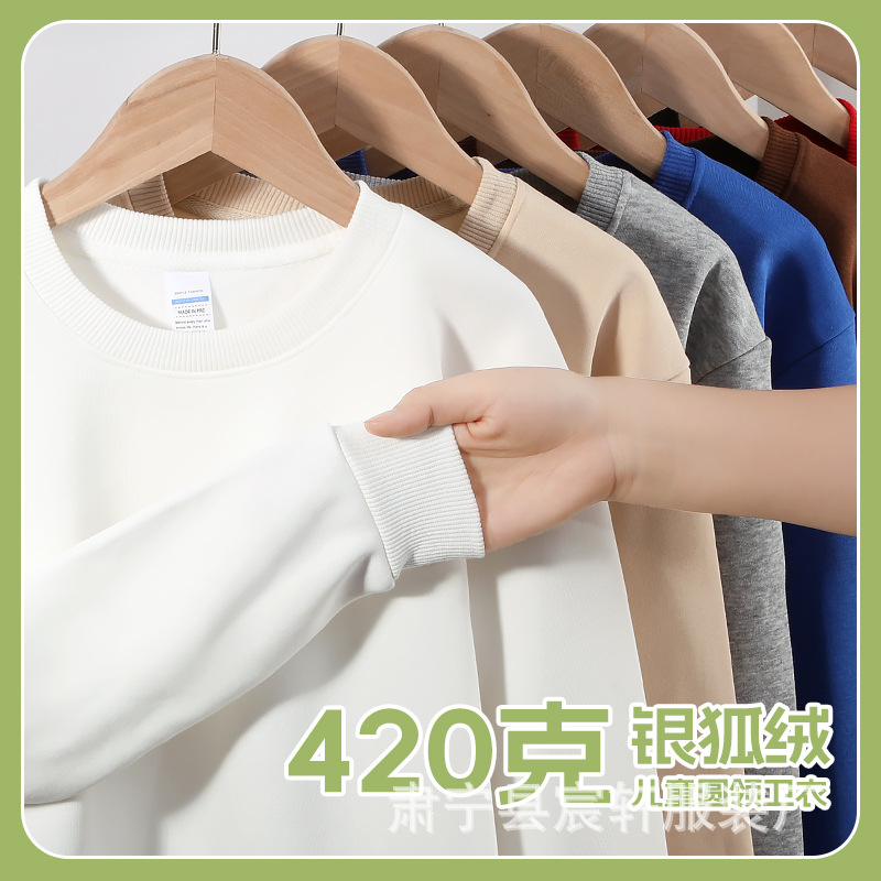 Осень и зима 2025 новый детский длинный рукав с хлопковым круглым воротником свитера плюс бархат детская одежда оптом сплошной цвет классной одежды с логотипом