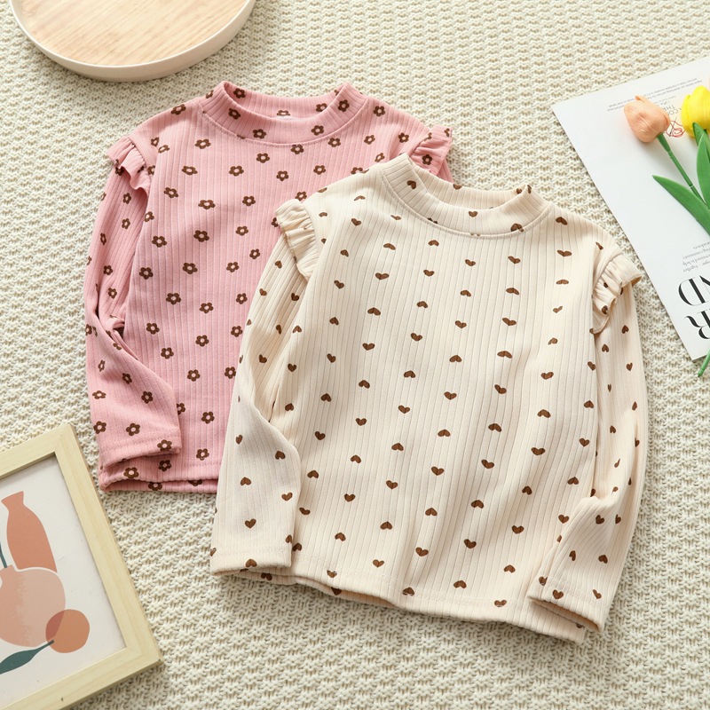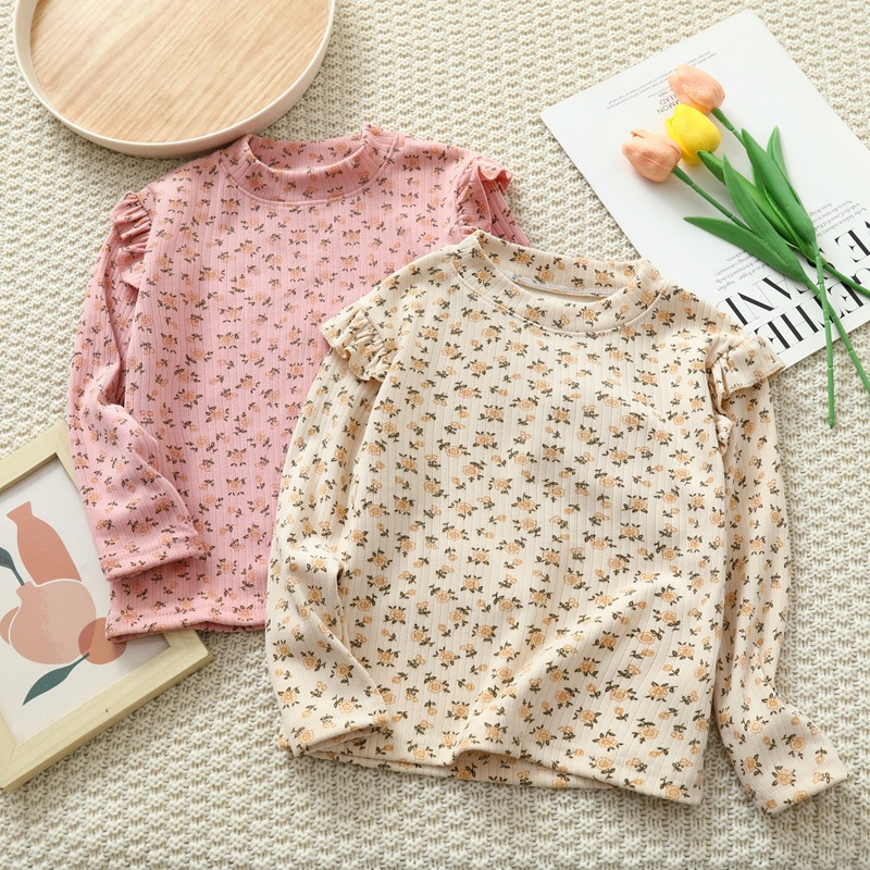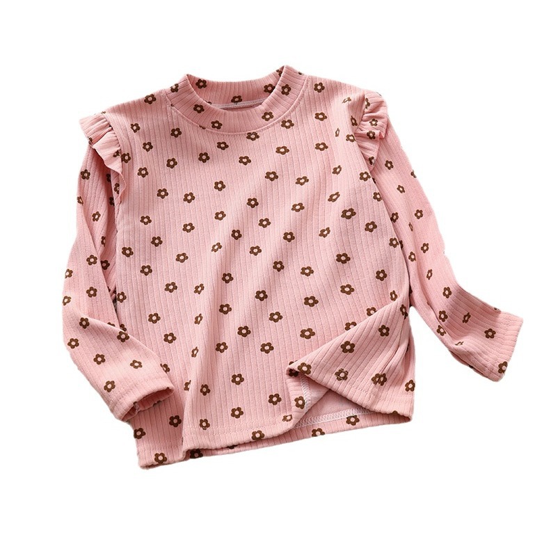 Девушка осень и зима новые цветочные летающие рукава рубашка с круглым вырезом футболка с длинными рукавами