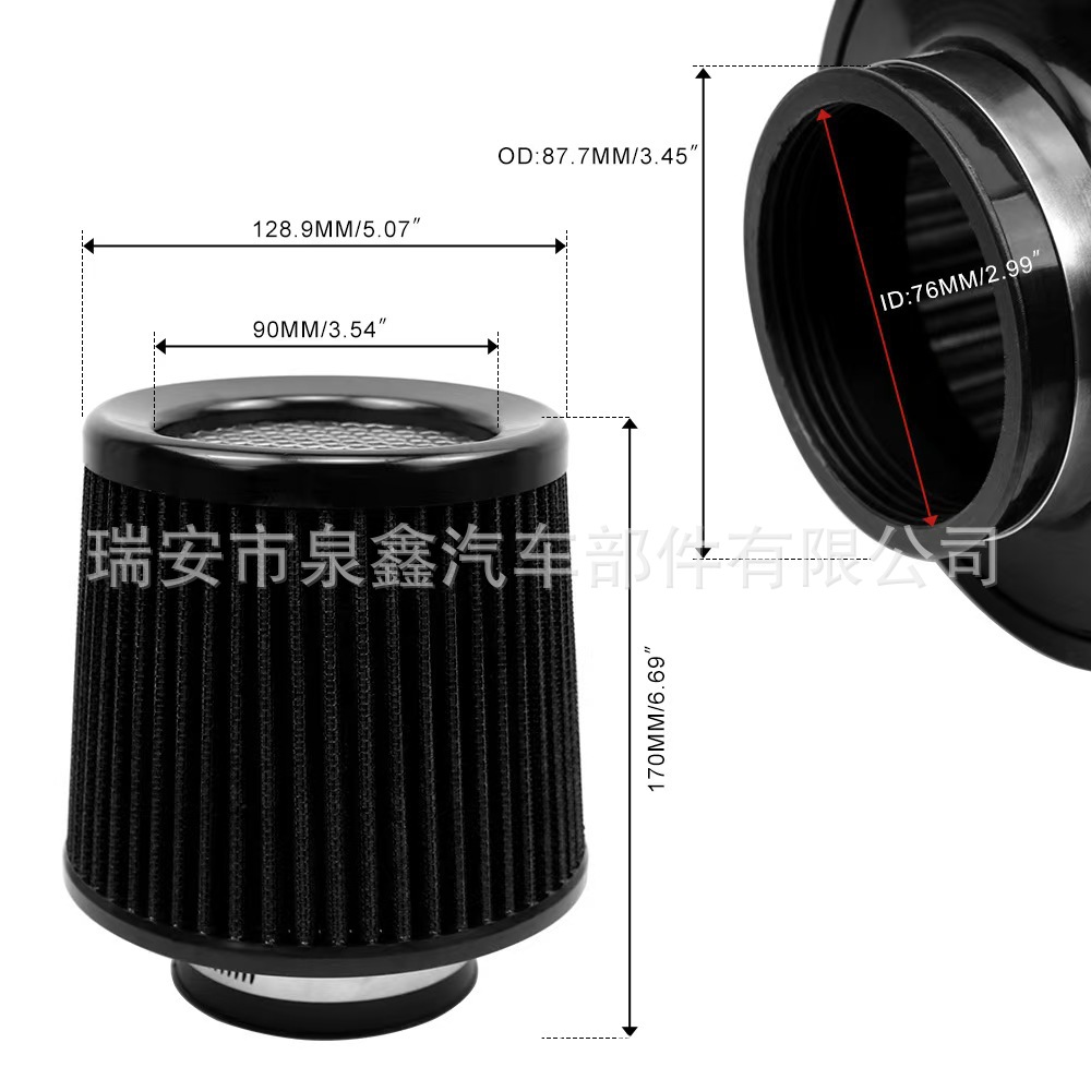 Заводская прямая поставка трансграничного автомобильного тюнинга воздушного фильтра, грибовидный воздушный фильтр 76 мм, высокопроизводительный впускной фильтр