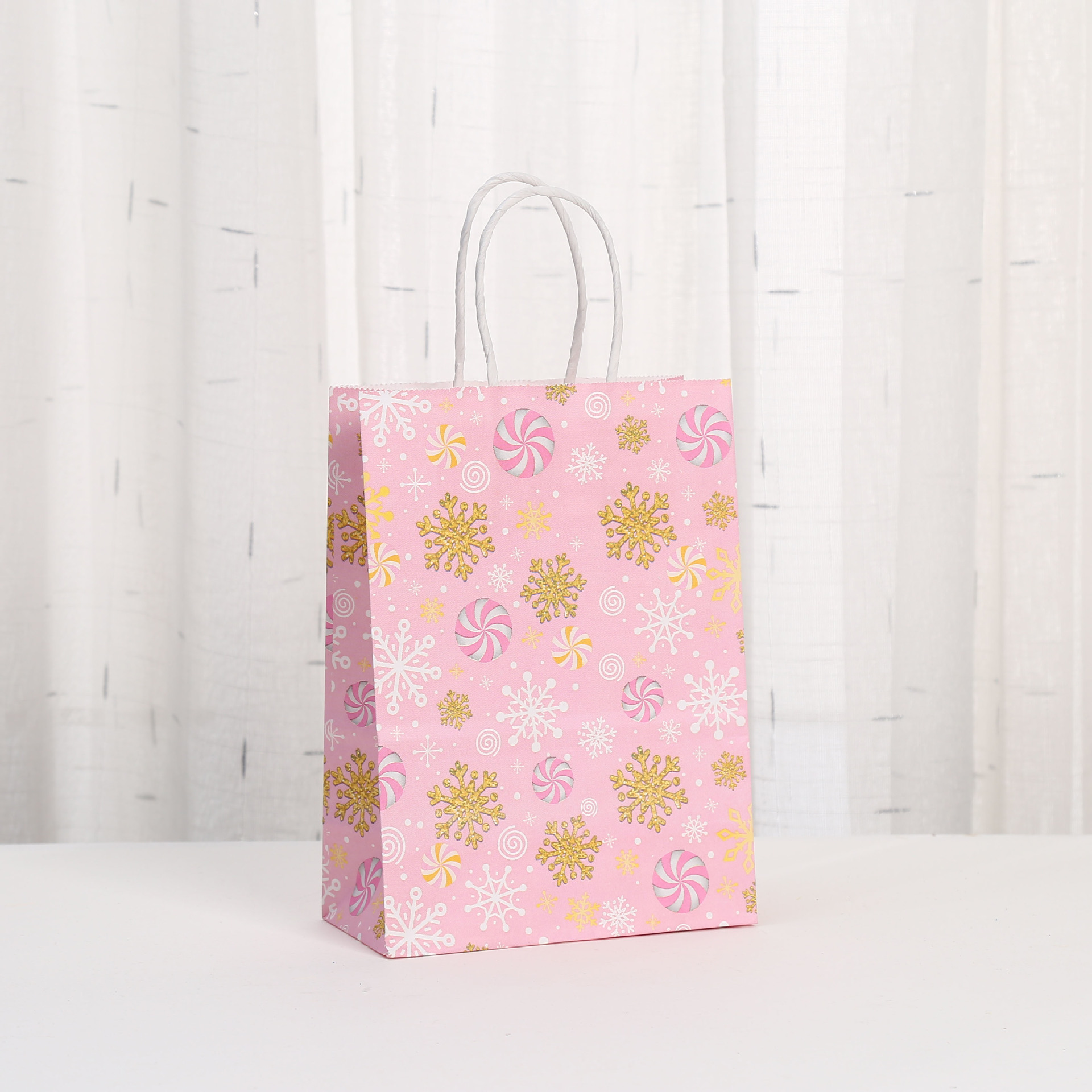 Рождественская большая сумка Розовая упаковочная сумка Сумка для покупок Сумка из крафт-бумаги Вечеринка Сумка для конфет Подарочная сумка Оптовая продажа Сумка на вынос