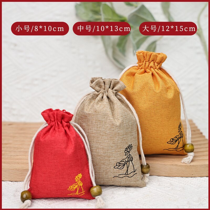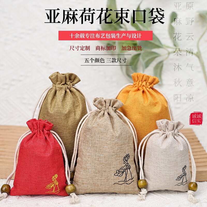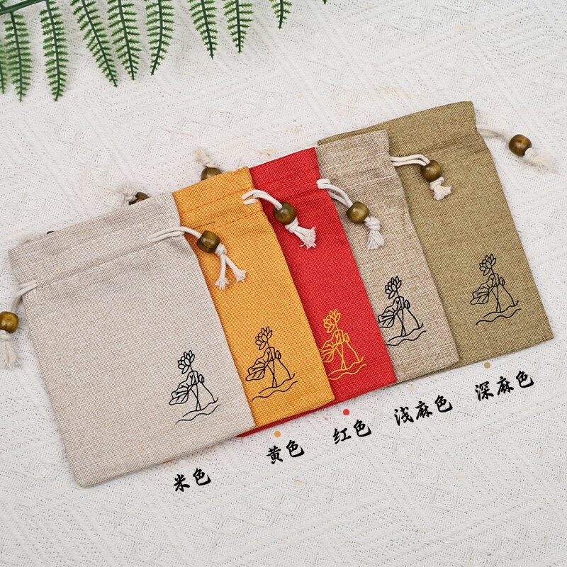 Новая льняная сумка с узором лотоса, саше, саше, лавандовая игрушка, упаковочная сумка, сумка для ювелирных изделий с бусинами Будды, сумка-расческа на шнурке