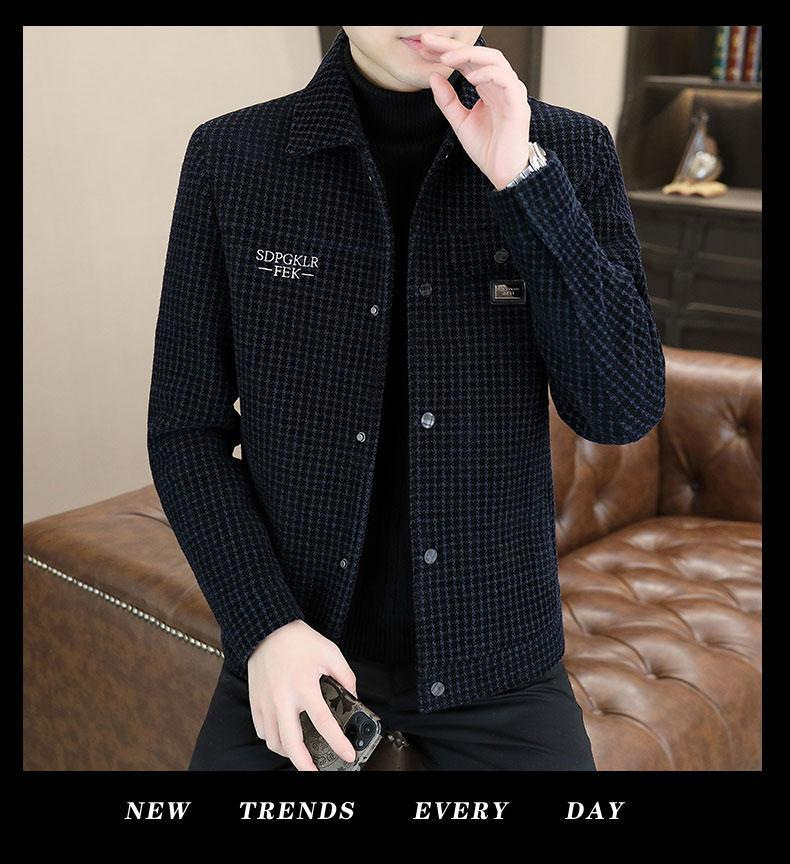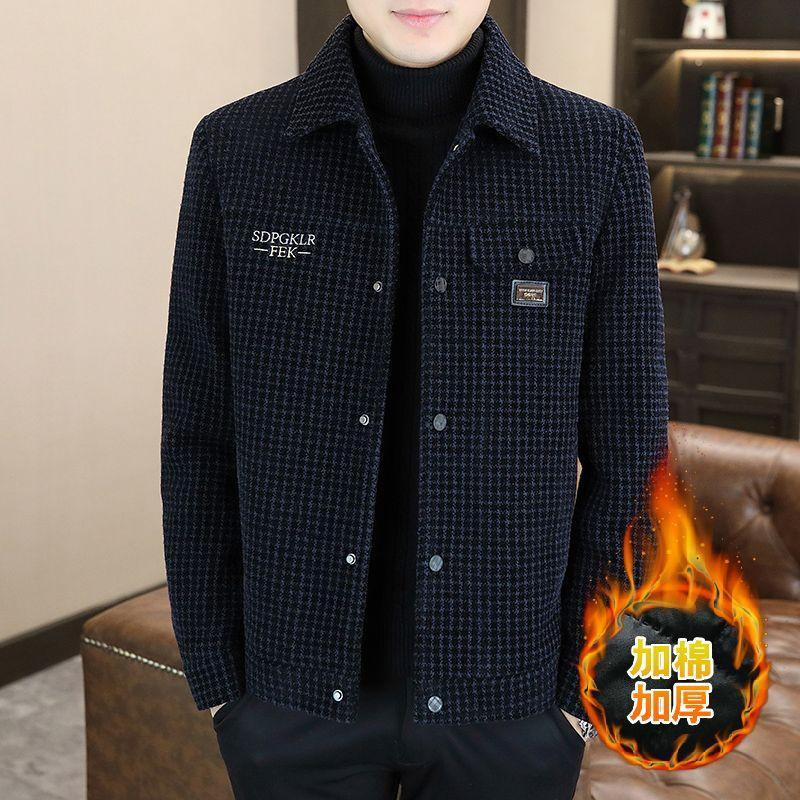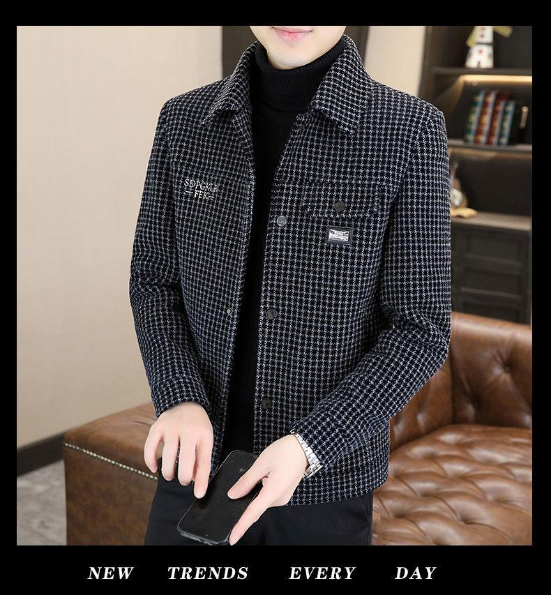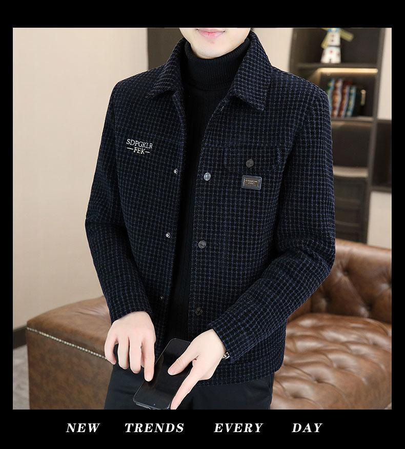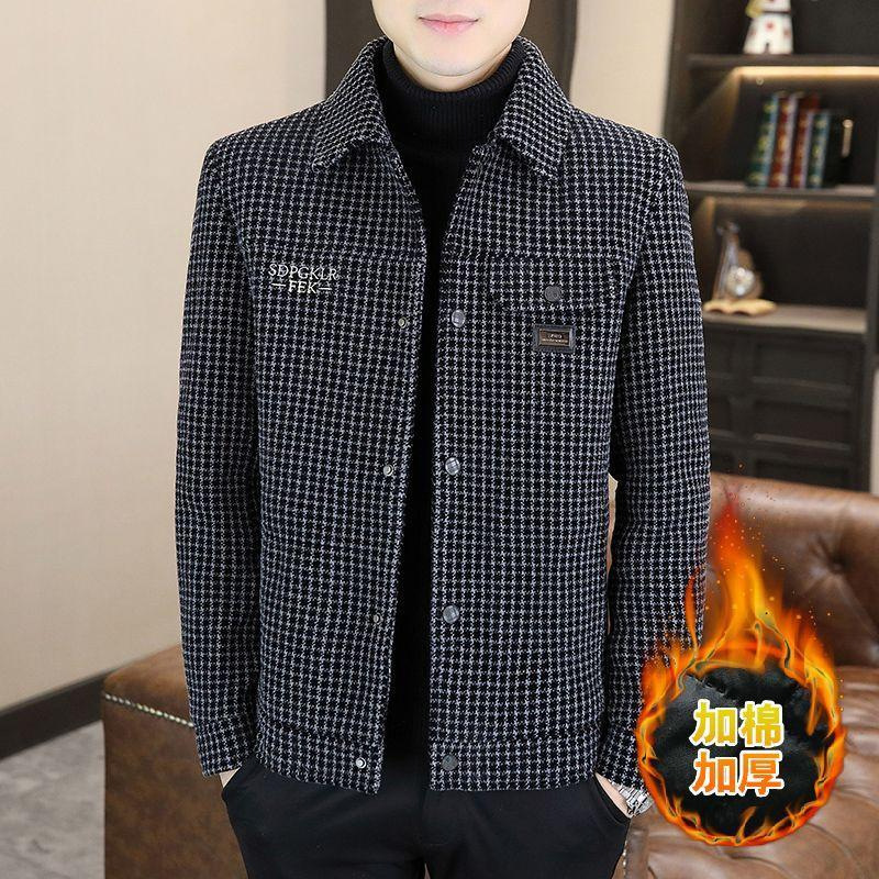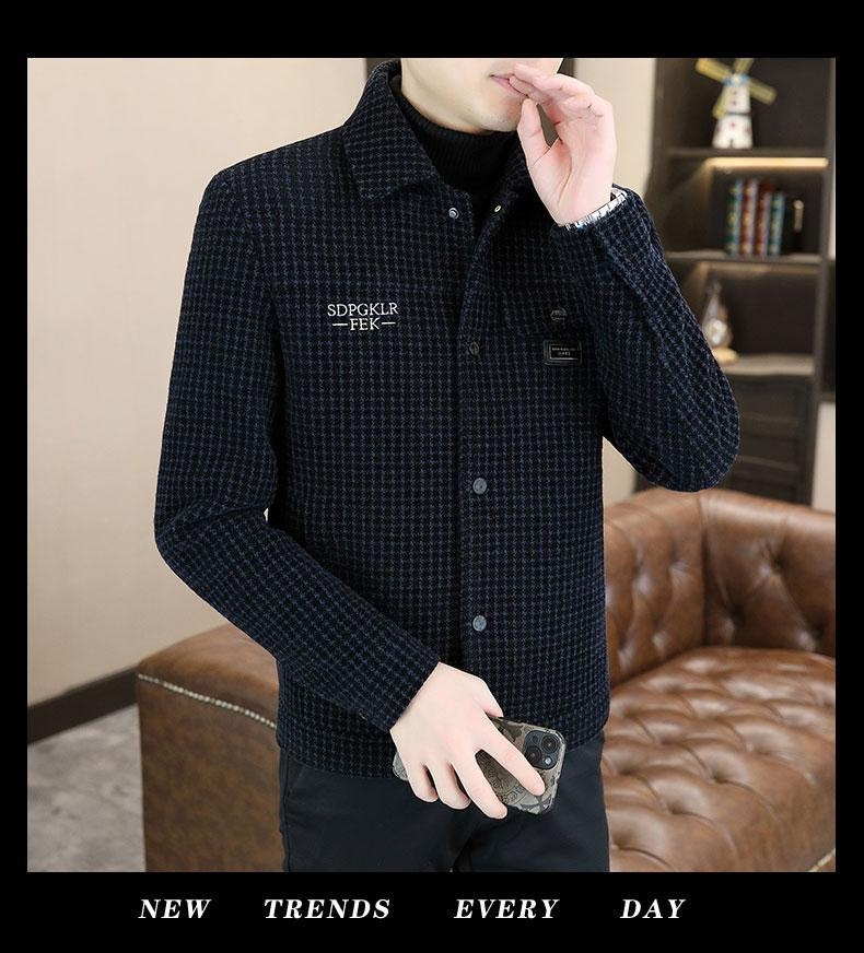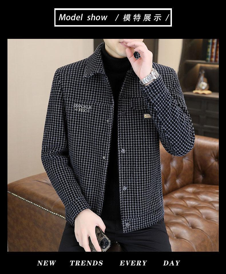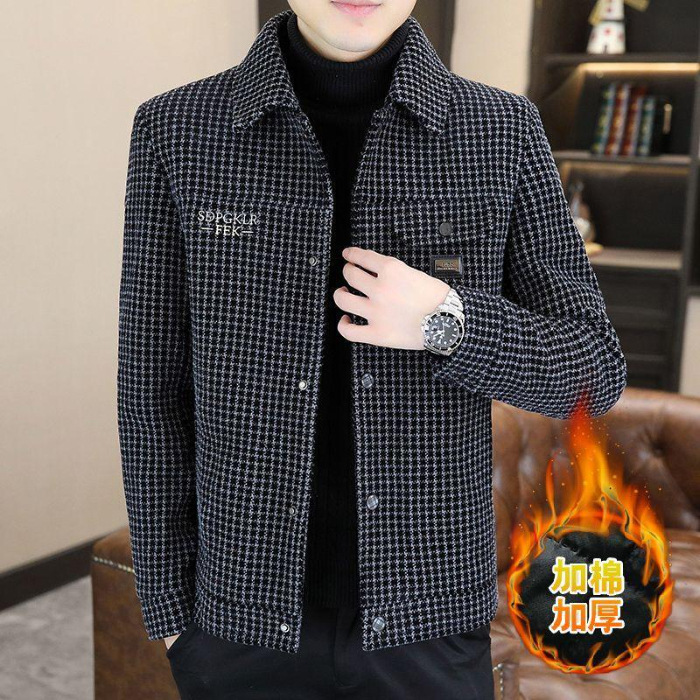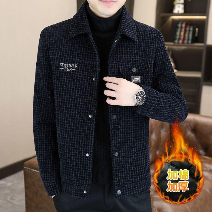 2024 Зимние мужские плюшевые толстые теплые шерстяные куртки повседневные дикие красивые тысячи птиц шерстяные куртки прилив