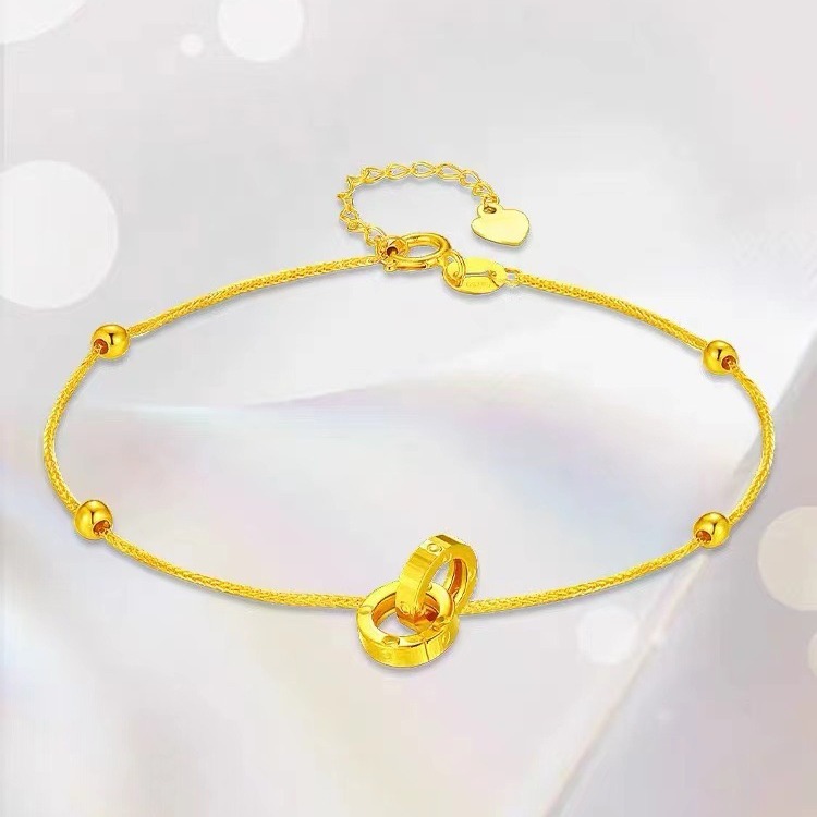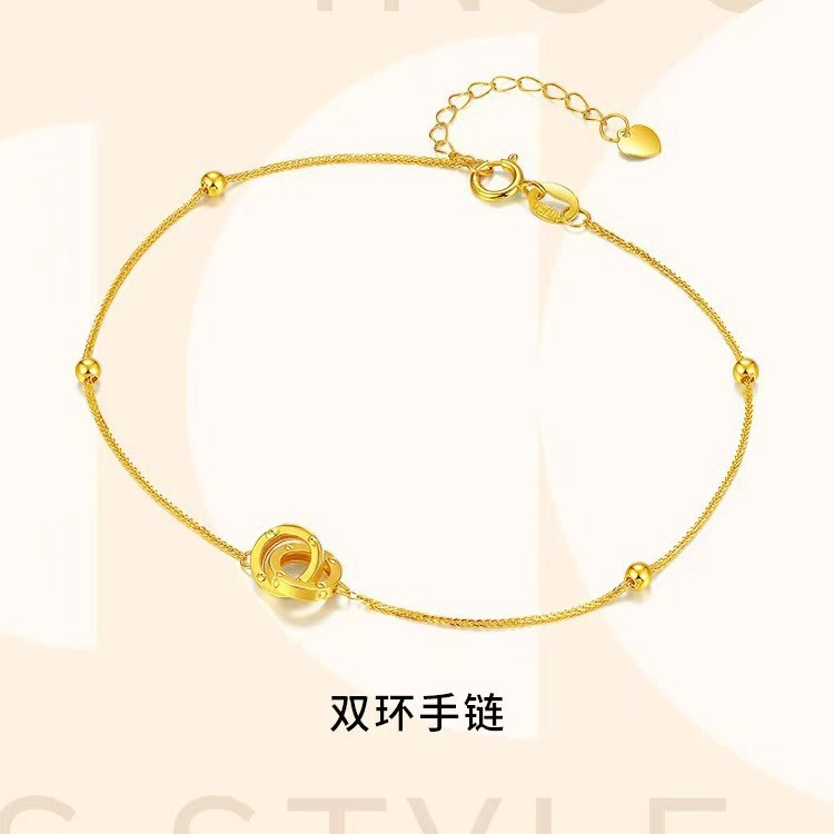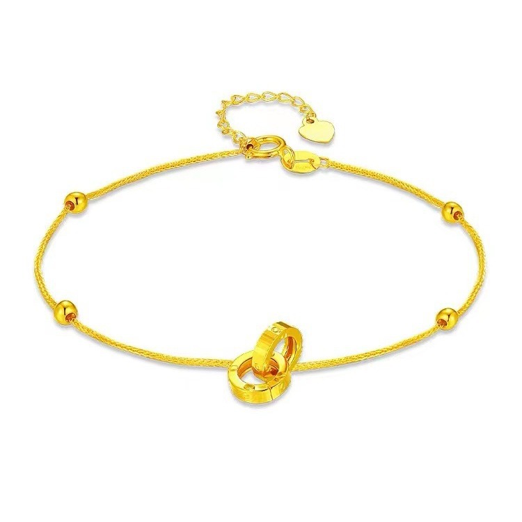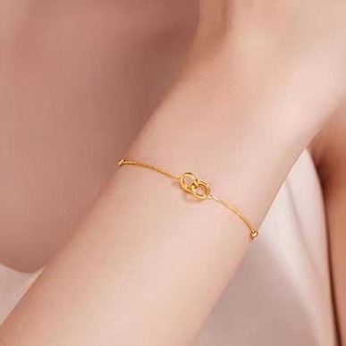Золотой браслет 18К с переплетением, цвет золота Au750, двойное кольцо, подарок на праздник, оптом