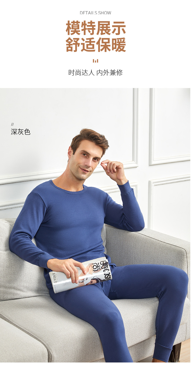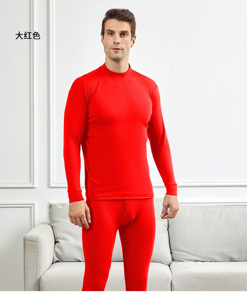 Мужской комплект хлопкового нижнего белья Red Bean на осень, свободный крой, утолщенный, с воротником-стойкой, теплый и плотный.