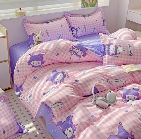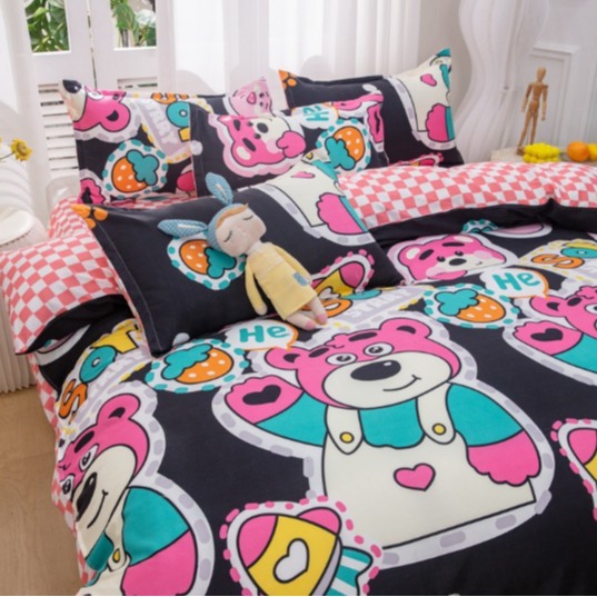 Трансграничные прямые продажи Мультяшный набор из четырех частей Летняя машинная стирка общежития набор из четырех частей 1,5 м кровать 1,8 м кровать оптом