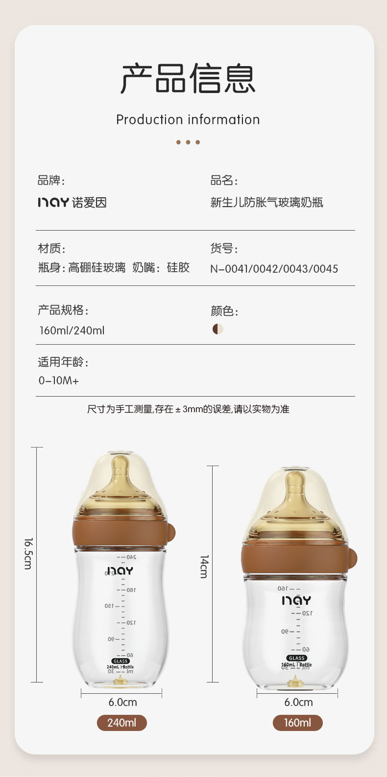 N-0041 Коричневый 160 мл (стандартный код SS); N-0042 Коричневый 160мл (стандартный размер S); N-0043 Коричневый 240мл (стандартный размер М); N-0045 Коричневый 240мл (стандартный размер L); N-0076 Коричневый 300мл (стандартный размер М); N-0077 Коричневый 300мл (стандартный размер L)