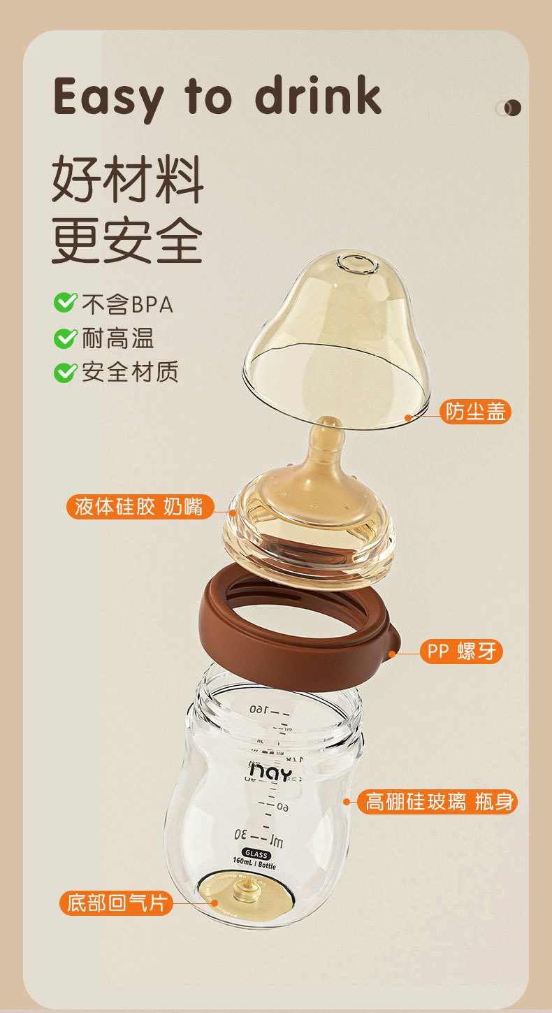 Nuoaiin имитация грудного молока для новорожденных, против метеоризма, бутылочка из боросиликатного стекла для новорожденных, бутылочка для новорожденных 0-10 месяцев