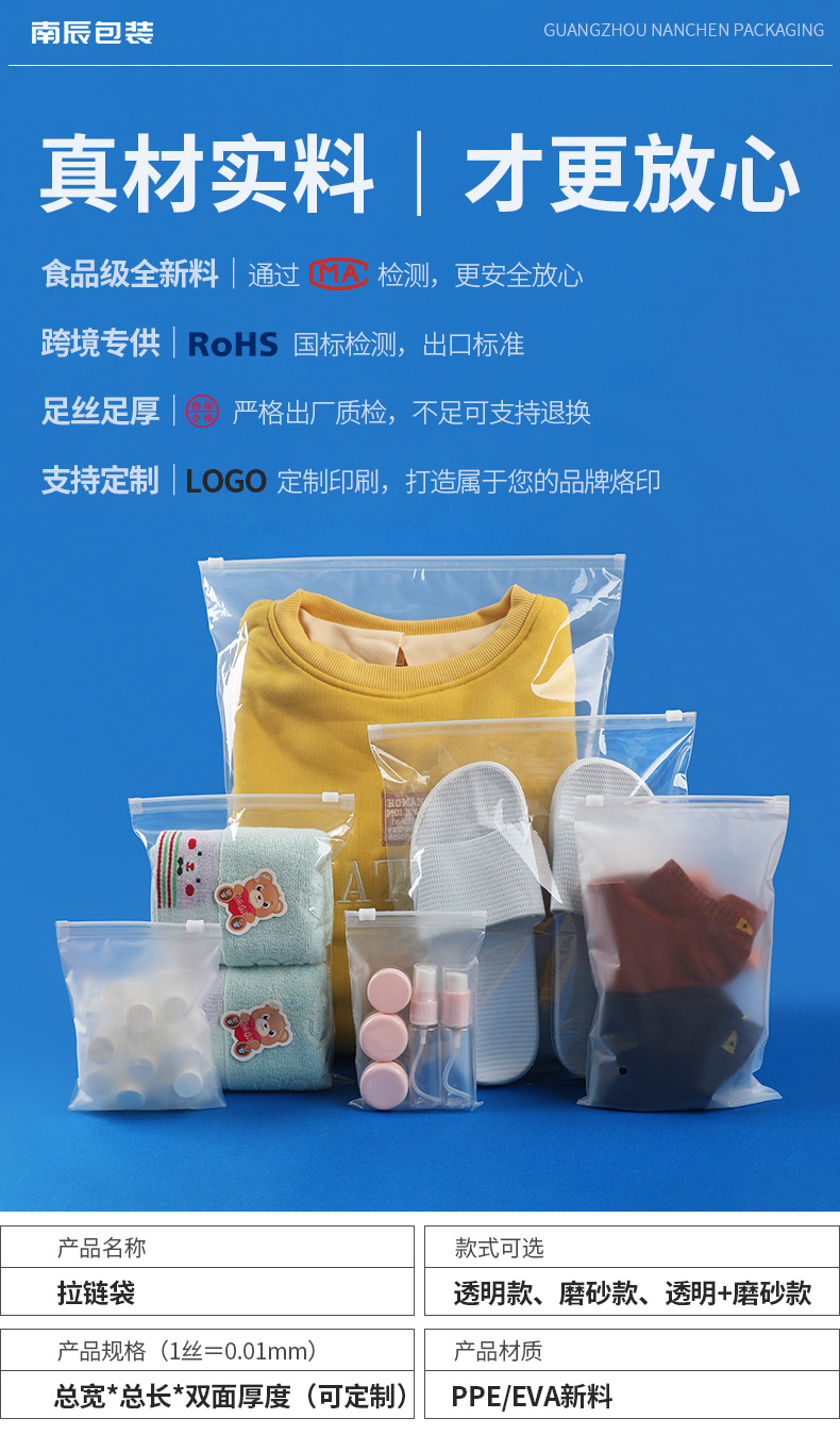 Оптовая продажа pe прозрачная молния сумка может быть напечатана матовая одежда сумка нижнее белье трусики носки мешки для упаковки одежды