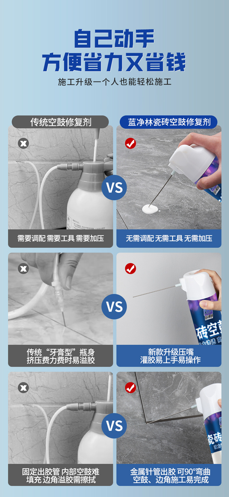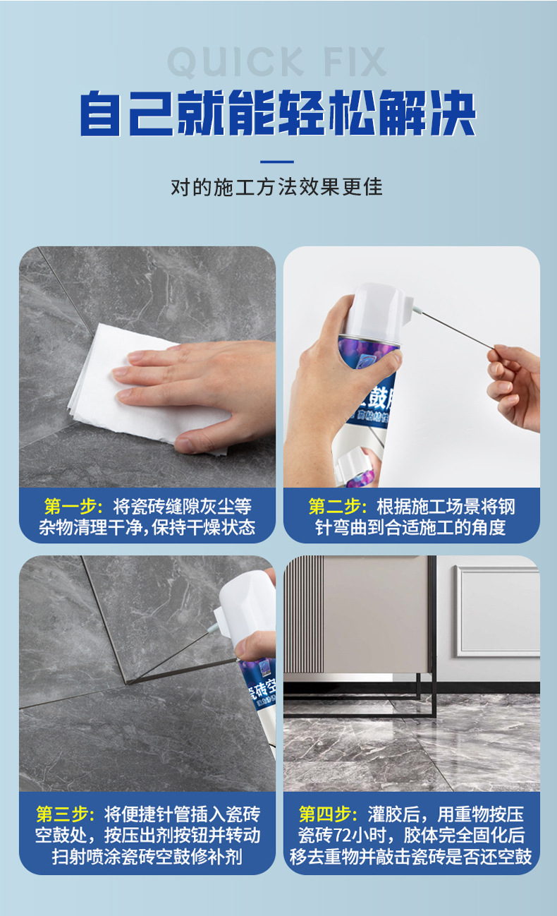 Средство для полого барабана для керамической плитки, проникающий тип, полый барабан, клей для ремонта стен и напольной плитки, самораспыляющееся средство для клея для бытовой плитки