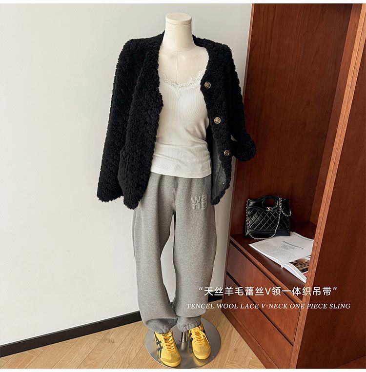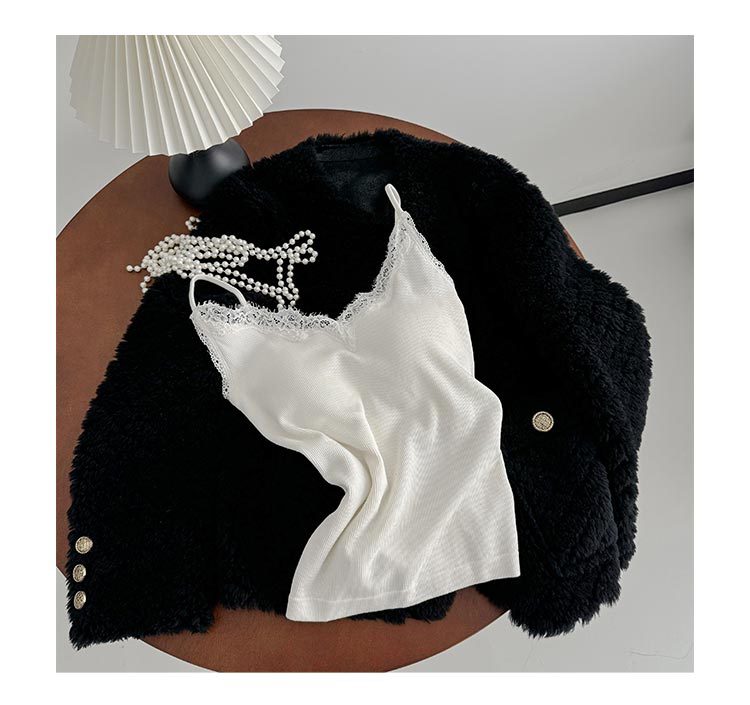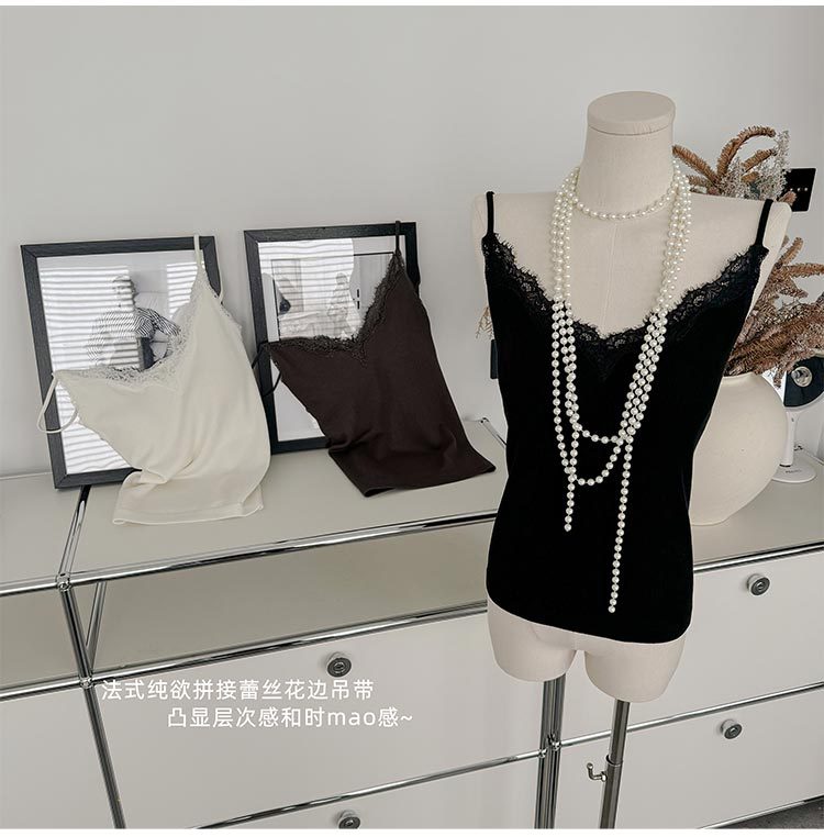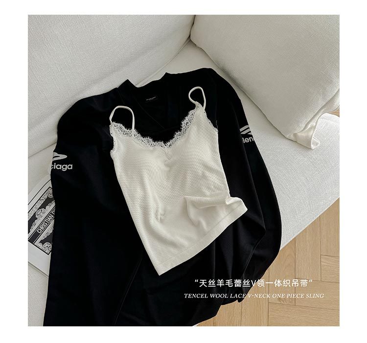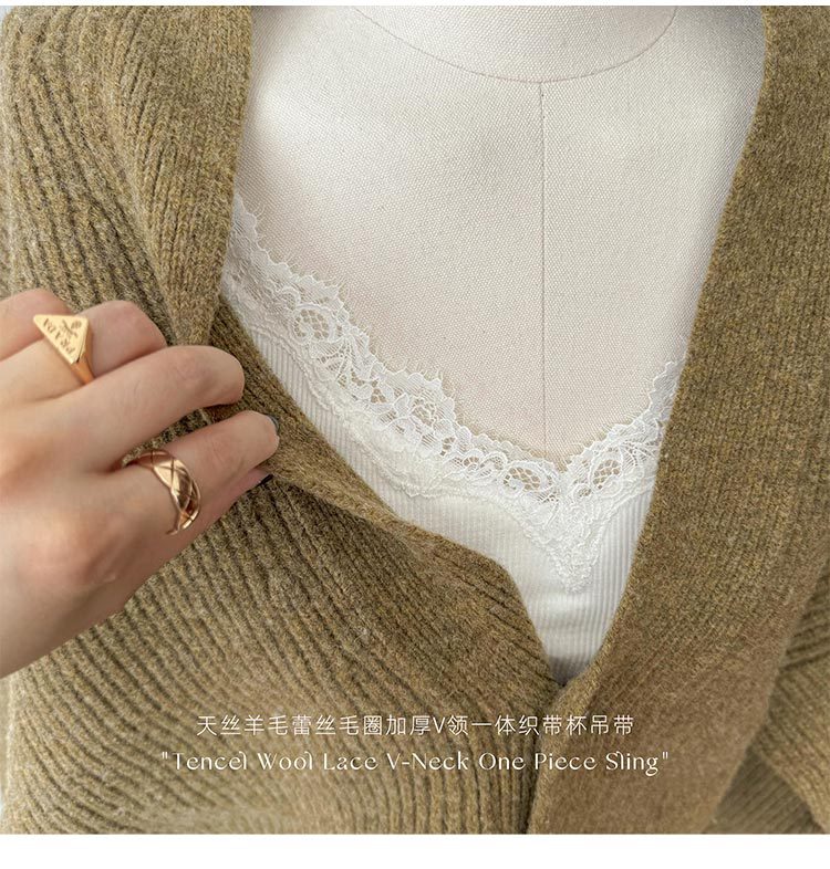 2024 осень и зима нижнее белье женское нити из шерсти кружева с толстым V-образным вырезом