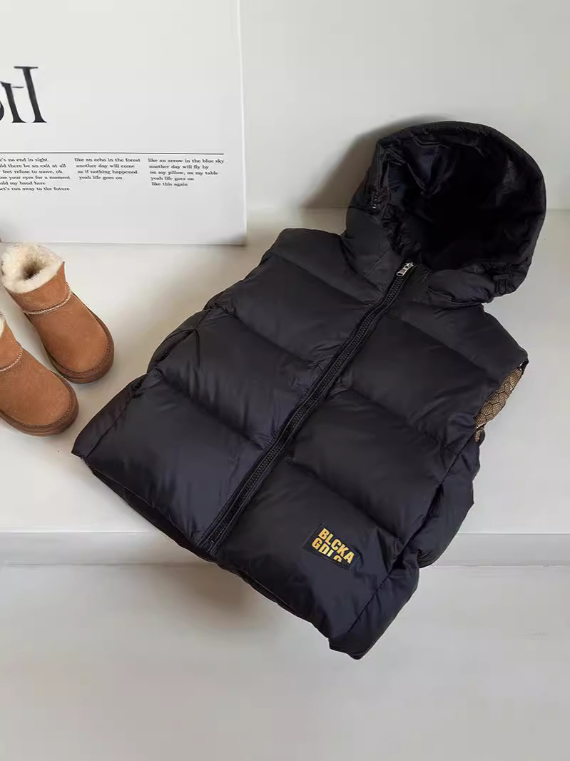 Новый детский шелковый жилет из черного золота на осень и зиму, для мальчиков и девочек, для детей среднего и большого размера, теплый и утолщенный жилет для внутренней и верхней одежды.