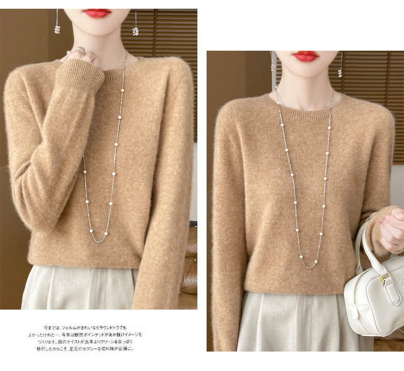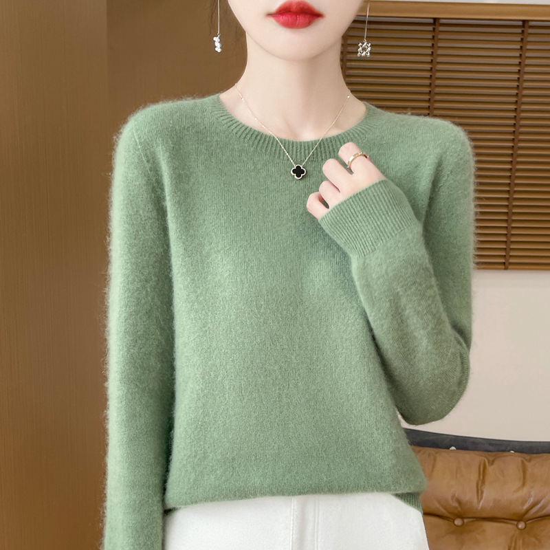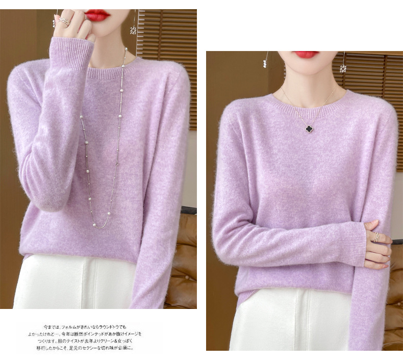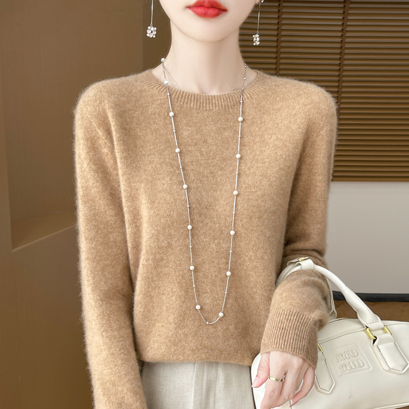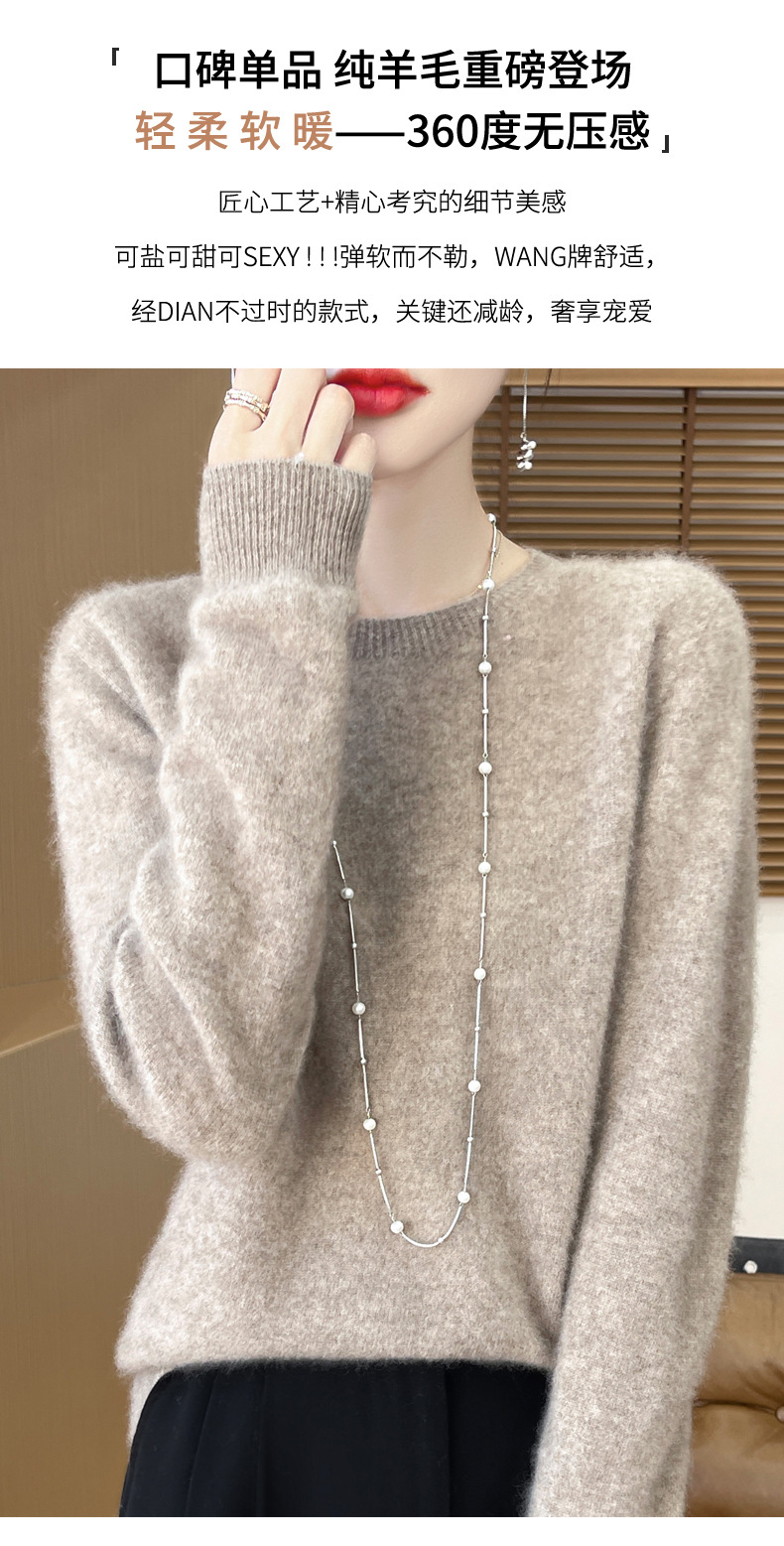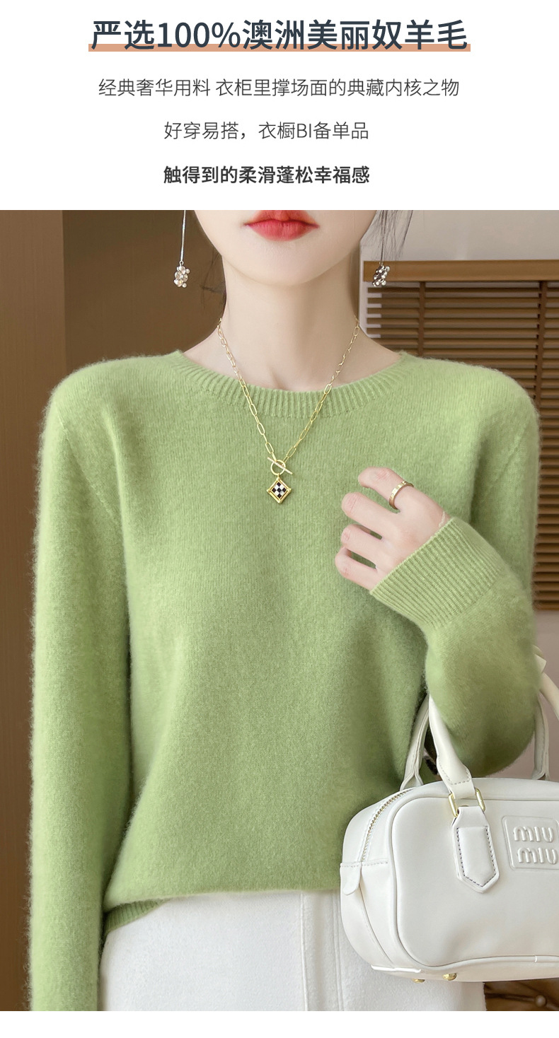 Мягкий клейкий простой шерстяной свитер женский 100 чистый шерстяной свободный с длинными рукавами осенью и зимой новый трикотажный свитер с круглым вырезом
