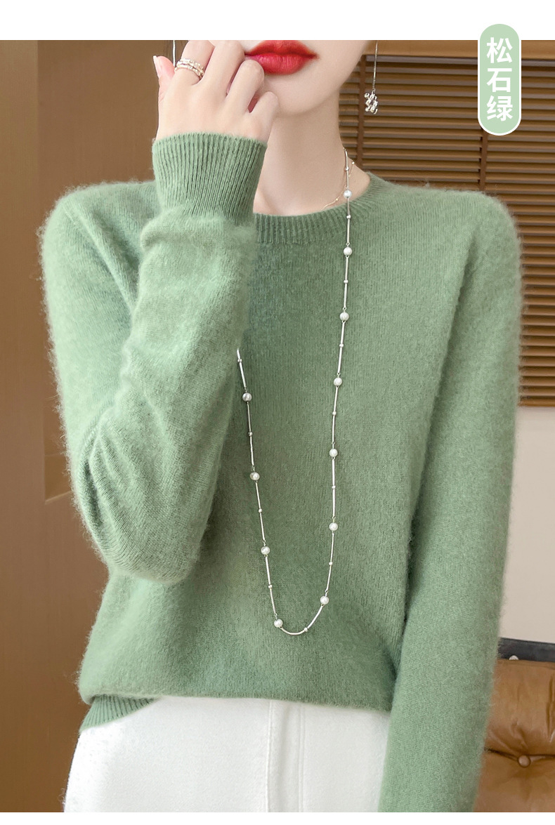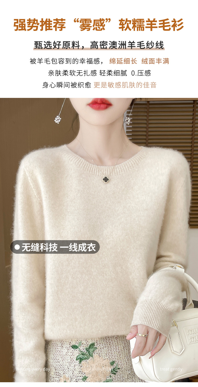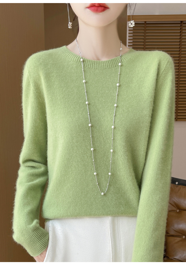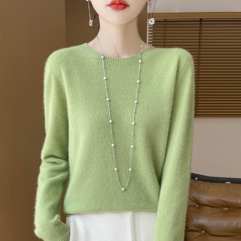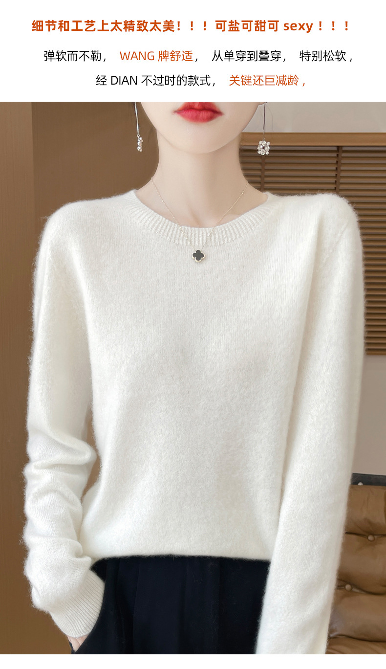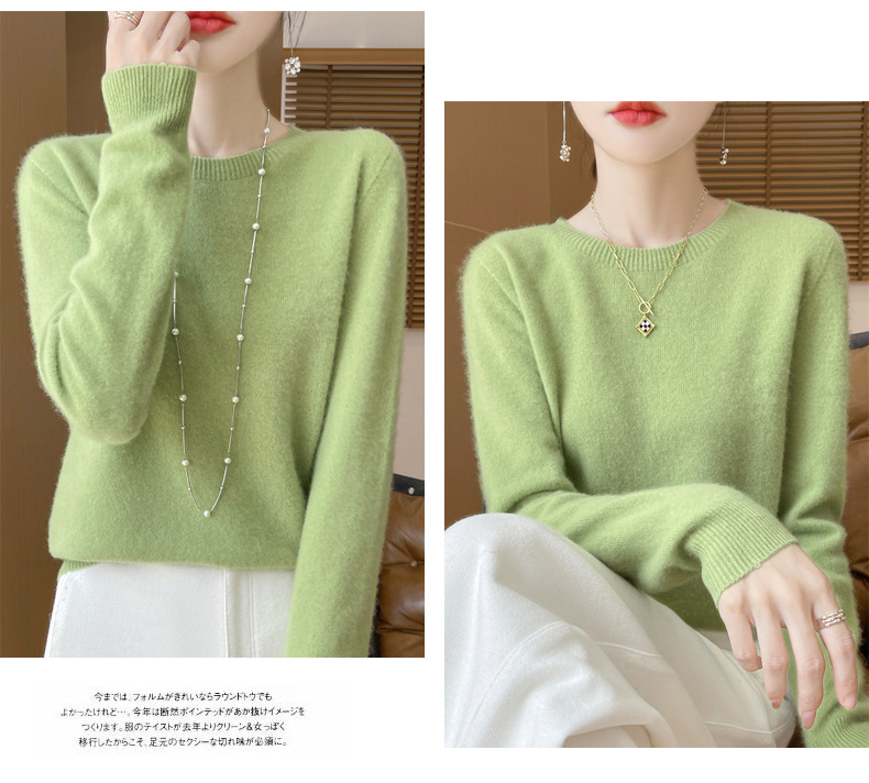 Мягкий клейкий простой шерстяной свитер женский 100 чистый шерстяной свободный с длинными рукавами осенью и зимой новый трикотажный свитер с круглым вырезом