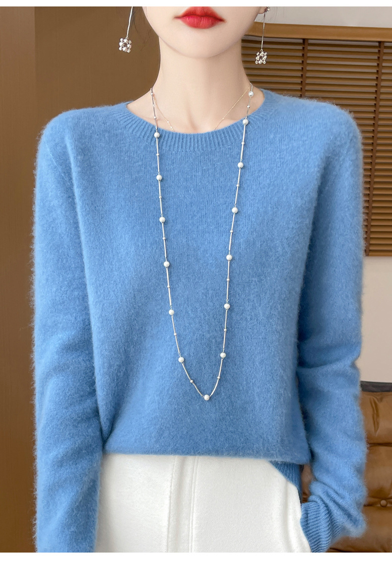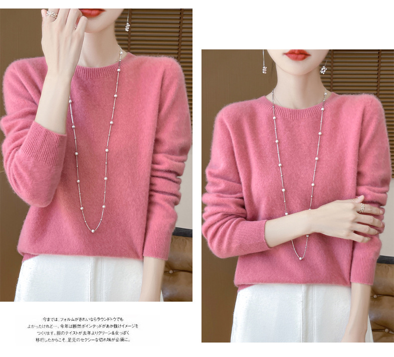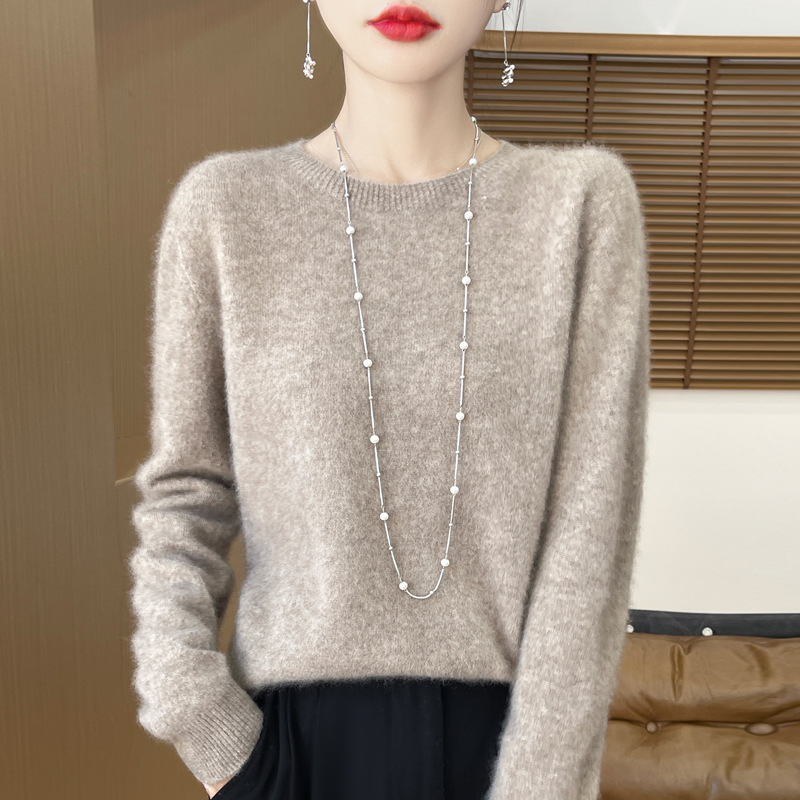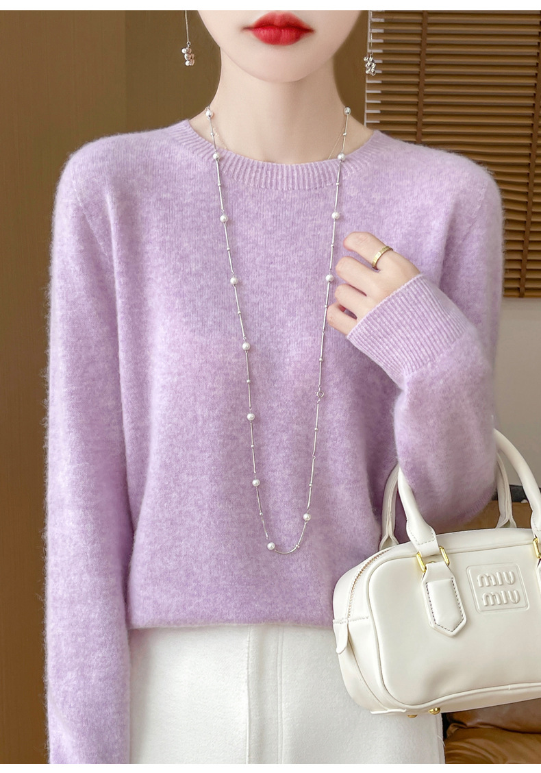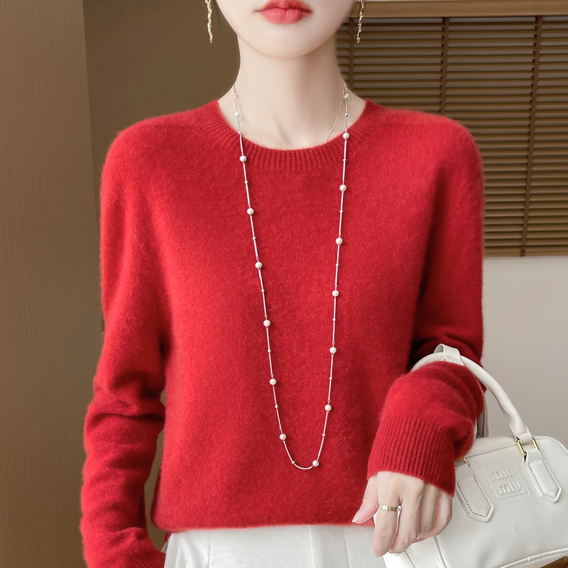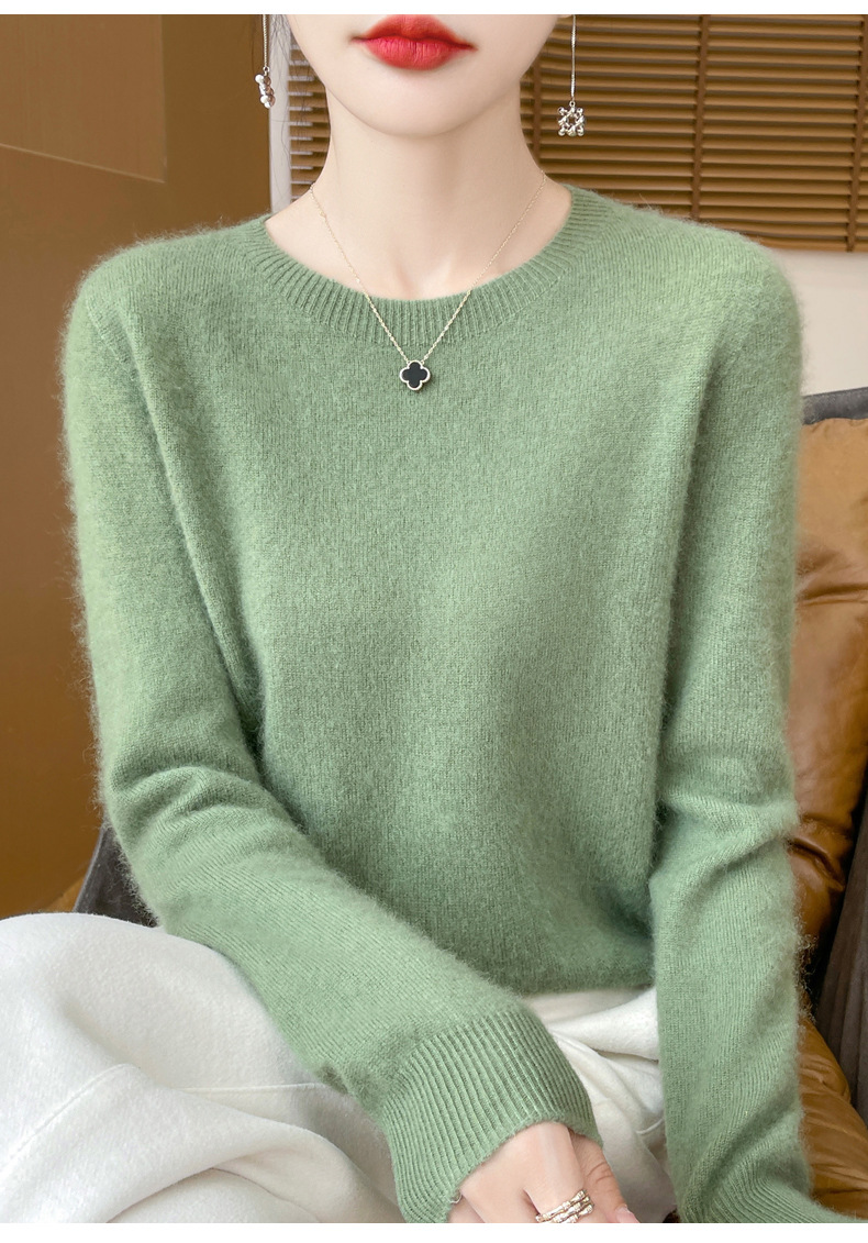 Мягкий клейкий простой шерстяной свитер женский 100 чистый шерстяной свободный с длинными рукавами осенью и зимой новый трикотажный свитер с круглым вырезом