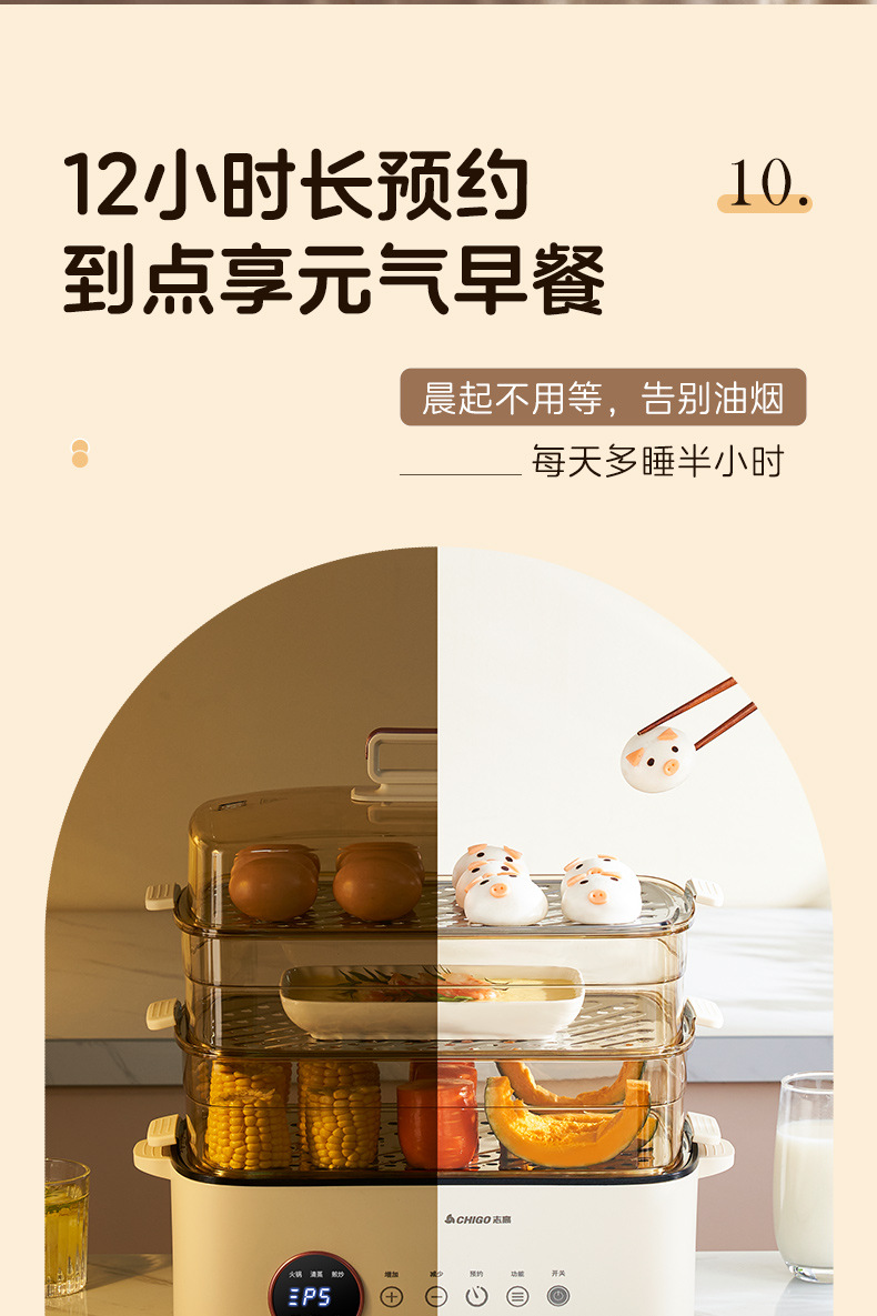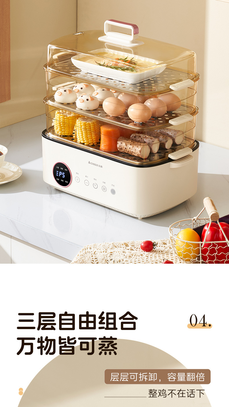 Chigo электрический пароварка три этажа большой емкости пароварка пароварка многофункциональная изоляция дома Многослойный умный завтрак