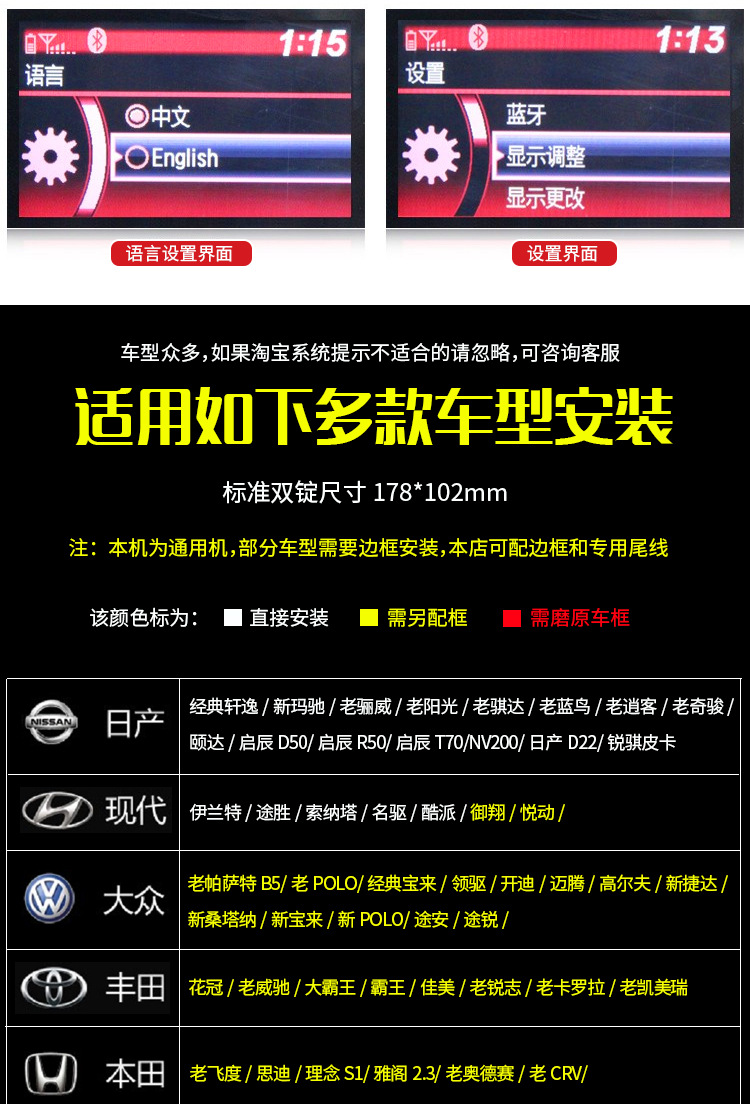 Применимо к Toyota Nissan Hyundai модифицированный 7-дюймовый автомобильный Bluetooth-хост USBaux реверс 178*100 бытовых усилителя мощности