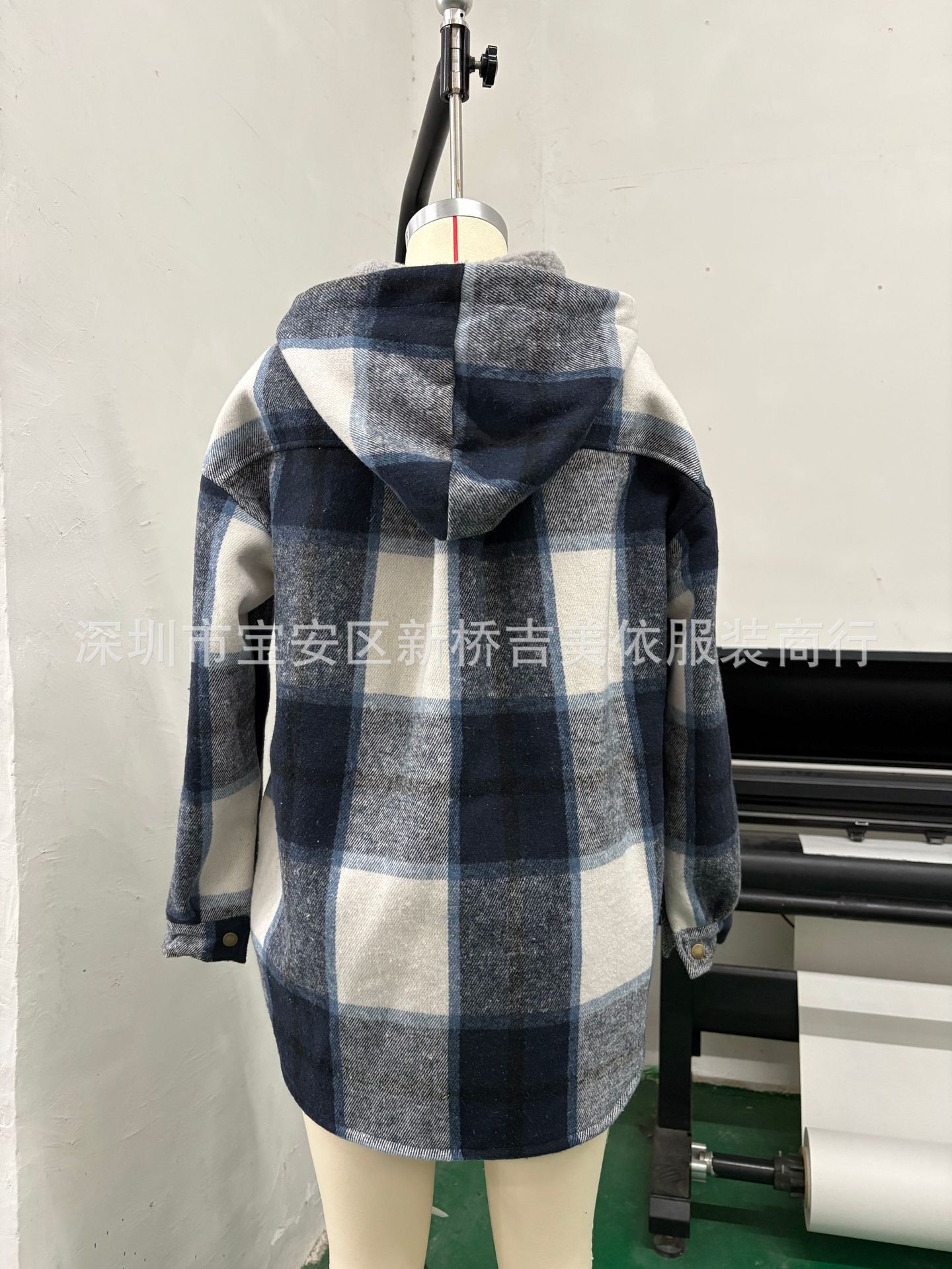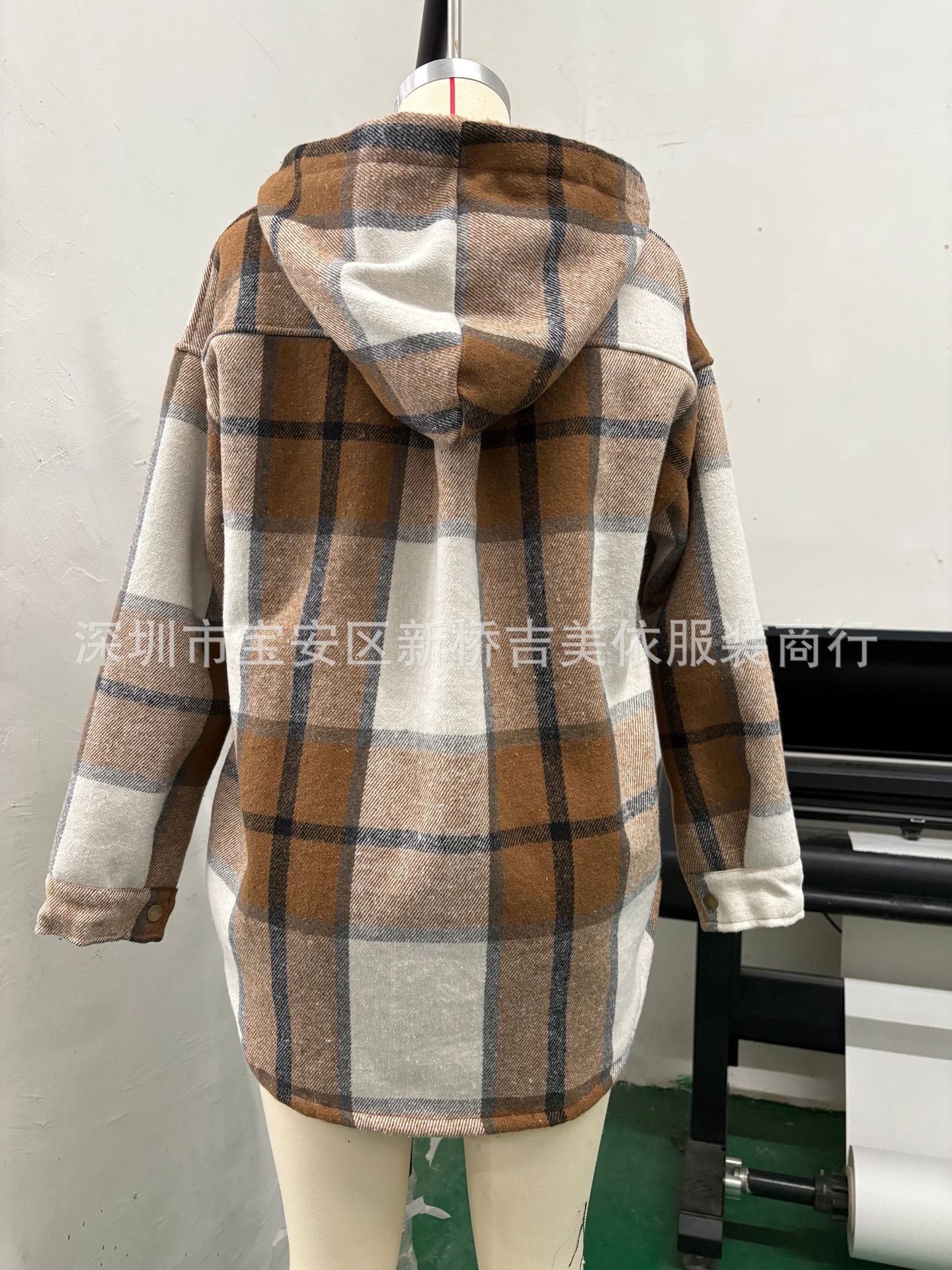 Куртка-пальто из фланели в европейском и американском стиле, осенняя, с длинными рукавами, на пуговицах, с капюшоном, в стиле колор-блок, 2025 год