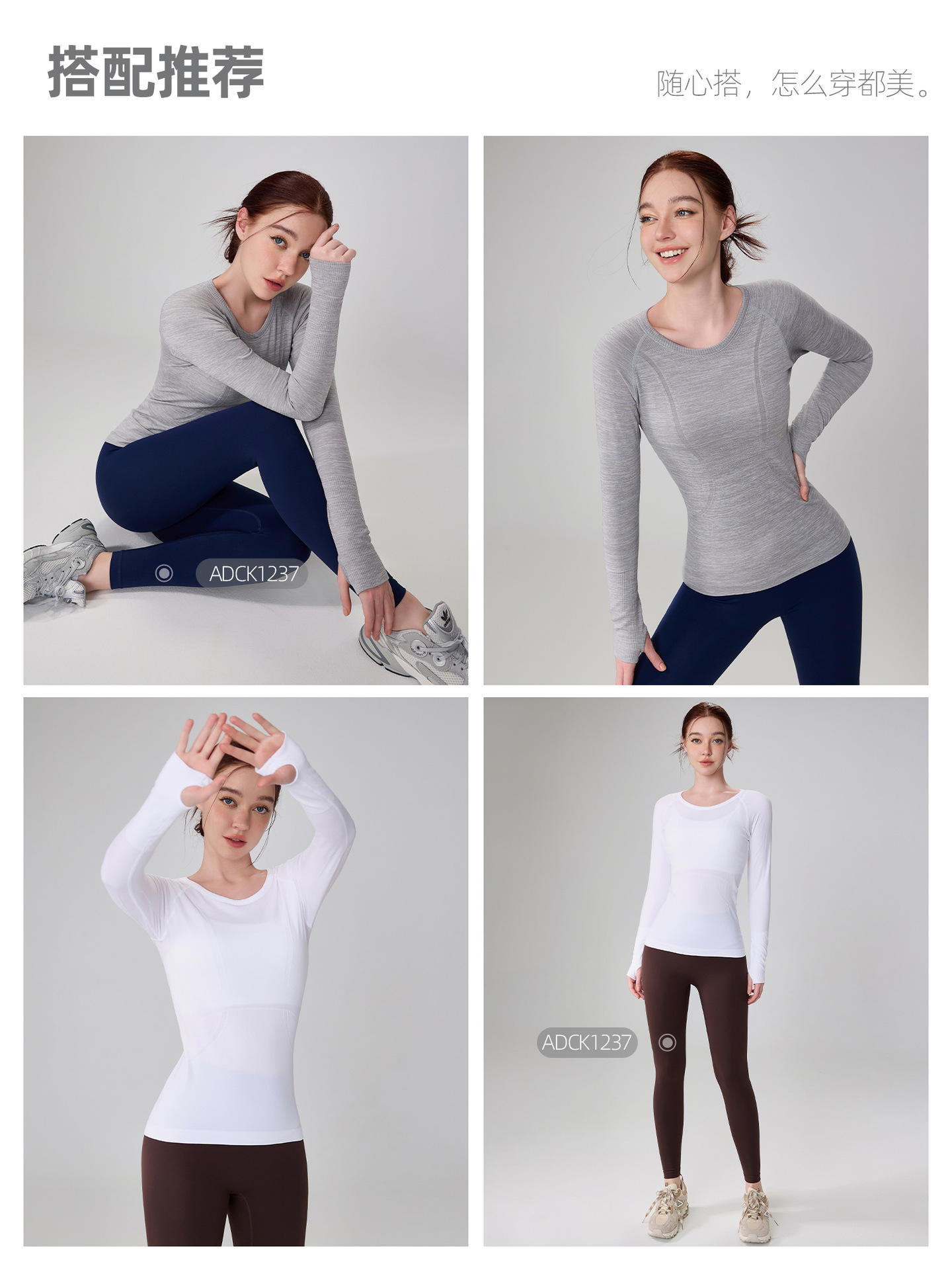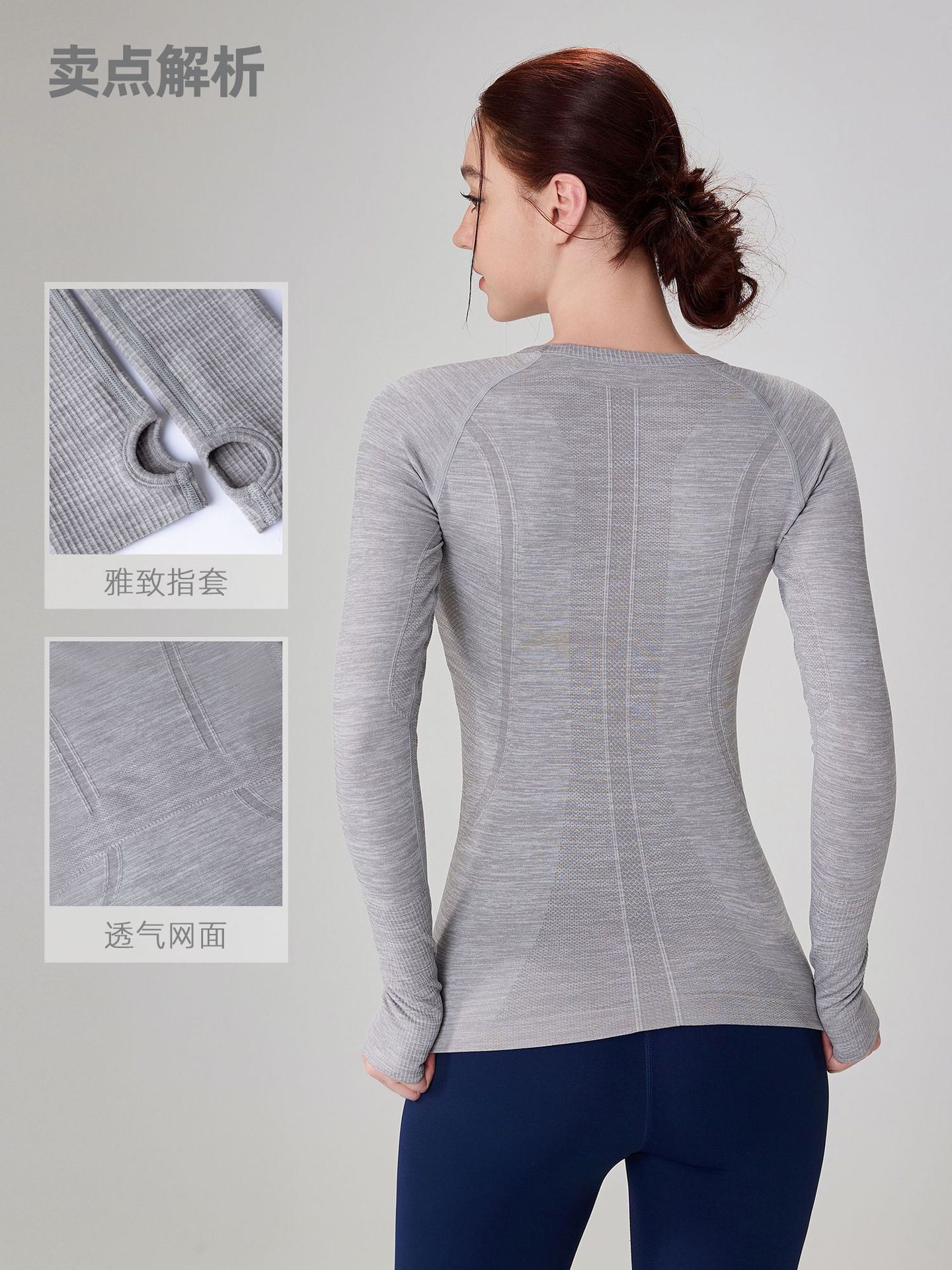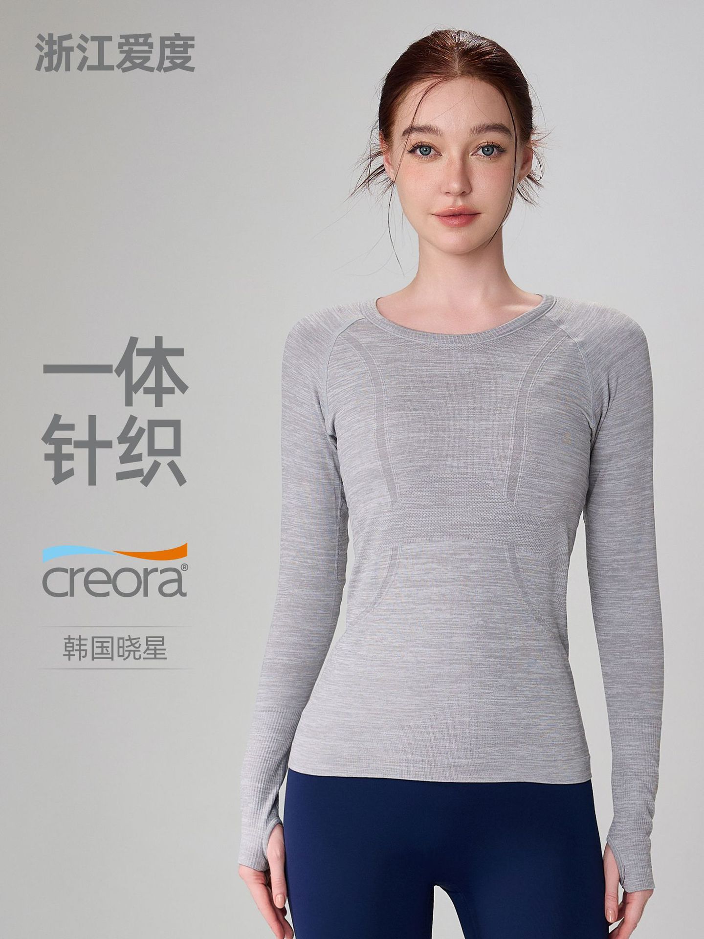 Спортивная одежда Aidu для женщин, бесшовная, с эффектом «второй кожи», облегающая, для йоги, с длинным рукавом, дышащая, с круглым вырезом, для бега, зимняя.