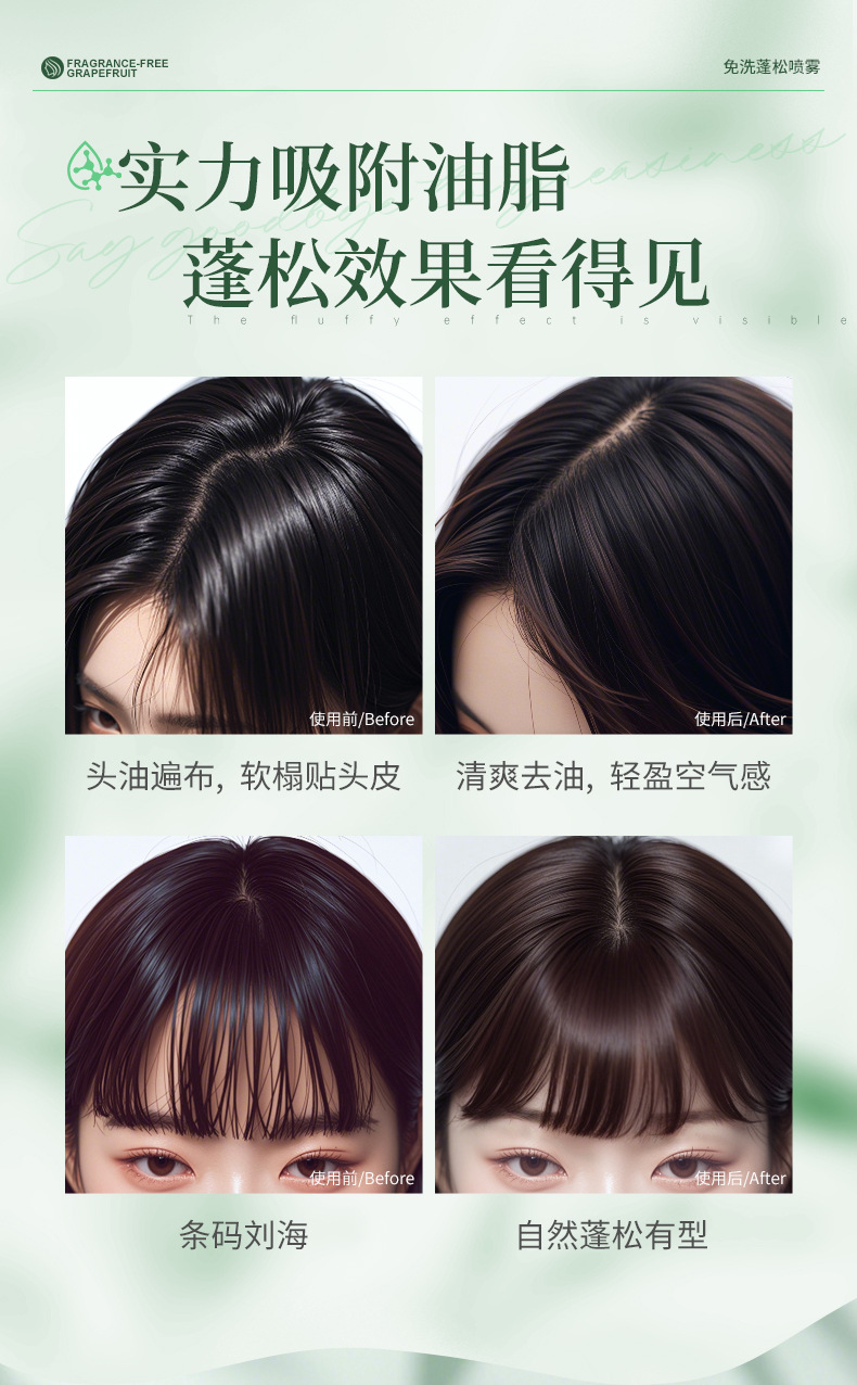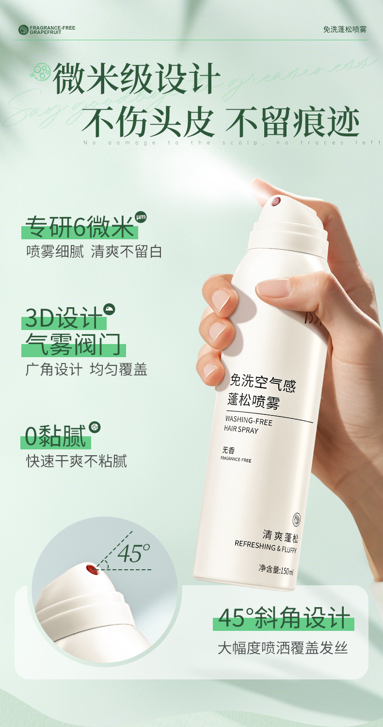 Оптовая продажа: спрей для волос без смывания с ароматом помело, без отдушек, для объема, с эффектом воздушной прически, быстрое удаление жирности, абсорбирующий жир, для студентов и вечеринок, от производителя
