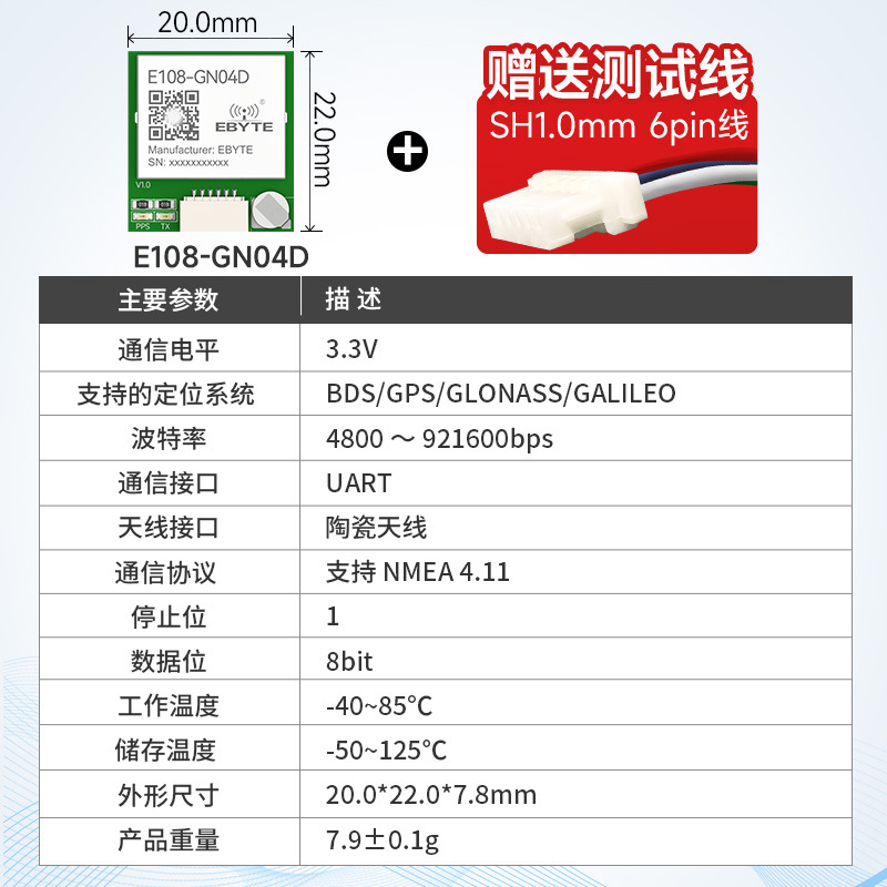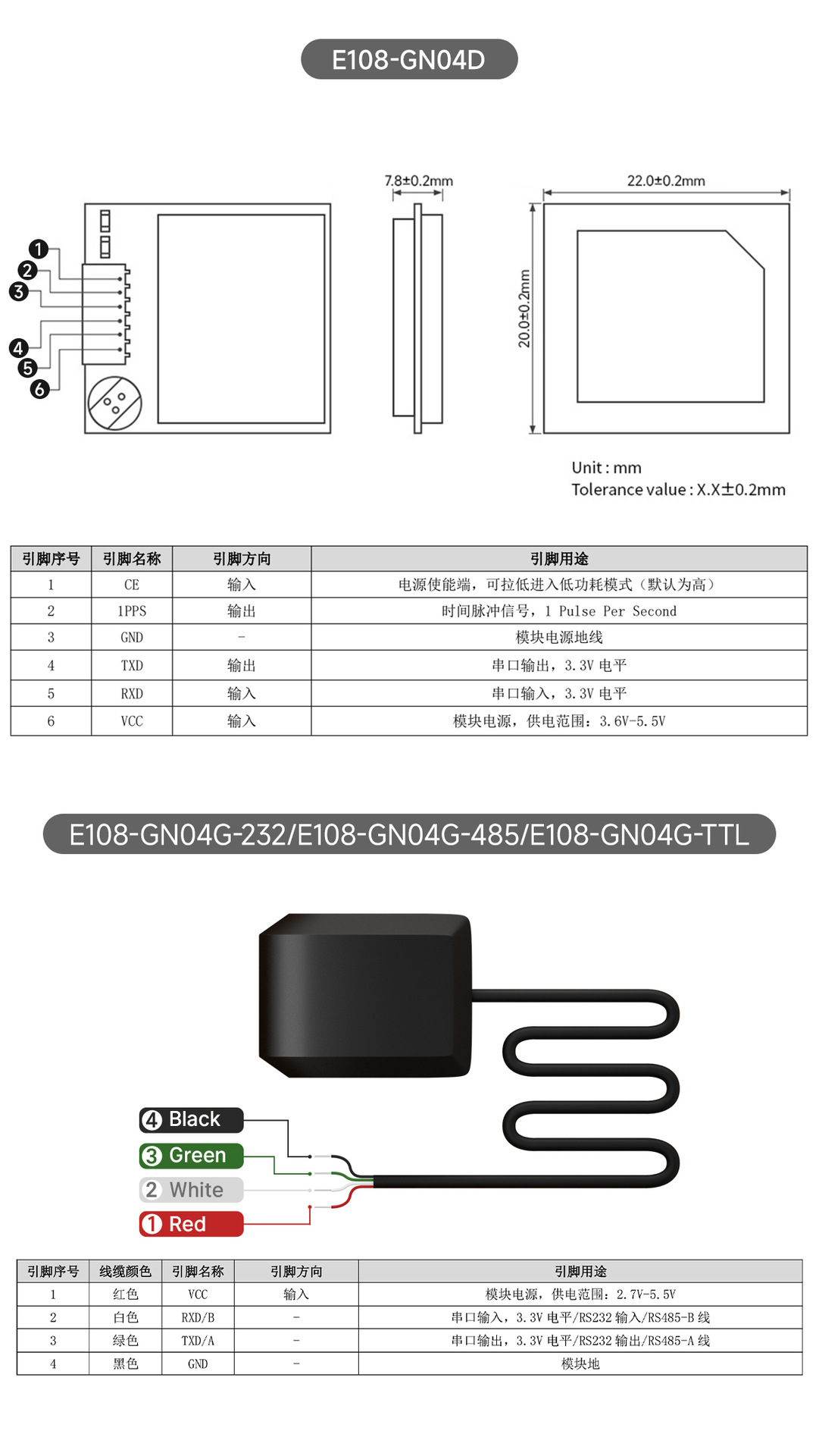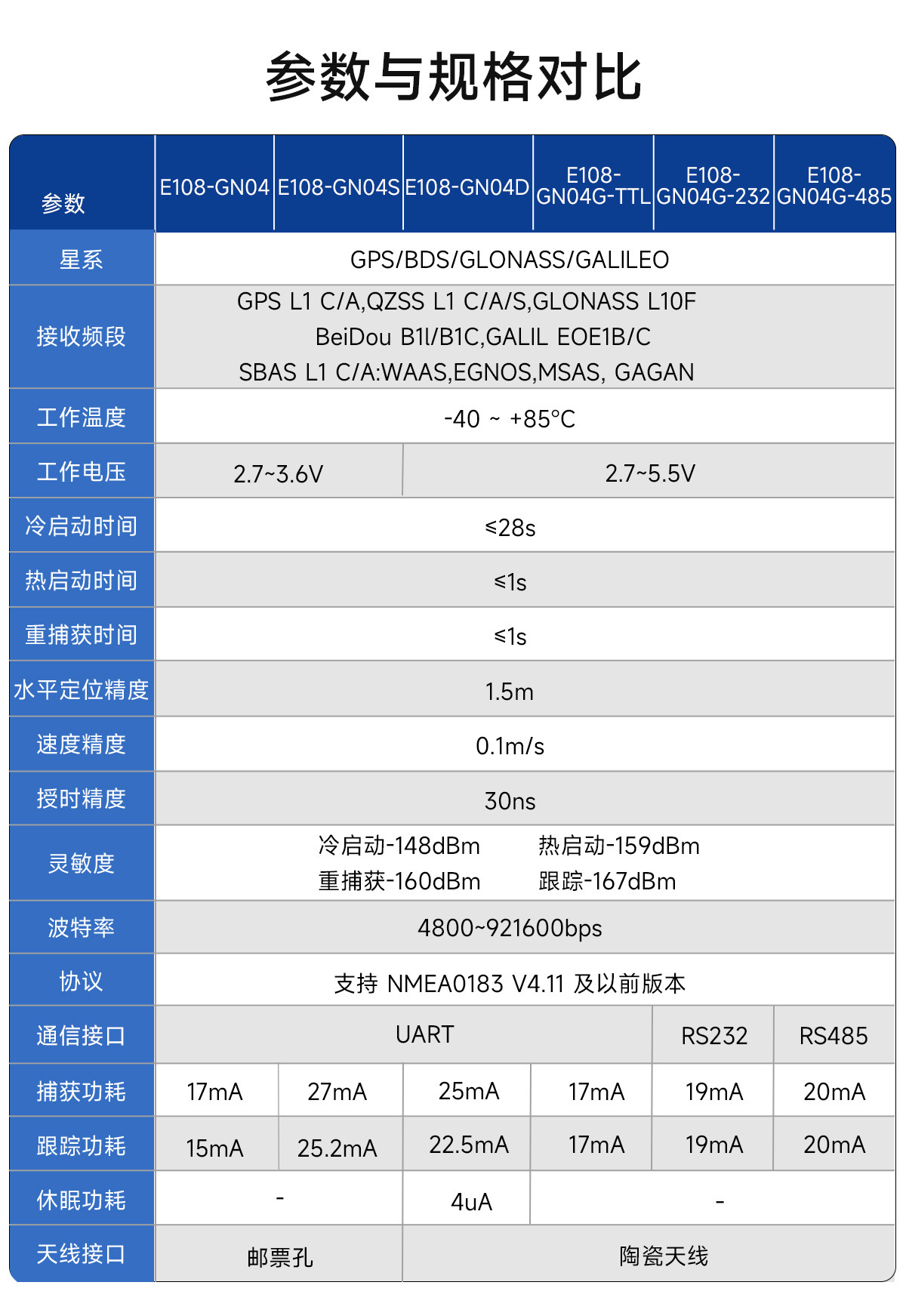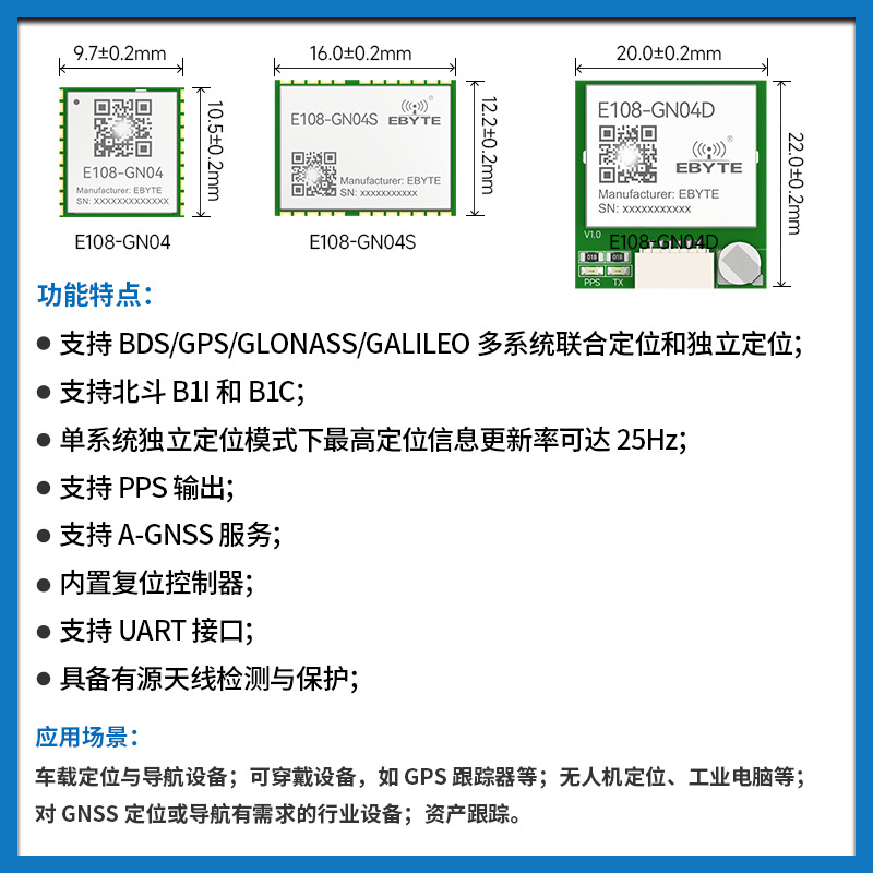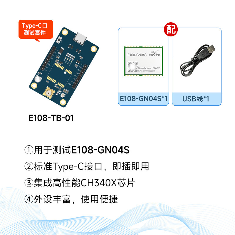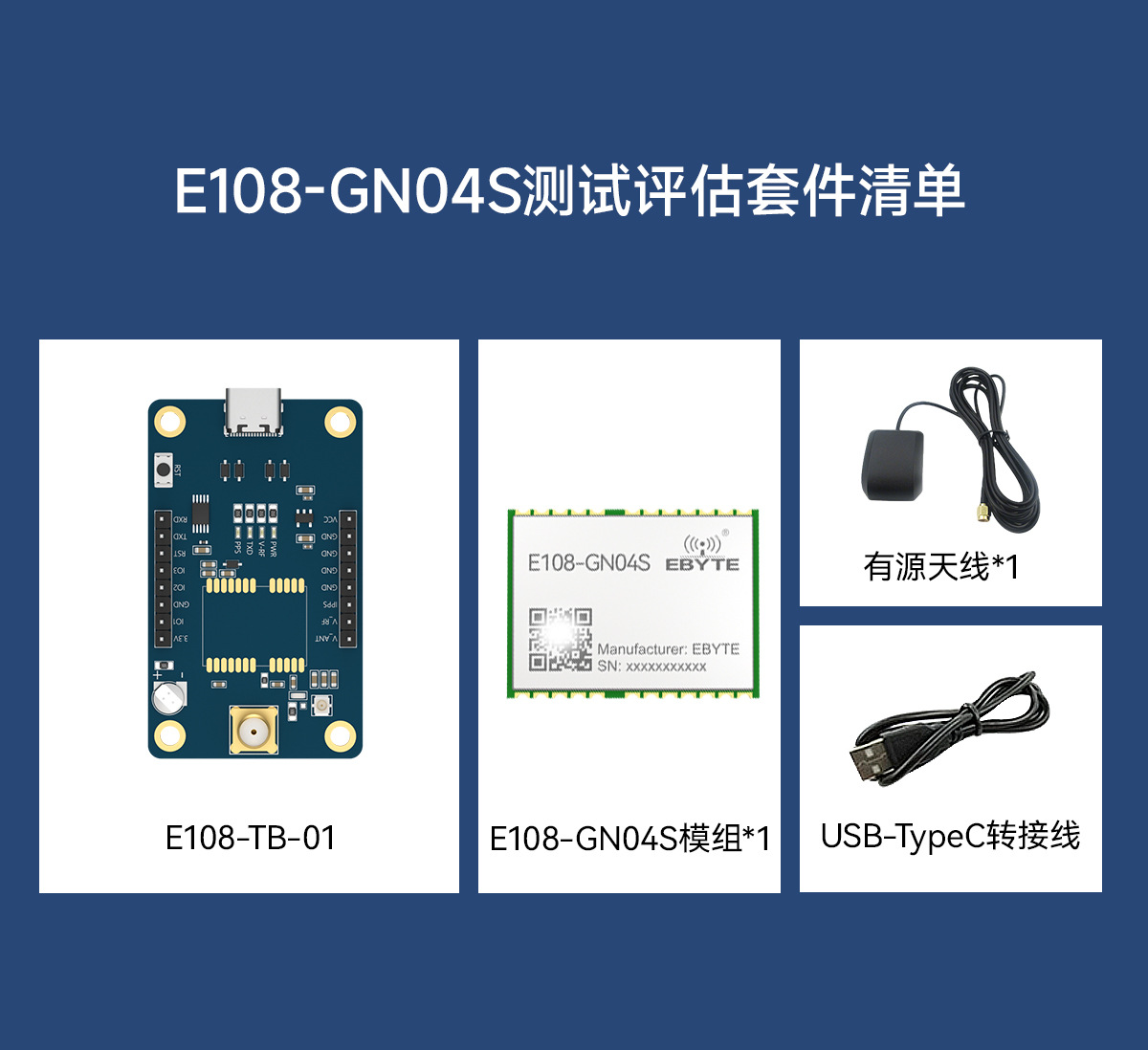 E108-GN04 [импортированный высокопроизводительный четырехрежимный]; E108-GN04S [импортированный высокопроизводительный четырехрежимный]; E108-GN04D [импортированный высокопроизводительный четырехрежимный]; E108-GN04D [Импортированный высокопроизводительный четырехрежимный, бесплатный кабель с клеммой SH1.0mm6pin]; E108-GN04G-232 [IP67 водонепроницаемый]; E108-GN04G-485 [IP67 водонепроницаемый]; E108-GN04G-TTL [IP67 водонепроницаемый]; Набор для тестирования и оценки E108-GN04S [оснащен антенной источника] Интерфейс Type-C; Набор для тестирования и оценки E108-GN04S [без антенны] Интерфейс Type-C