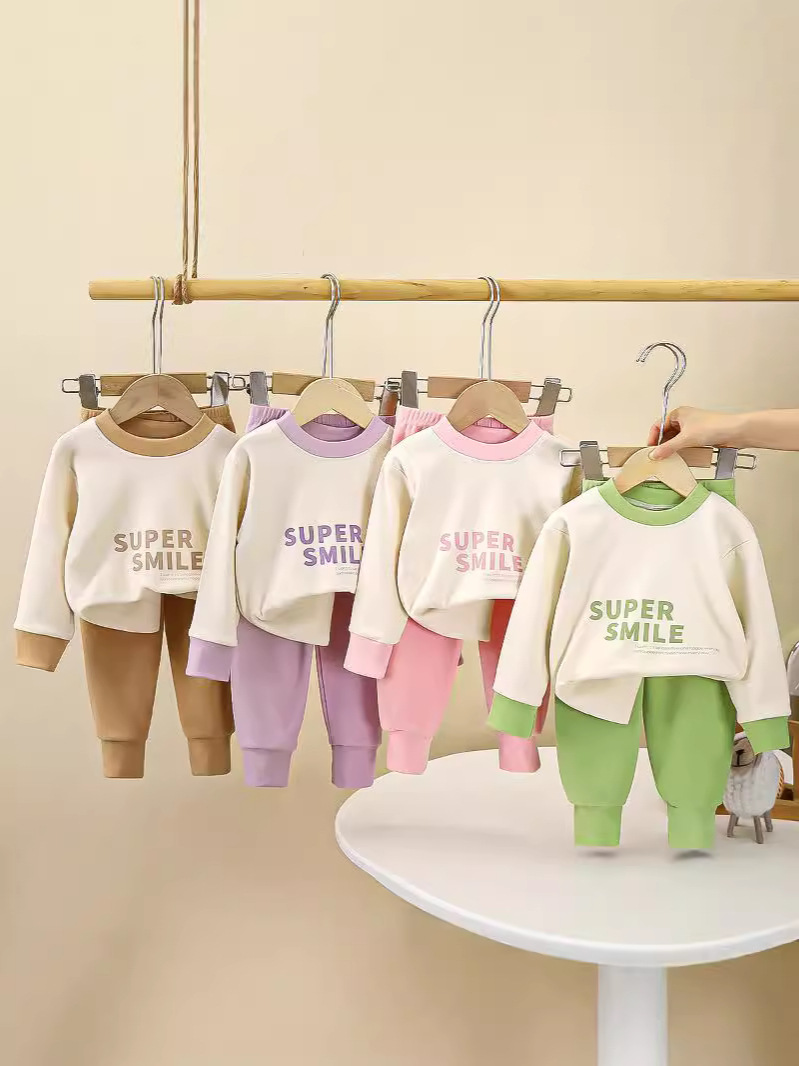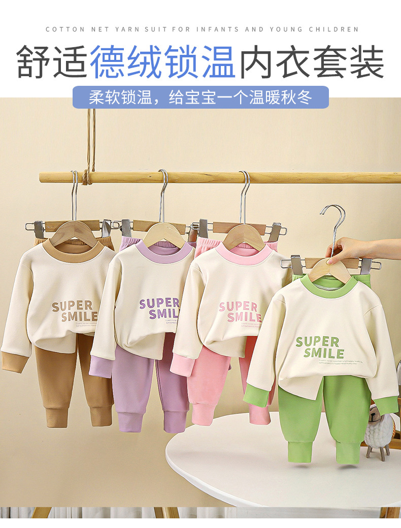 Детский комплект нижнего белья Двусторонняя бархатная осенняя одежда осенние брюки для мальчиков домашняя одежда осенне-зимняя девочка пижама с круглым вырезом новый
