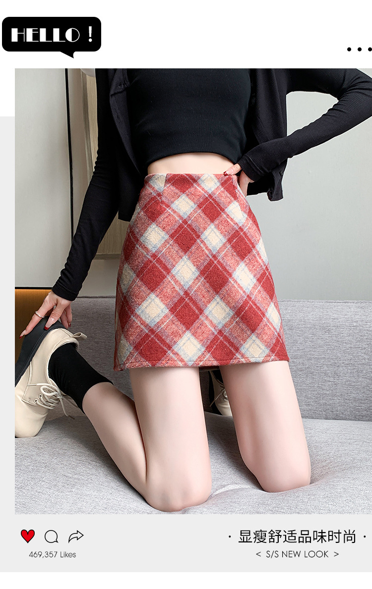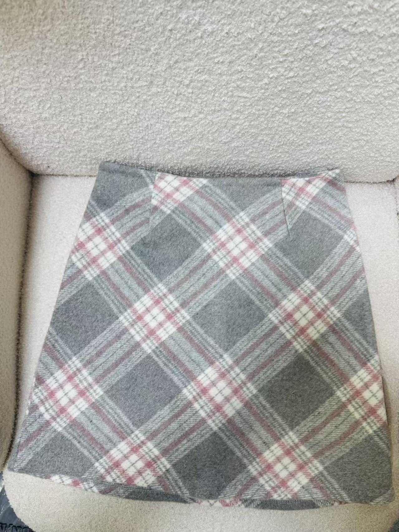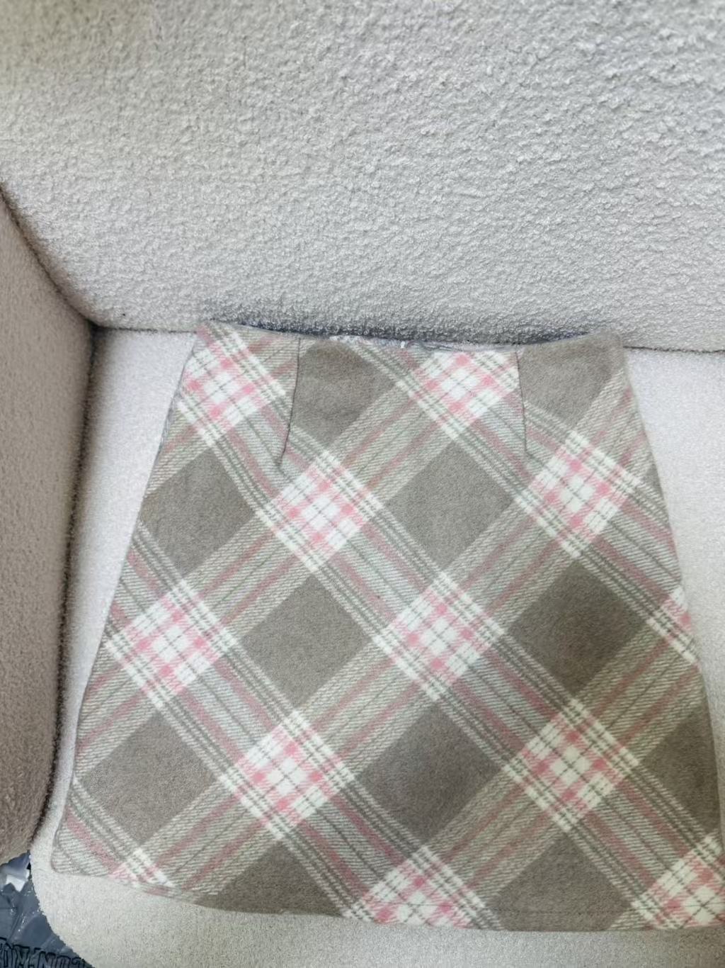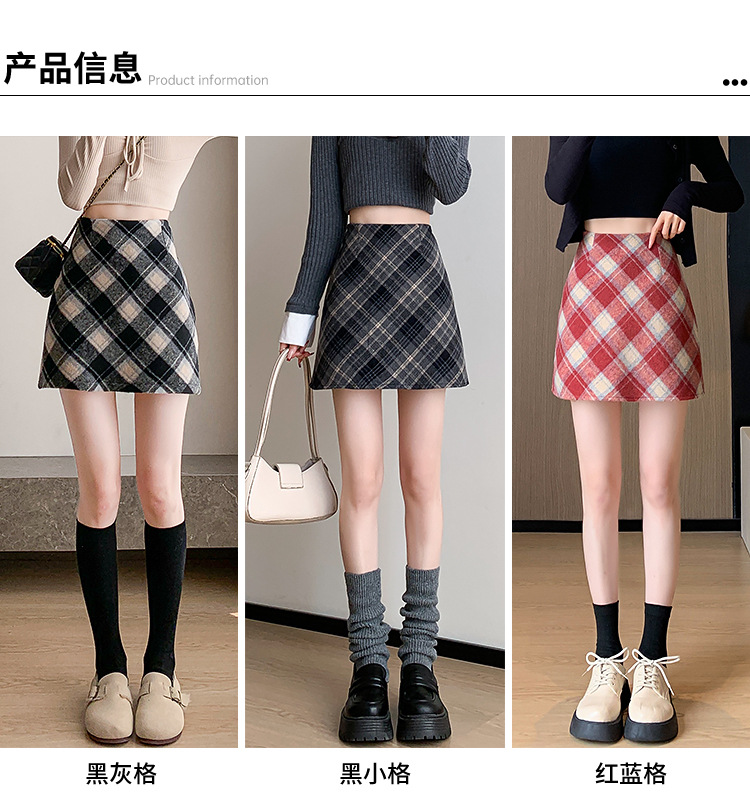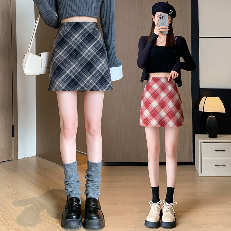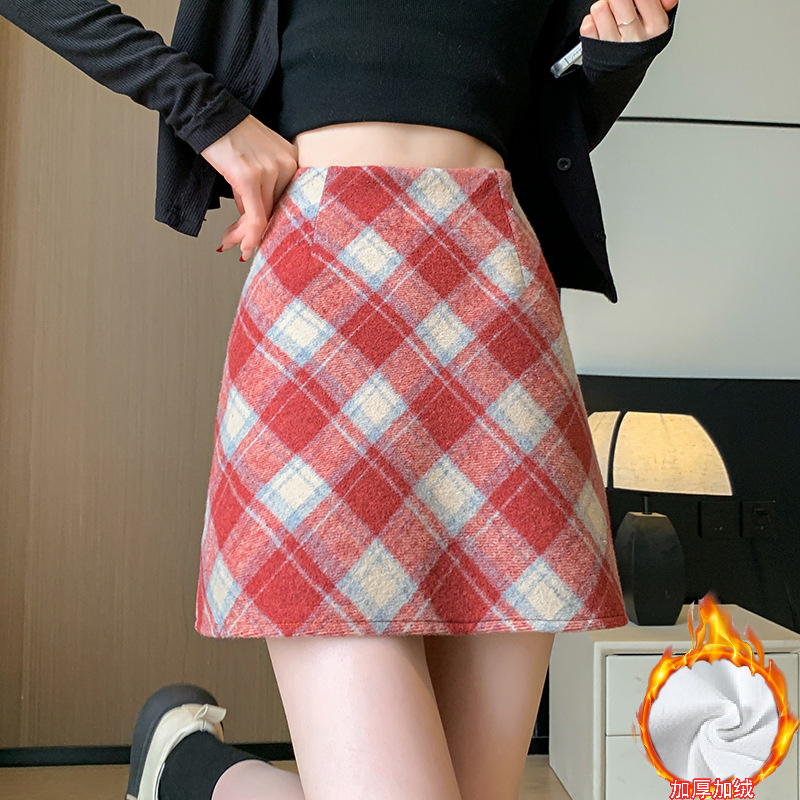 Волосатая юбка A-size Осенняя и зимняя половина клетчатая юбка