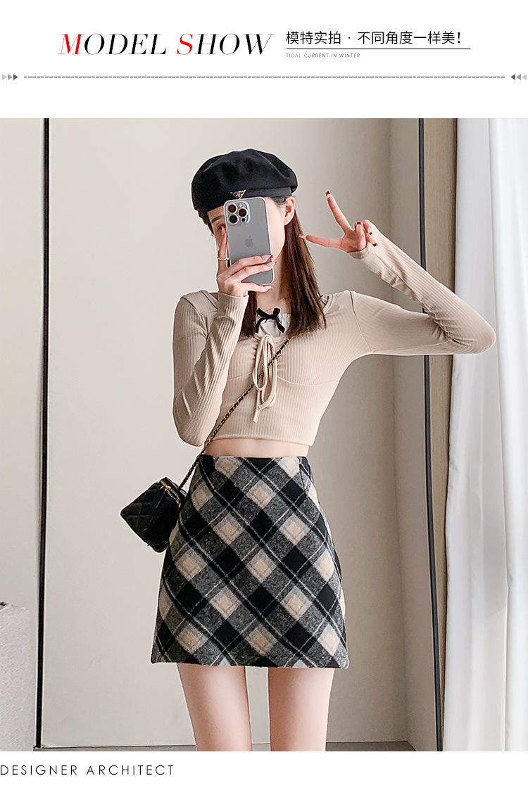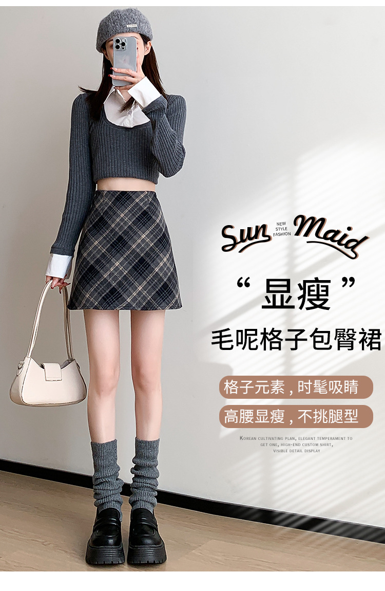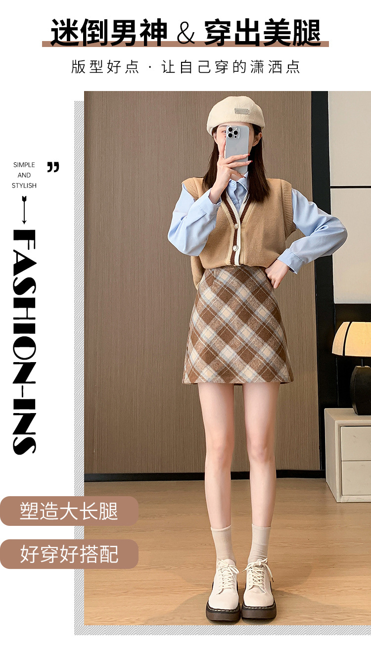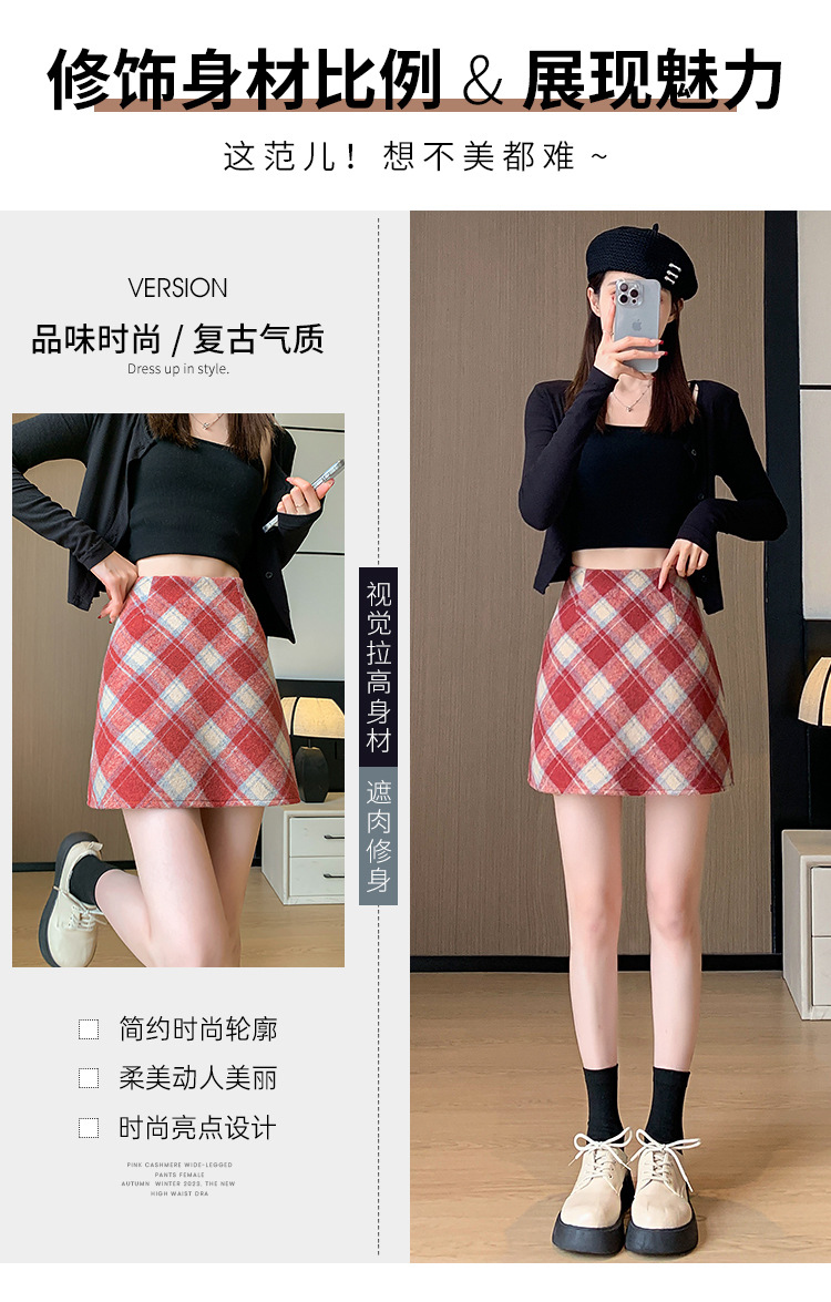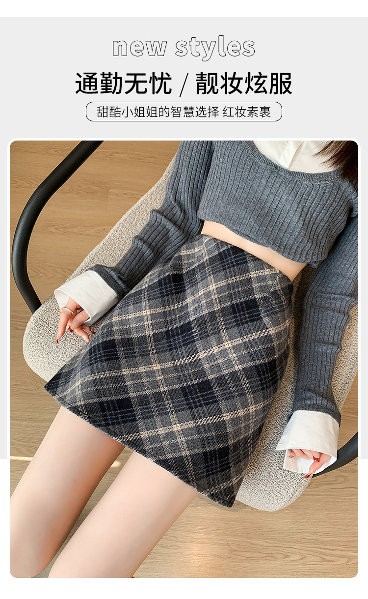 Волосатая юбка A-size Осенняя и зимняя половина клетчатая юбка