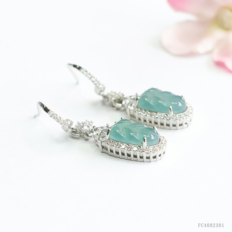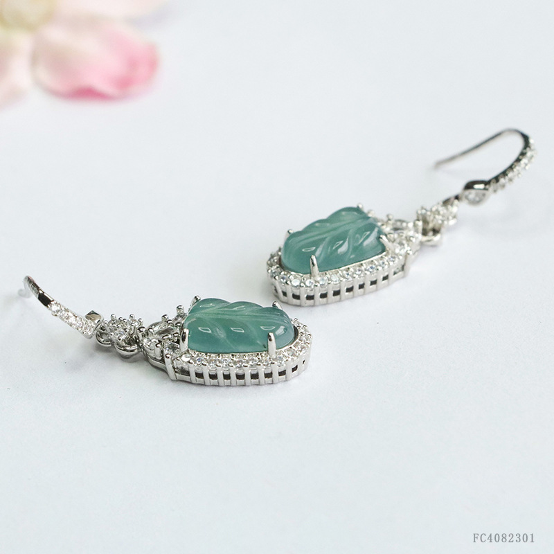 Серьги с листьями ледяного нефрита (FC 4082301 л)