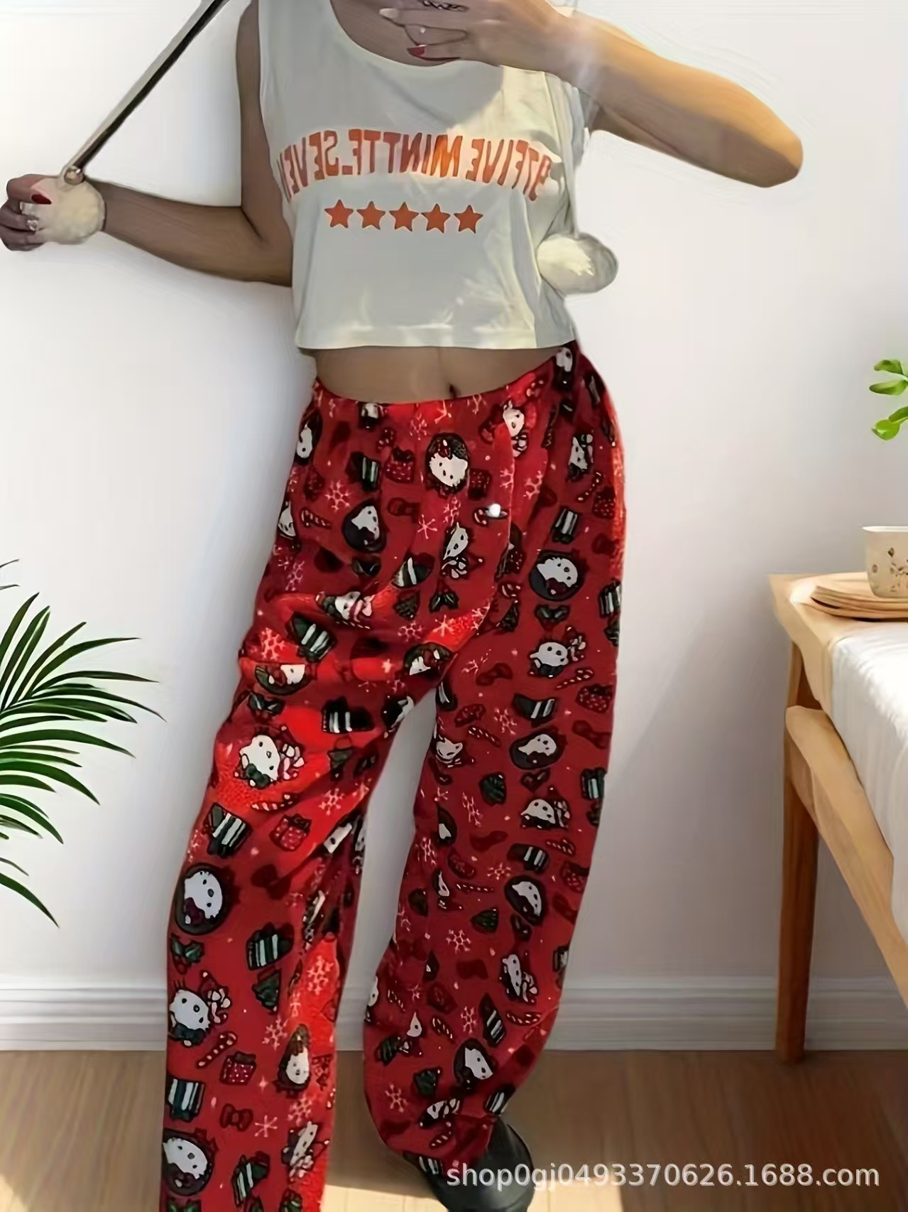 2024, женские осенне-зимние новые фланелевые пижамы, коралловый бархат, бархатные теплые повседневные домашние брюки, утолщенные