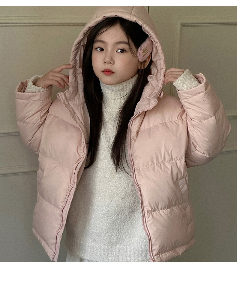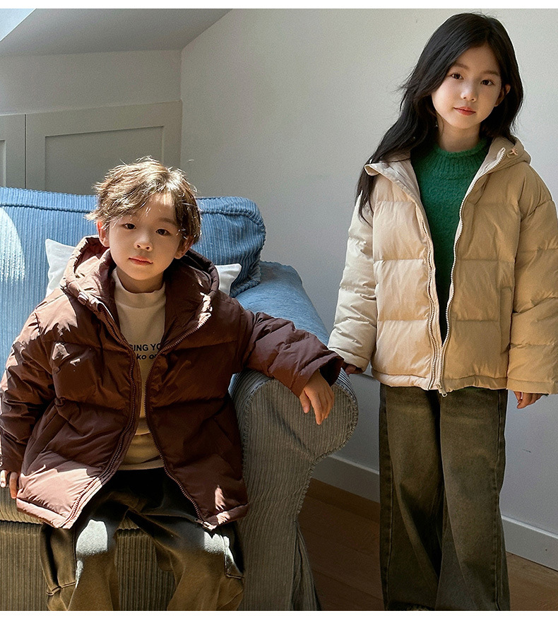 2025 новый зимний утолщенный теплый короткий однотонный пуховик с капюшоном для мальчиков и девочек.