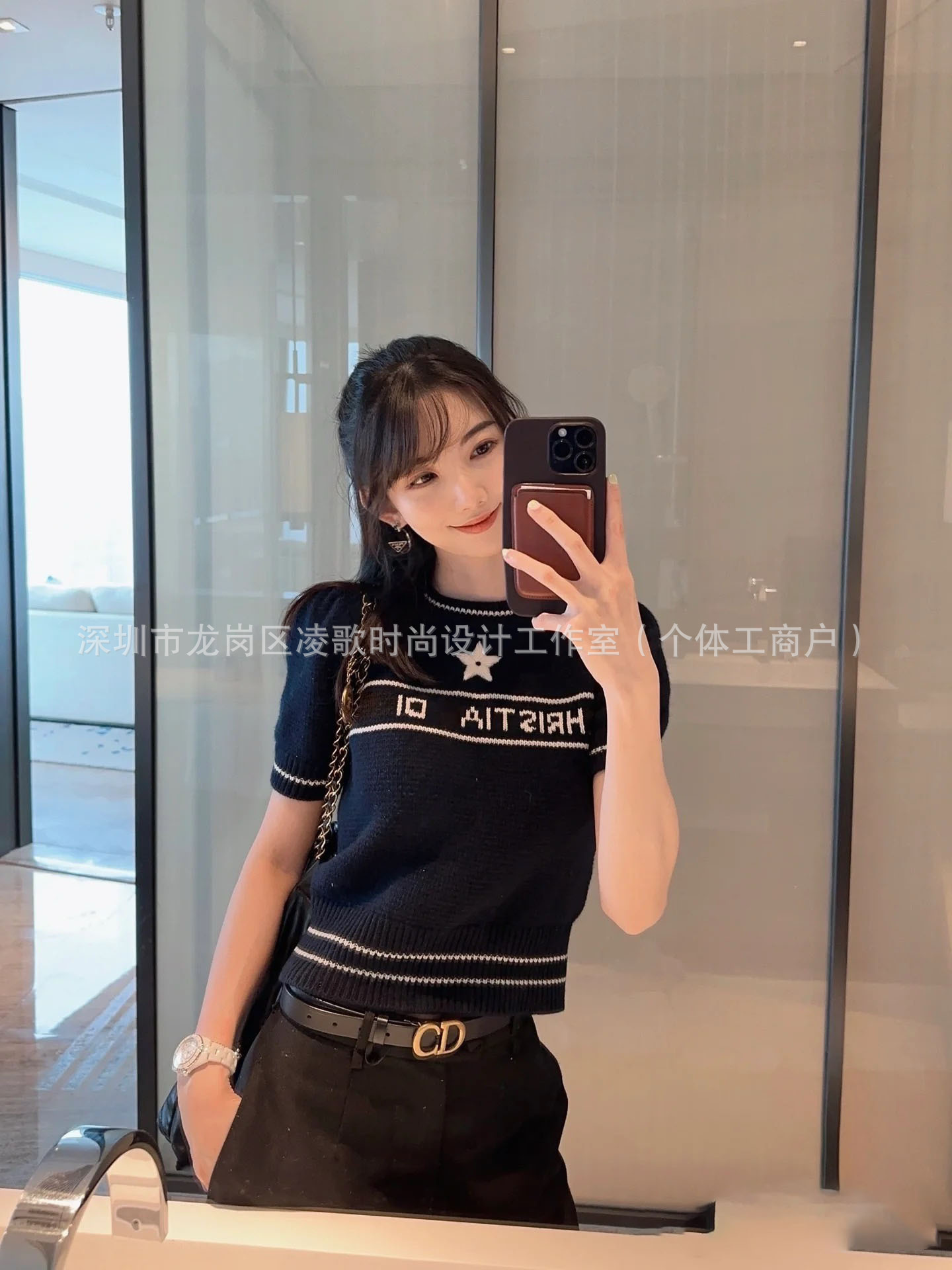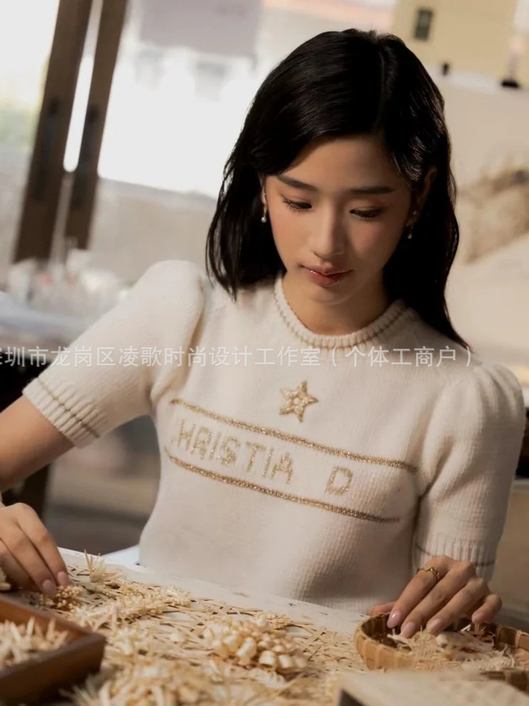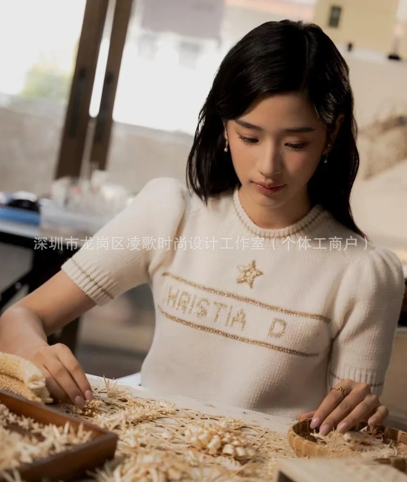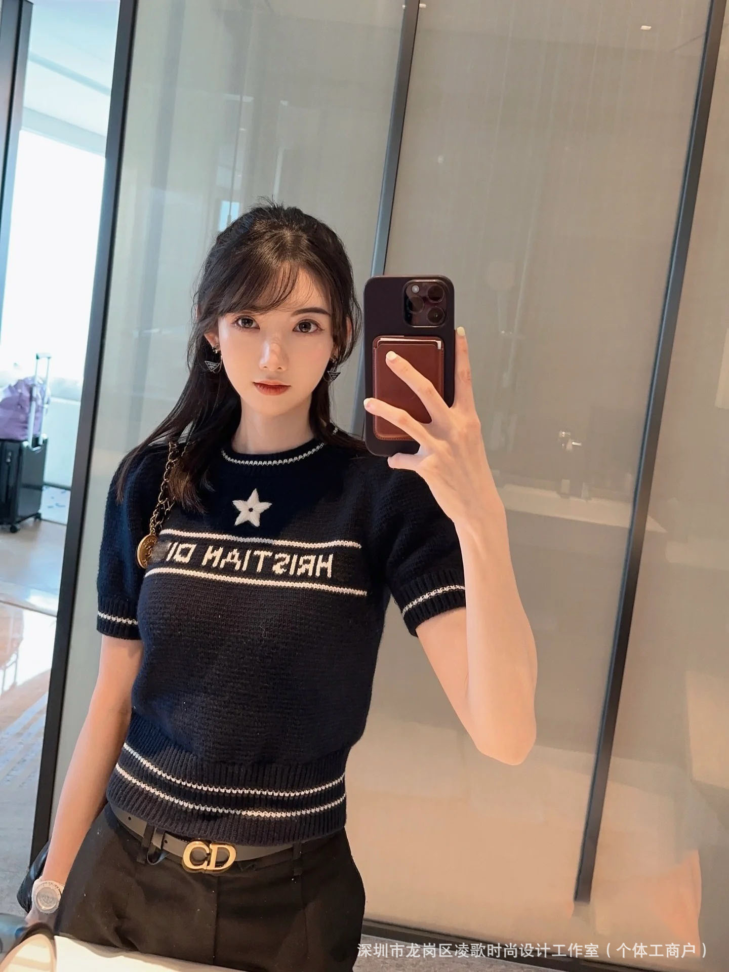 NanYou Женская легкая спелая ветерка пятиконечная звезда с вышивкой круглым вырезом с короткими рукавами 2024 летом новый пригородный дикий топ
