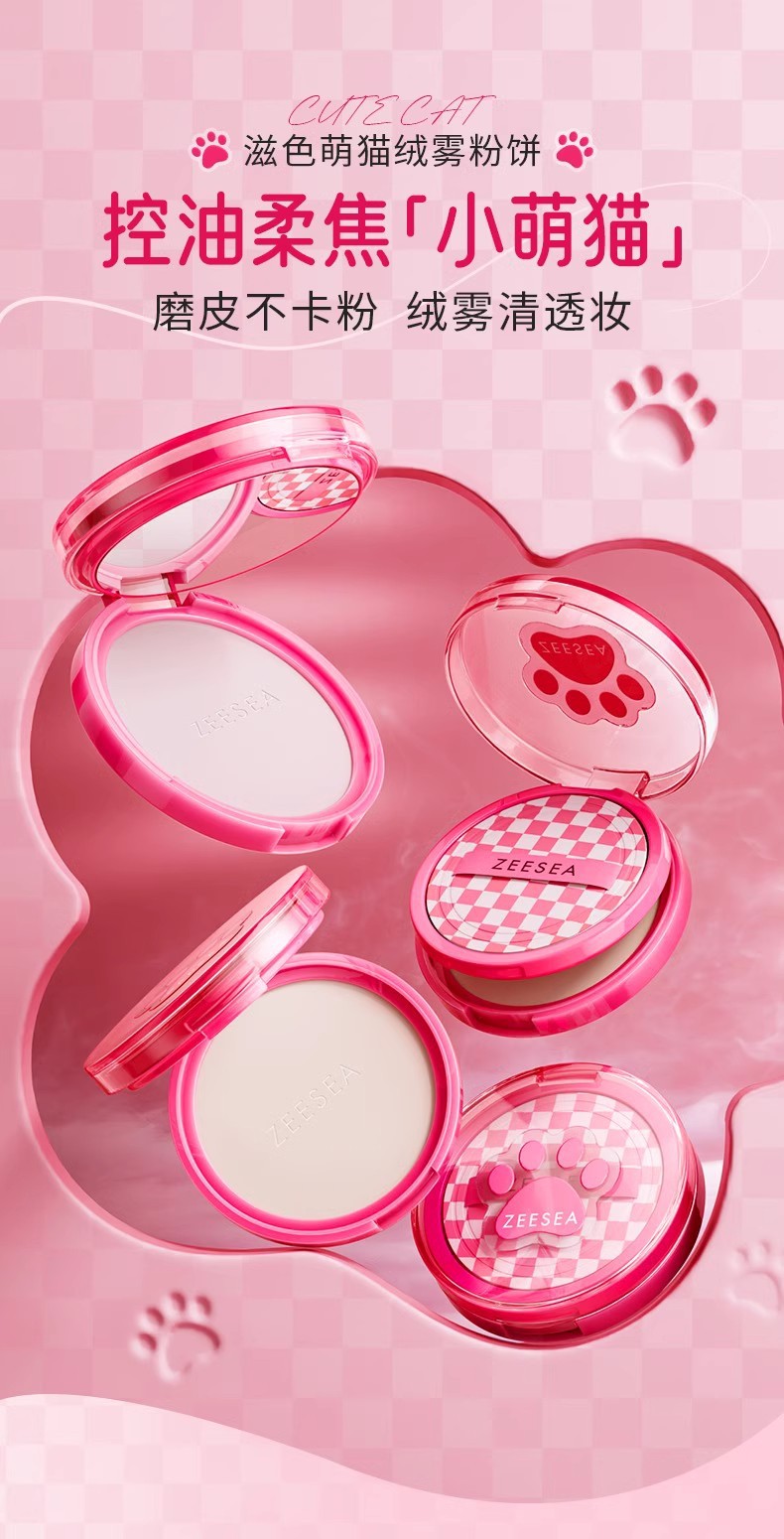 Zeesea цвет милый кошачий бархатный порошок, фиксированный макияж, длительный контроль масла, не снимающий макияж, косметический порошок, водонепроницаемый пот подлинный