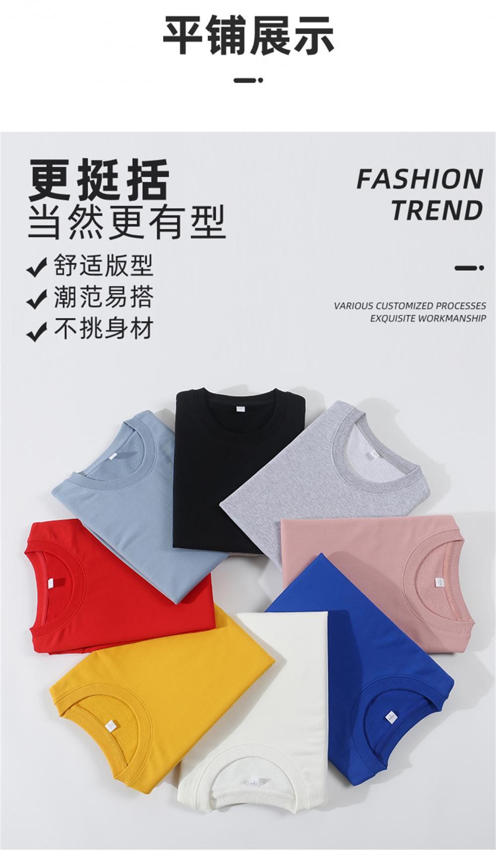 Полиэстер (экономичный); Тонкий круглый вырез из полиэстера; Тонкий полиэстер и хлопок (модель текущего количества); Тонкий стиль из чистого хлопка с круглым вырезом (многоцветный); Заниженные плечи, круглая шея; Крупный махровый стиль с заниженным плечом (высокое качество)