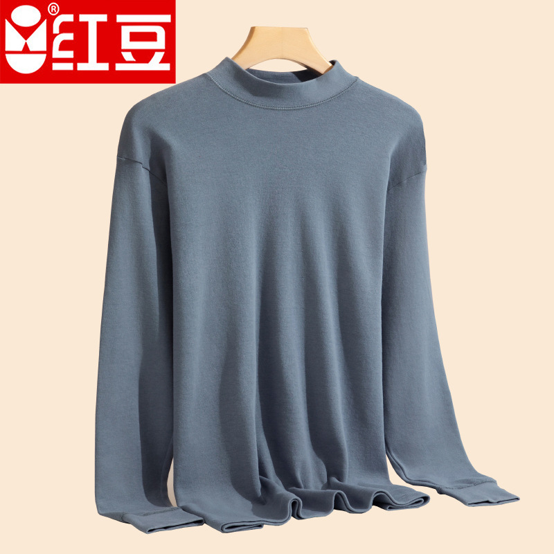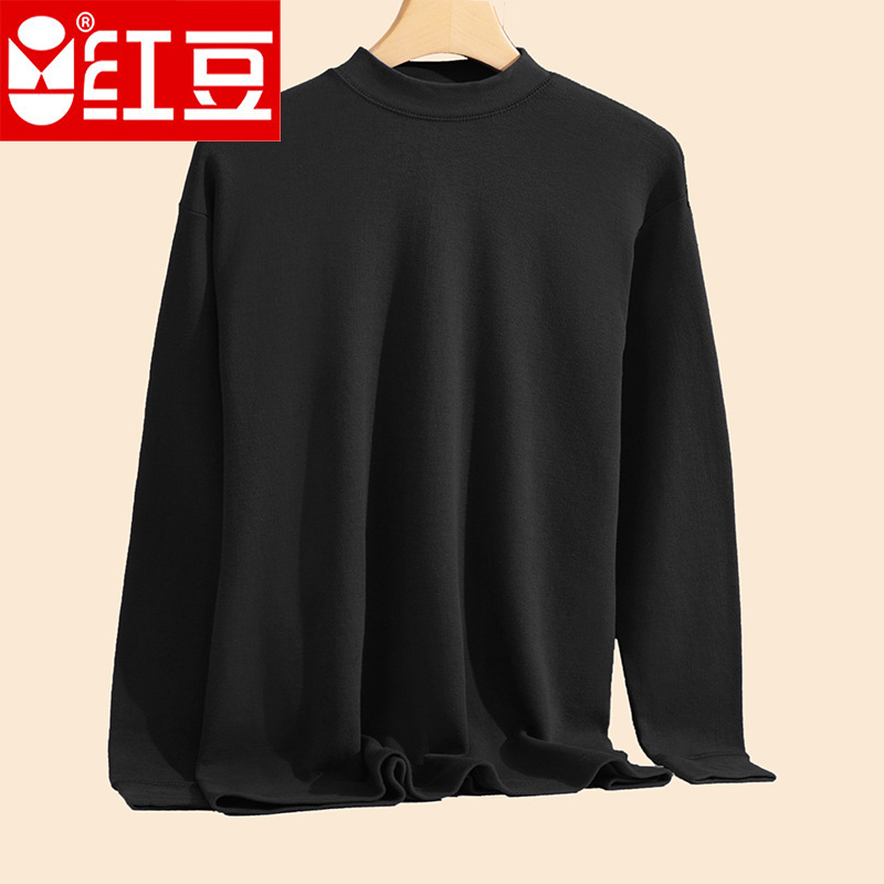 Мужская хлопковая рубашка Red Bean на осень, однотонная, с воротником средней высоты, цельная, из 100% хлопка, свитер, свободный крой оверсайз, с длинным рукавом, для осени и зимы.