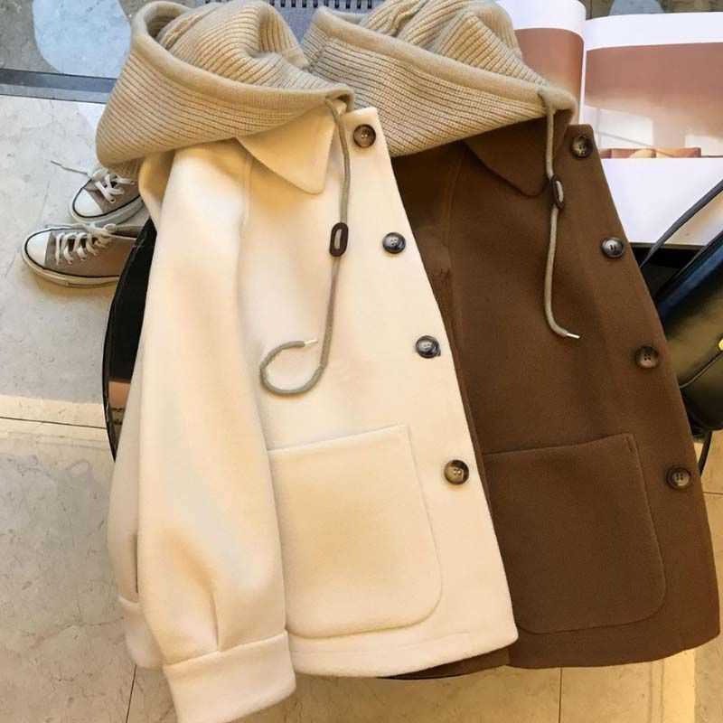 Высококачественная вязаная шерстяная верхняя одежда с капюшоном для женщин, осень-зима 2023, новая утолщенная дизайнерская нишевая верхняя одежда