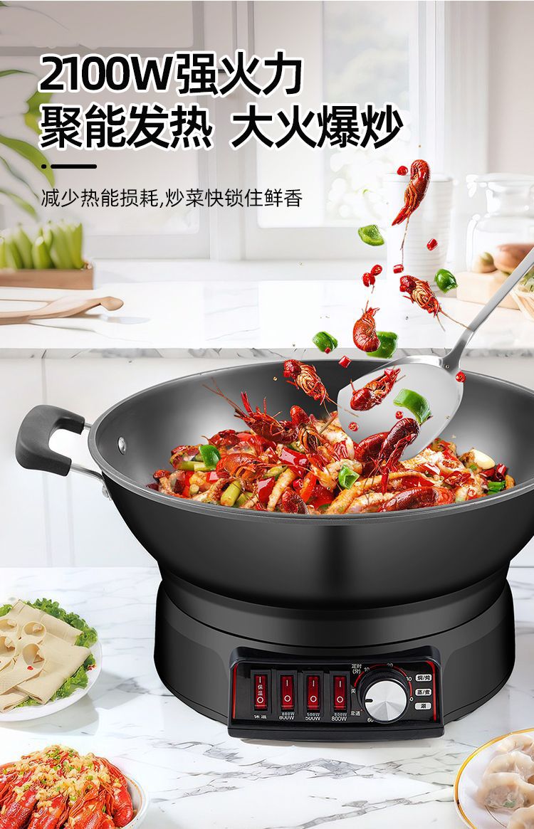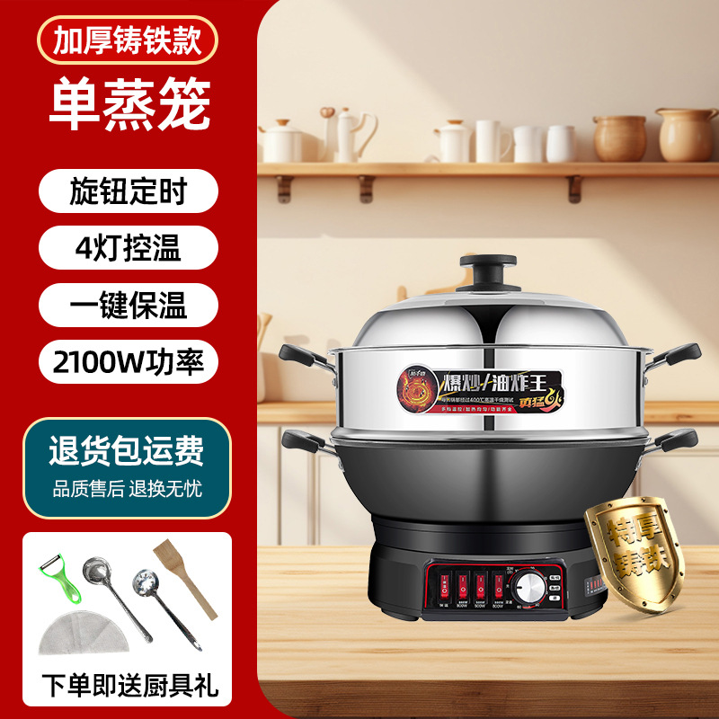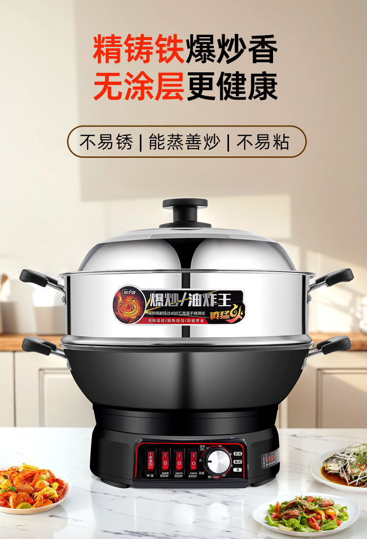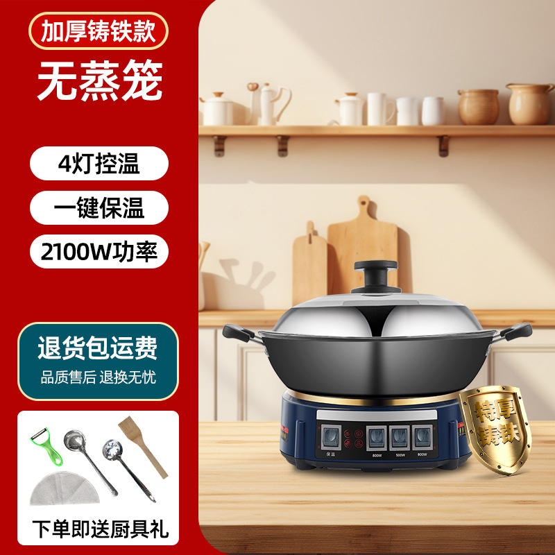 Многофункциональная электрическая сковорода-мультиварка Wanlida из чугуна с антипригарным покрытием, универсальная электрическая сковорода для жарки, электрическая кастрюля, электрическая пароварка, мощная сковорода для жарки