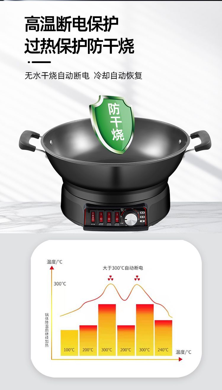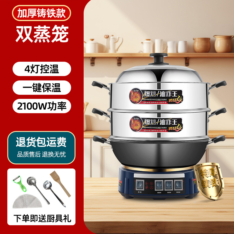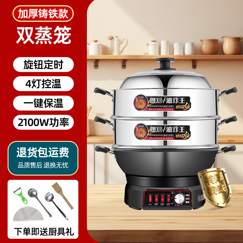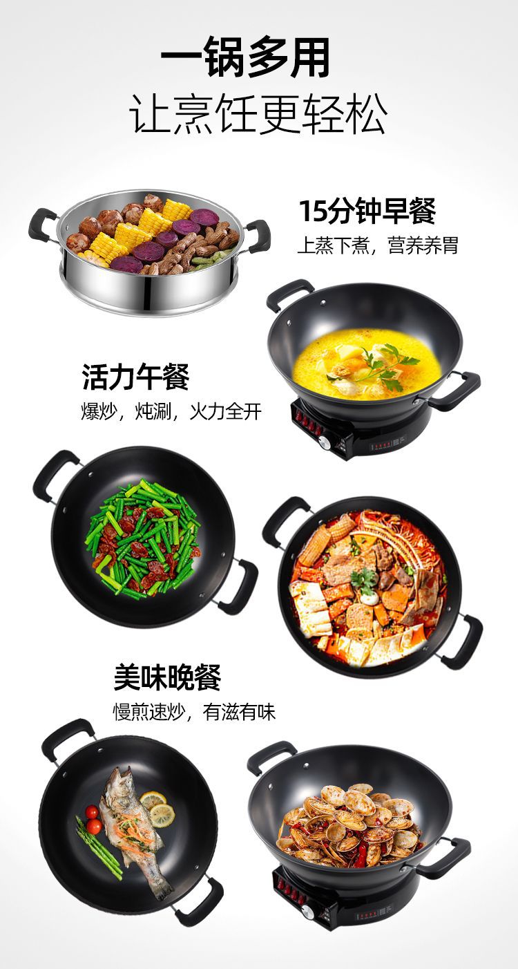 Многофункциональная электрическая сковорода-мультиварка Wanlida из чугуна с антипригарным покрытием, универсальная электрическая сковорода для жарки, электрическая кастрюля, электрическая пароварка, мощная сковорода для жарки