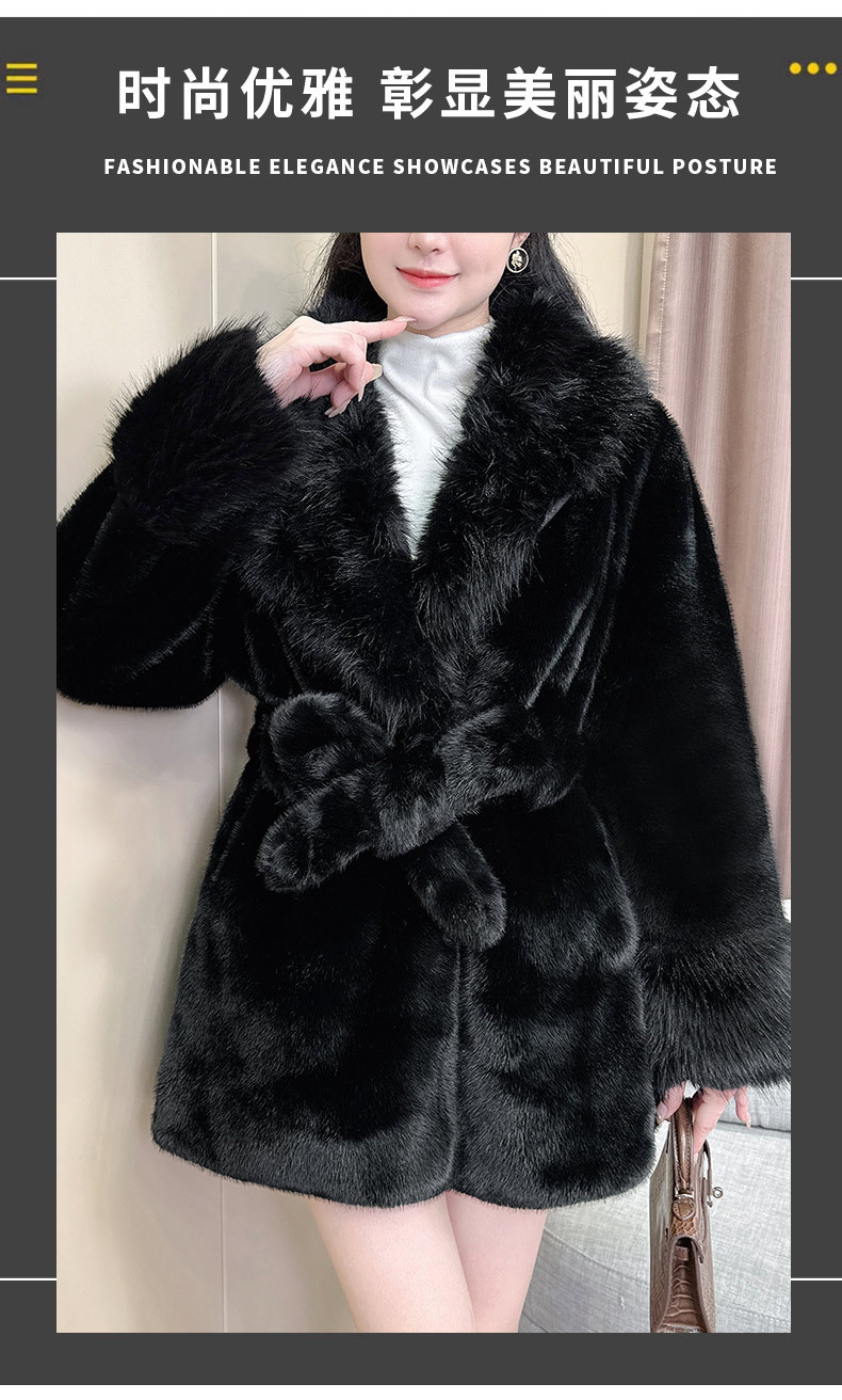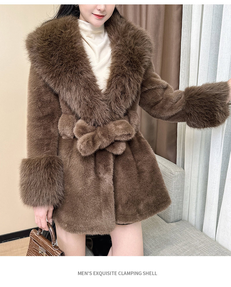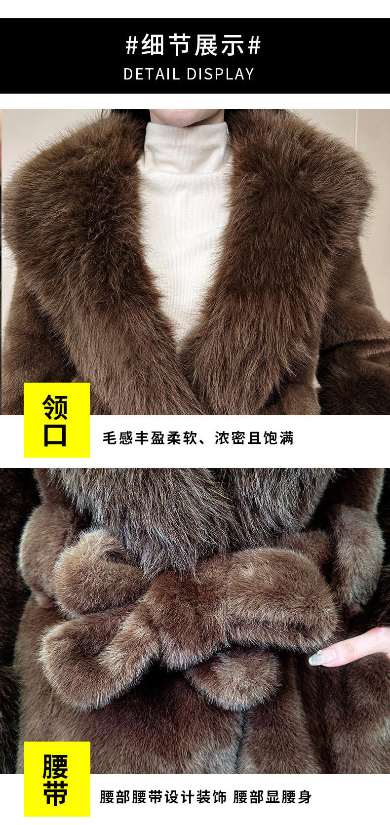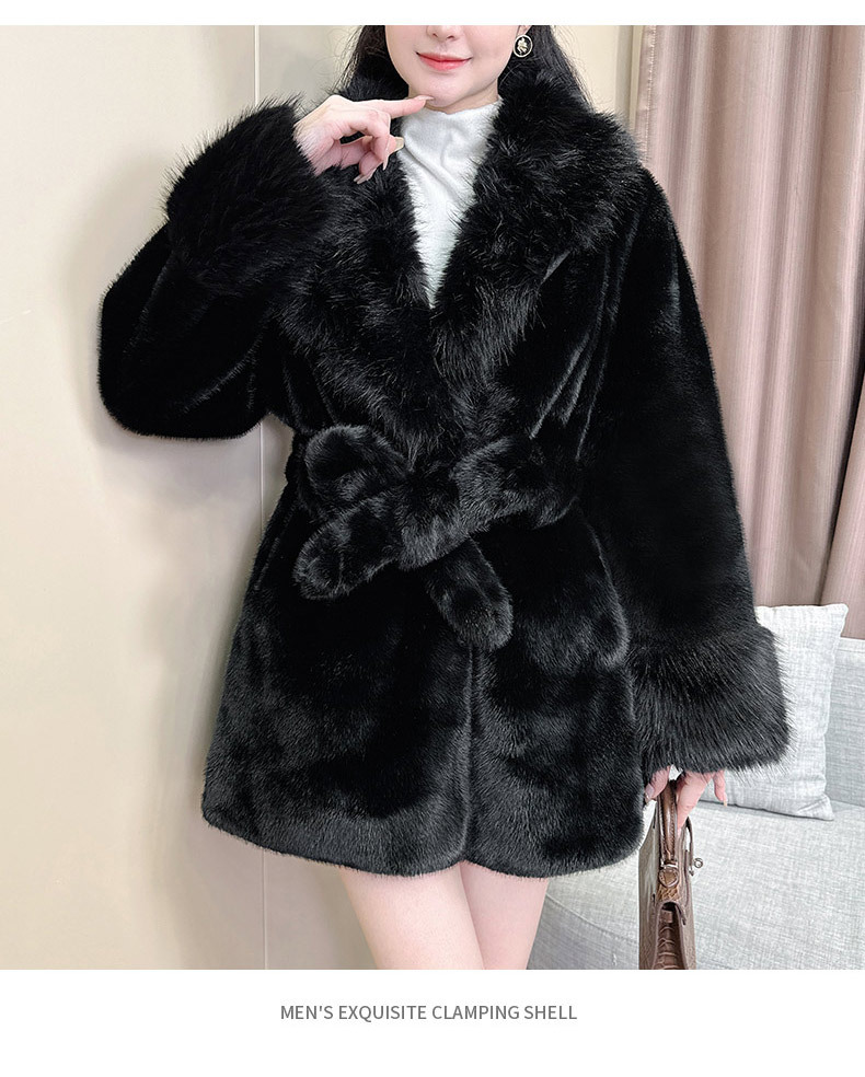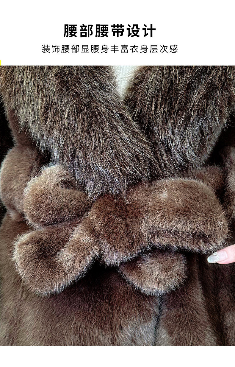 2024 зимний новый женский меховое пальто мода теплая женская норковая пальто тонкая талия средняя длинная кожаная одежда